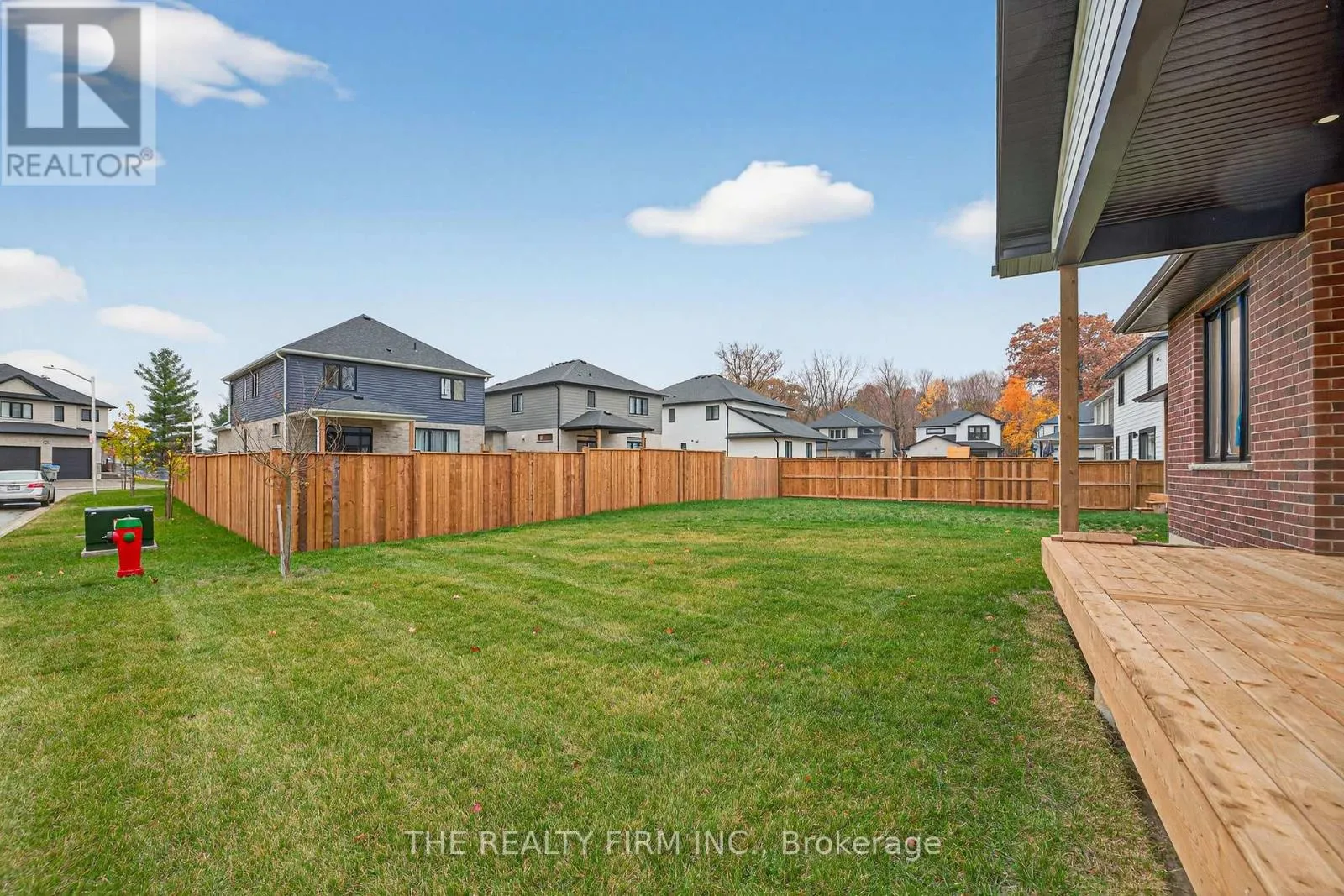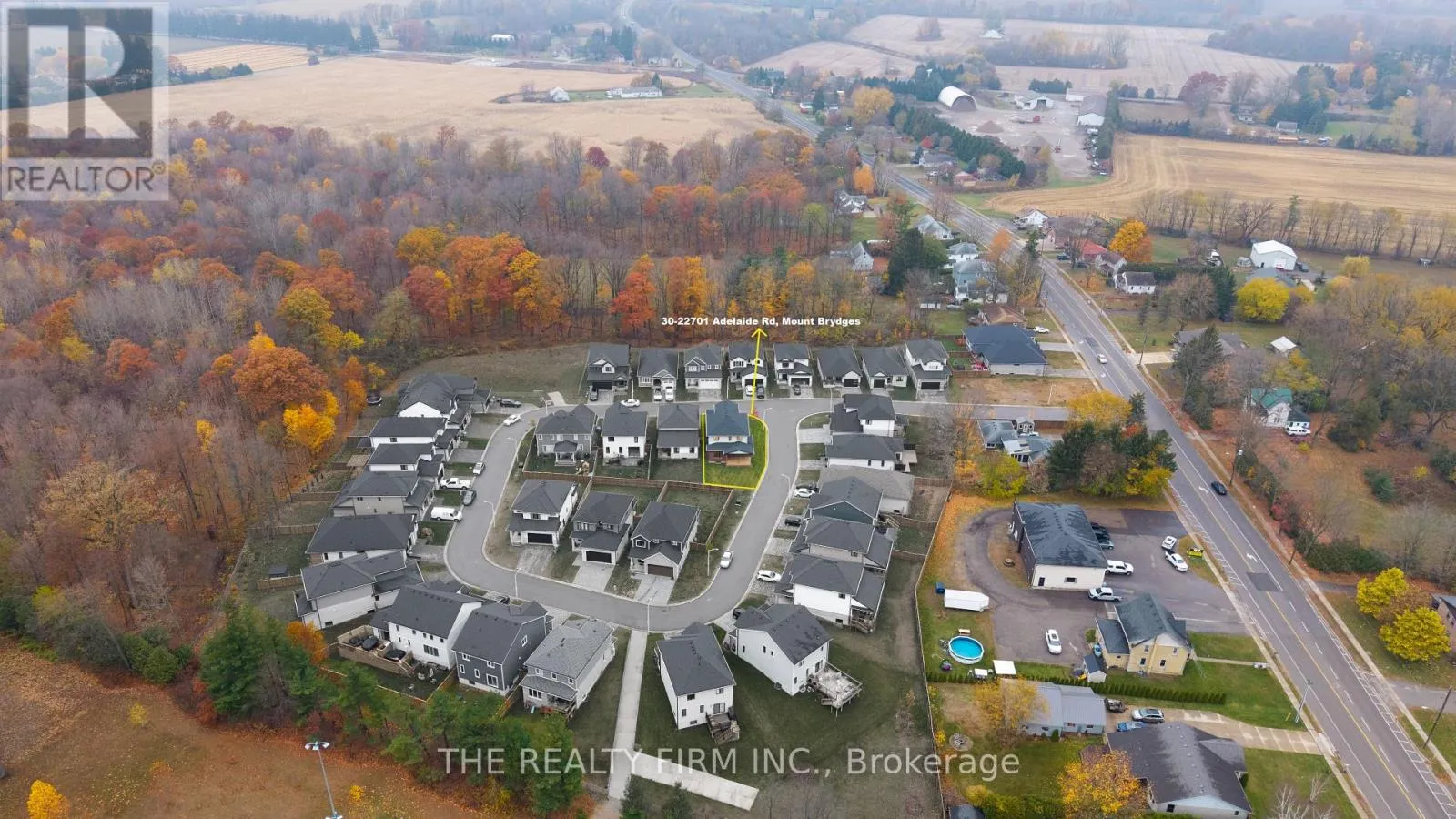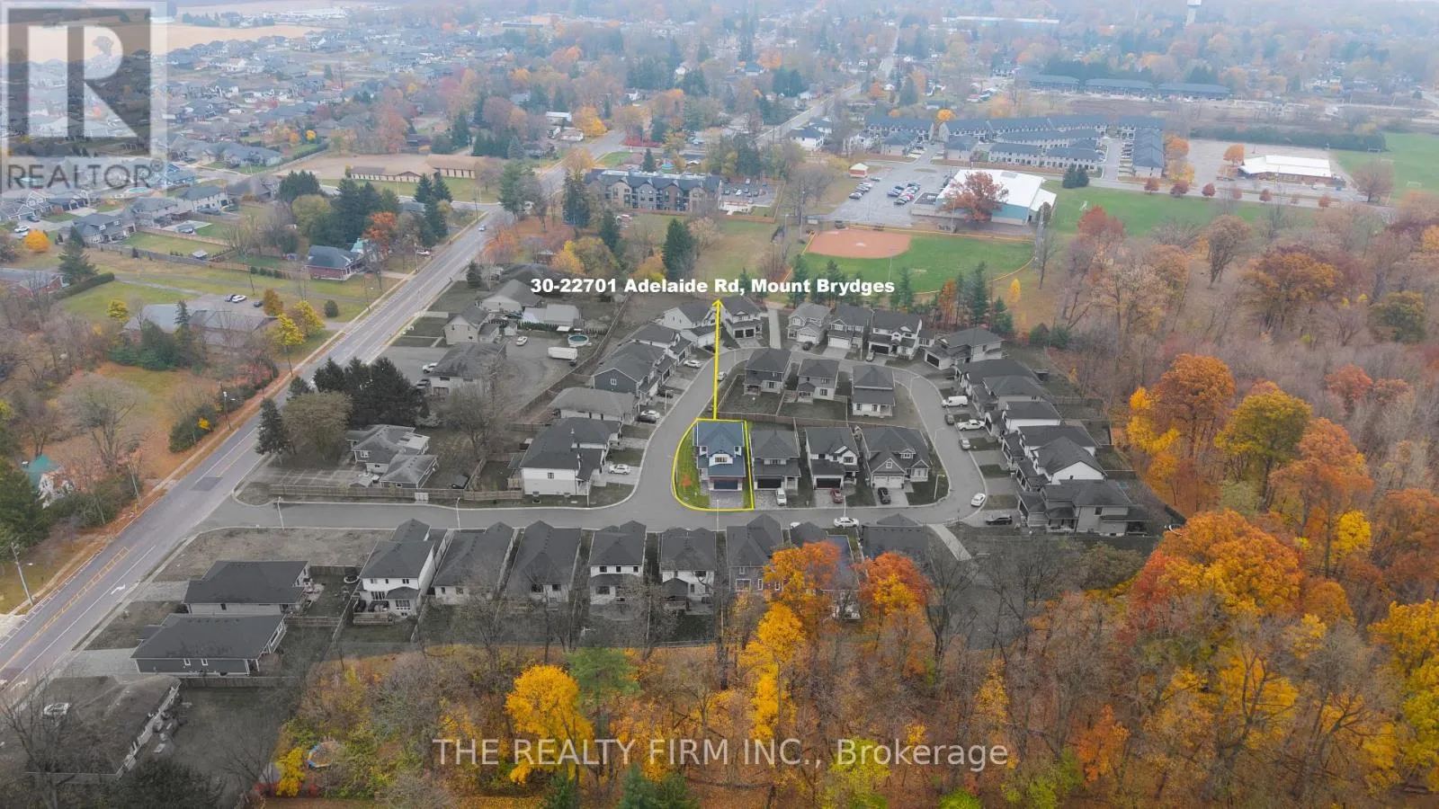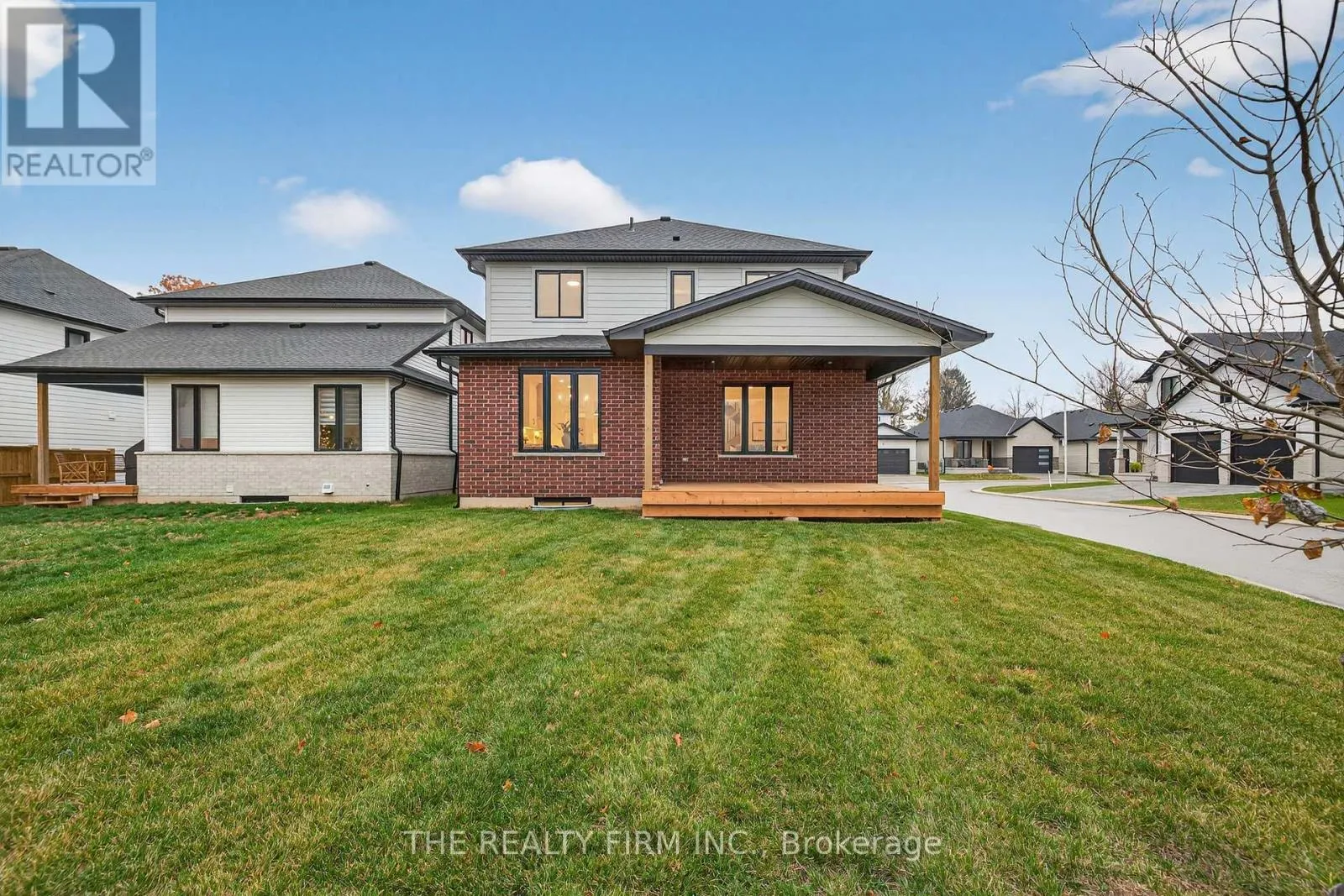 Cross Streets: Adelaide Road/County Road. ** Directions: From Adelaide Rd (Hwy 81), turn into the private condo development at 22701 Adelaide Rd. Discover the charm of Mount Brydges with Turner Homes' stunning new build, The Montana. This elegant 2,260 sq. ft. home offers a thoughtfully designed layout and a timeless exterior that beautifully blends stone, brick, and vinyl, all perfectly situated on a corner lot. A paver stone driveway welcomes you to this impressive two-story residence featuring 3+1 bedrooms and 3.5 bathrooms, providing ample space for a growing family. Inside, the main floor boasts an open-concept design that creates a bright, airy atmosphere. The versatile main-floor office includes a striking geometric feature wall and convenient 2-piece bathroom, ideal for those who work from home or need extra space. The modern kitchen is a chef's delight, showcasing quartz countertops, abundant cabinetry, and a large island with an integrated sink -- perfect for both culinary creations and entertaining guests. The inviting living room centers around an elegant fireplace, offering the perfect setting for family gatherings. Upstairs, you'll find three generous bedrooms, each offering a private retreat. The grand primary suite features a spa-like 5-piece ensuite and an oversized walk-in closet. A laundry room and 4-piece main bathroom complete this level. The finished lower level extends your living space even further, offering a cozy family room, an additional bonus room, and a 3-piece bathroom that's ideal for guests. The backyard offers plenty of green space along with a covered deck featuring soffit lighting, perfect for relaxing or entertaining outdoors. Located just 20 minutes from London, this home combines the charm of small-town living with the convenience of nearby city amenities. The neighbourhood is close to the local hockey arena, parks, baseball diamonds, walking trails, and more. The Montana is ideal for families looking for space, comfort, and modern style in a welcoming community. Don't miss your chance to call this beautiful property home! (id:27476)