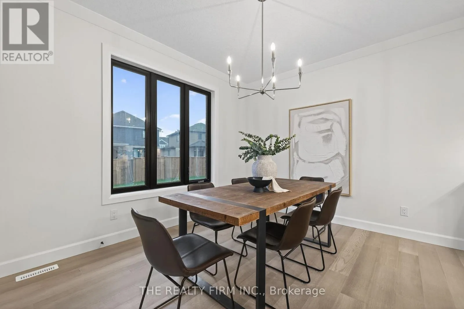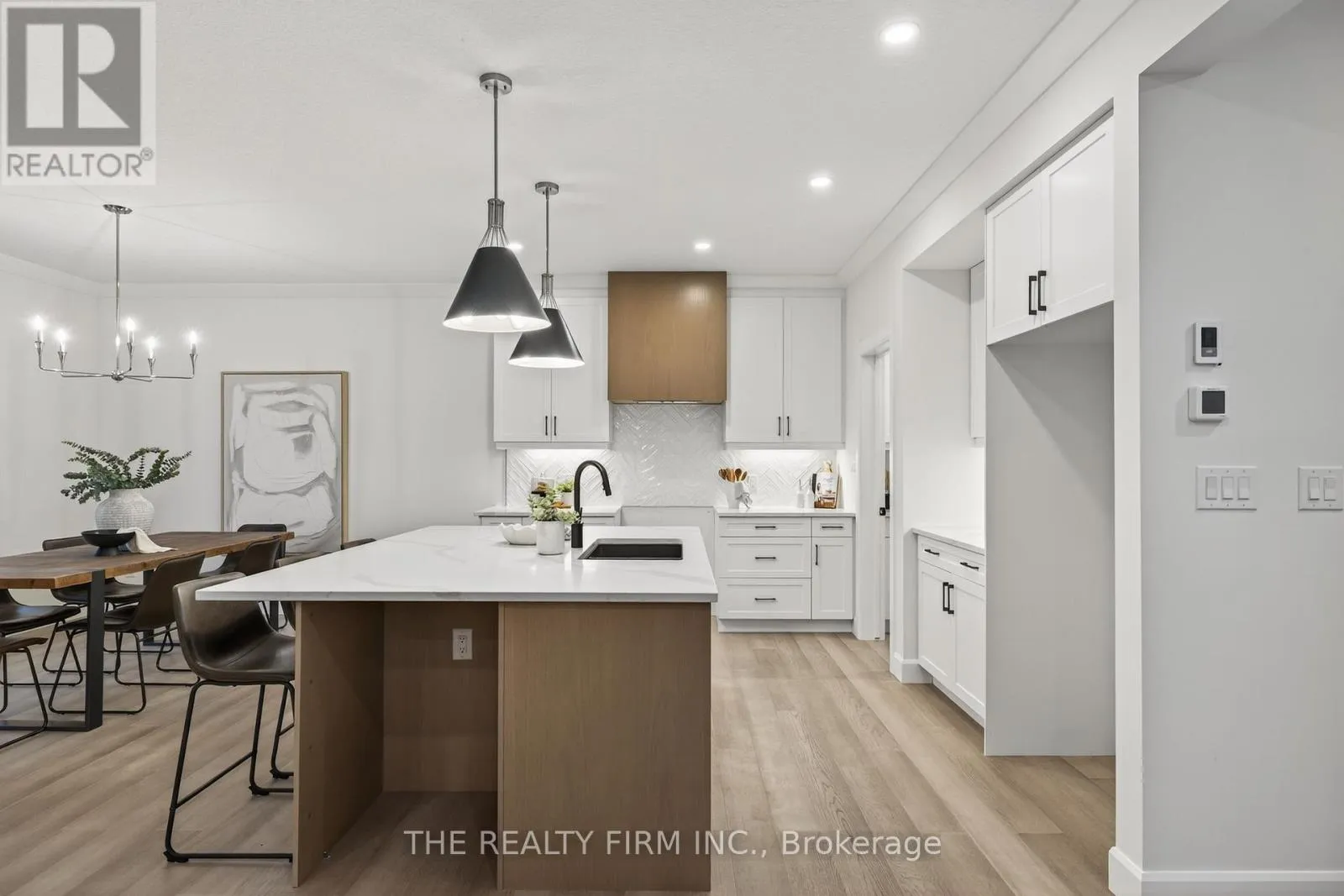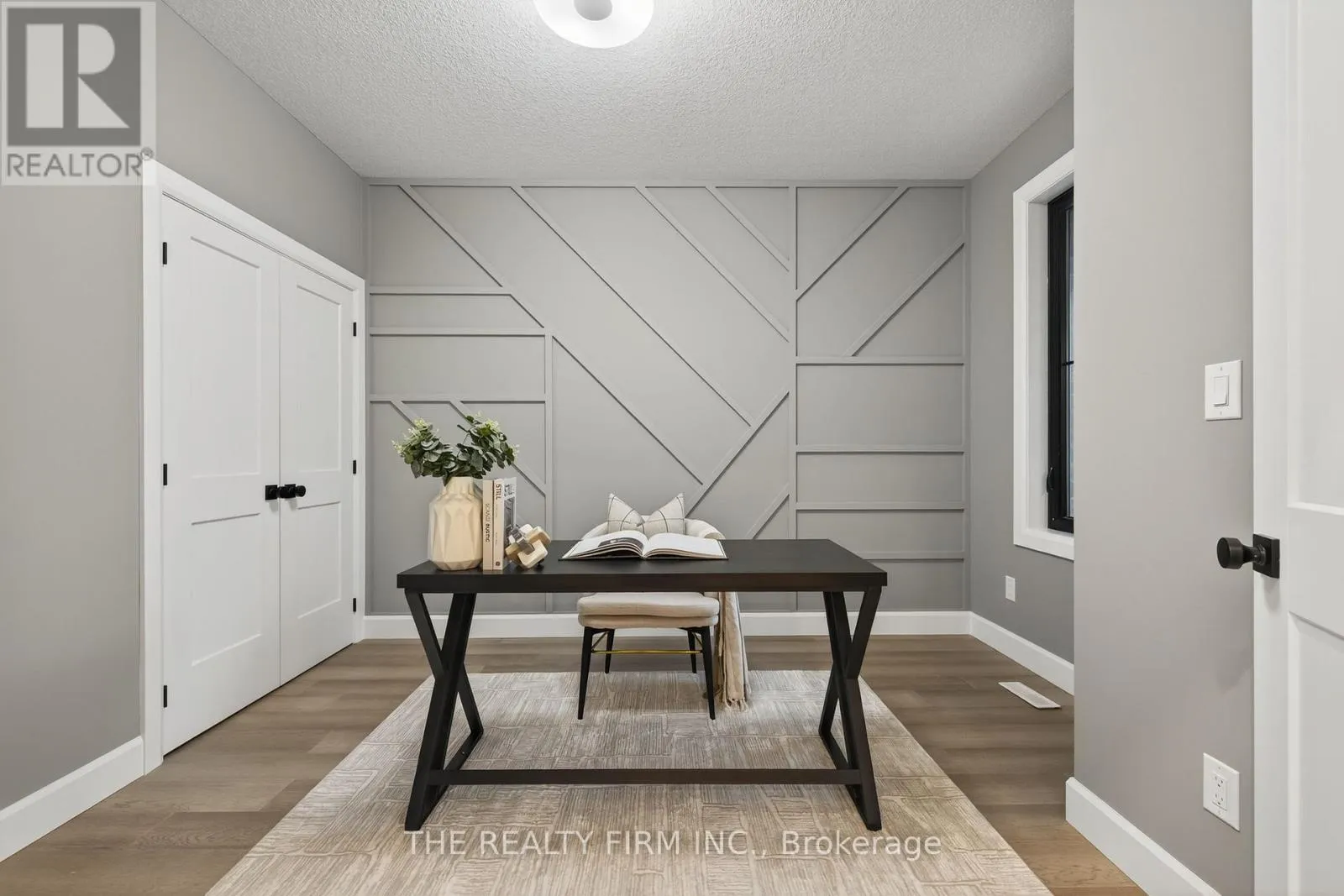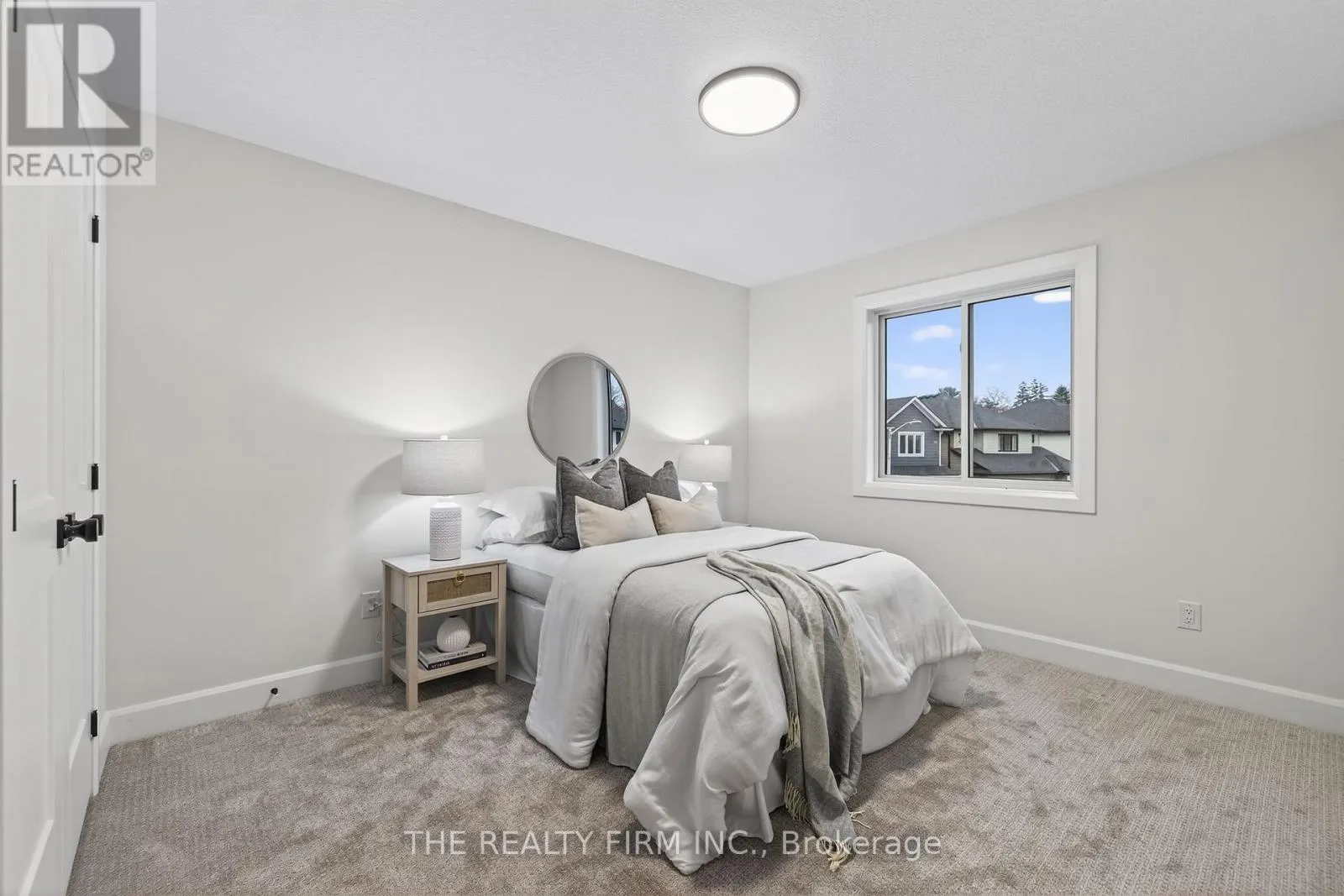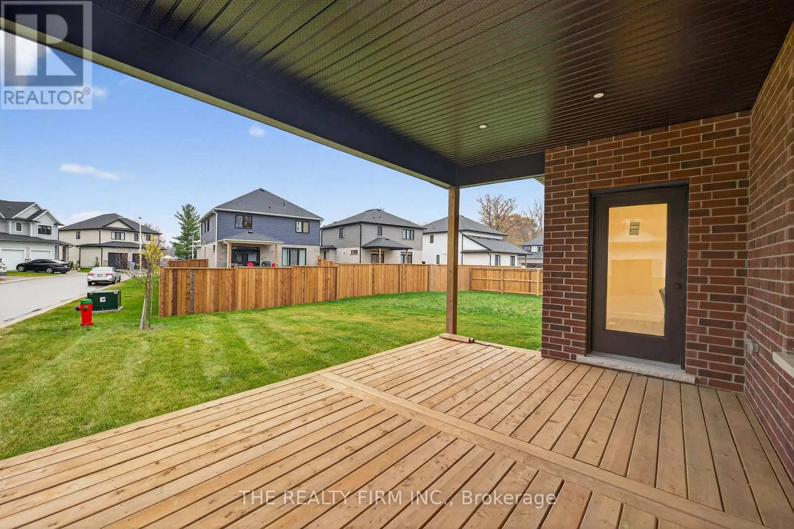 Cross Streets: Adelaide Road/County Road. ** Directions: From Adelaide Rd (Hwy 81), turn into the private condo development at 22701 Adelaide Rd. Discover the charm of Mount Brydges with Turner Homes' stunning new build, The Montana. This elegant 2,260 sq. ft. home offers a thoughtfully designed layout and a timeless exterior that beautifully blends stone, brick, and vinyl, all perfectly situated on a corner lot. A paver stone driveway welcomes you to this impressive two-story residence featuring 3+1 bedrooms and 3.5 bathrooms, providing ample space for a growing family. Inside, the main floor boasts an open-concept design that creates a bright, airy atmosphere. The versatile main-floor office includes a striking geometric feature wall and convenient 2-piece bathroom, ideal for those who work from home or need extra space. The modern kitchen is a chef's delight, showcasing quartz countertops, abundant cabinetry, and a large island with an integrated sink -- perfect for both culinary creations and entertaining guests. The inviting living room centers around an elegant fireplace, offering the perfect setting for family gatherings. Upstairs, you'll find three generous bedrooms, each offering a private retreat. The grand primary suite features a spa-like 5-piece ensuite and an oversized walk-in closet. A laundry room and 4-piece main bathroom complete this level. The finished lower level extends your living space even further, offering a cozy family room, an additional bonus room, and a 3-piece bathroom that's ideal for guests. The backyard offers plenty of green space along with a covered deck featuring soffit lighting, perfect for relaxing or entertaining outdoors. Located just 20 minutes from London, this home combines the charm of small-town living with the convenience of nearby city amenities. The neighbourhood is close to the local hockey arena, parks, baseball diamonds, walking trails, and more. The Montana is ideal for families looking for space, comfort, and modern style in a welcoming community. Don't miss your chance to call this beautiful property home! (id:27476)