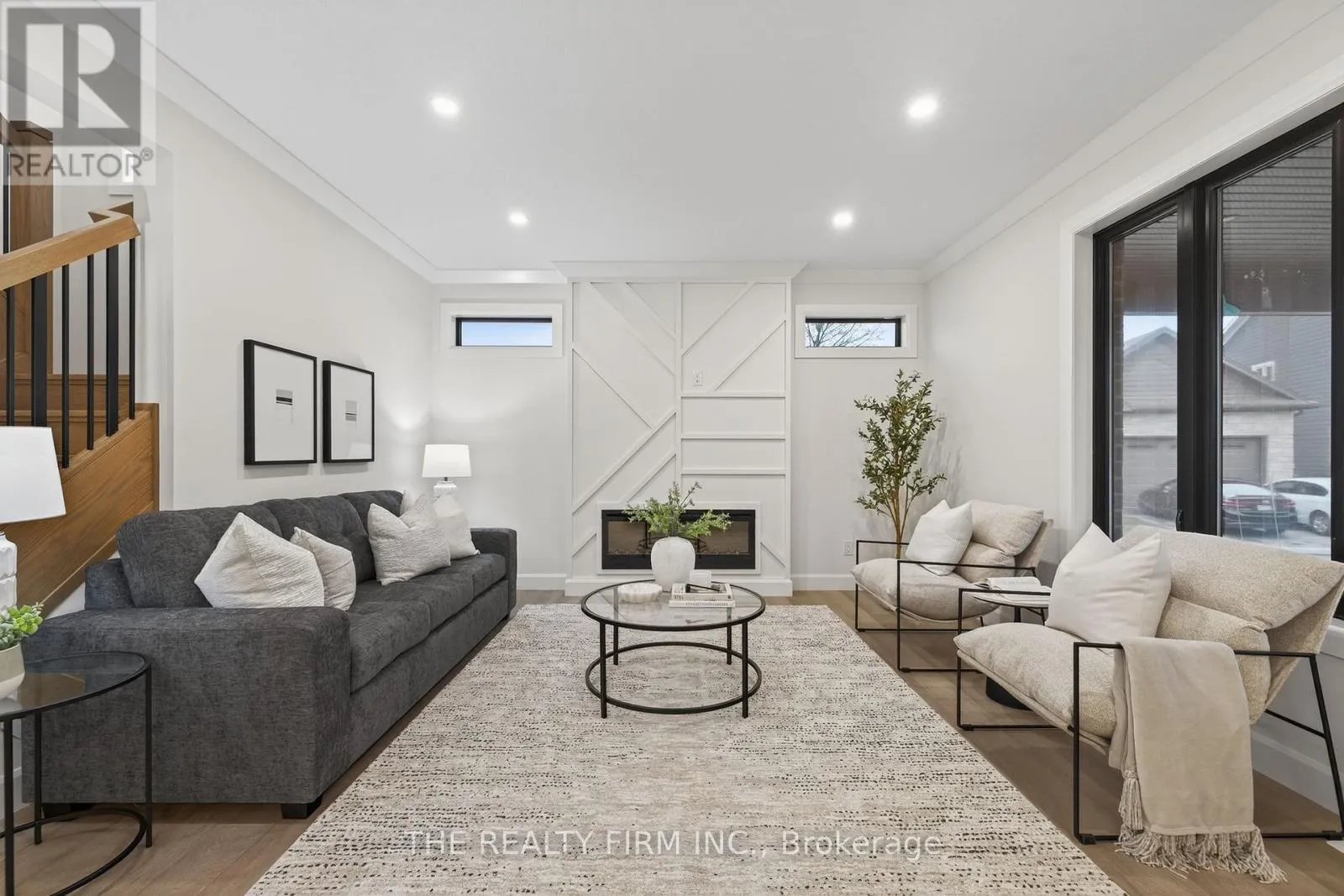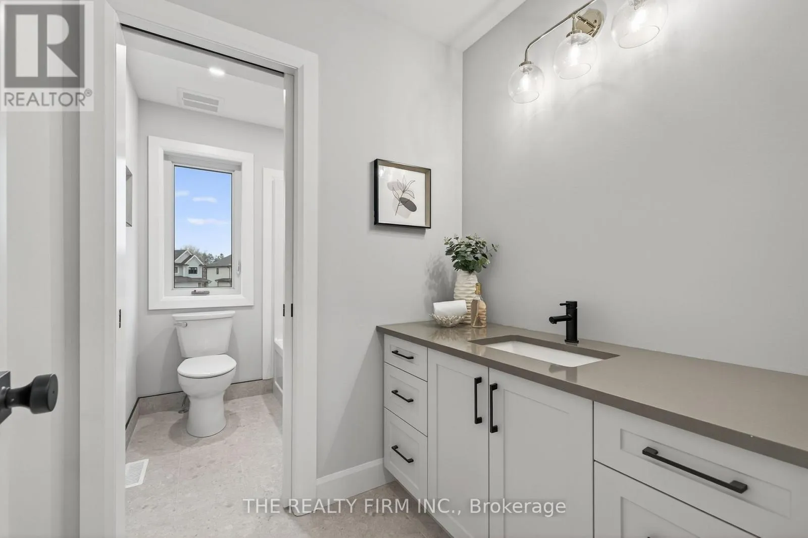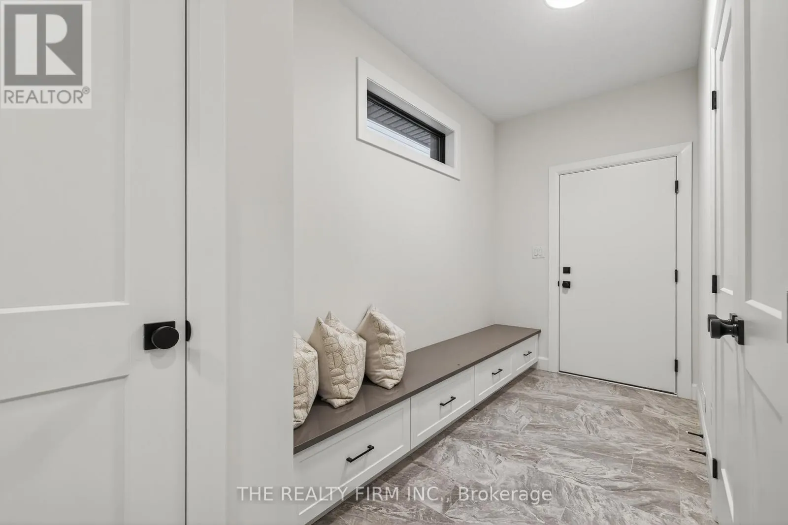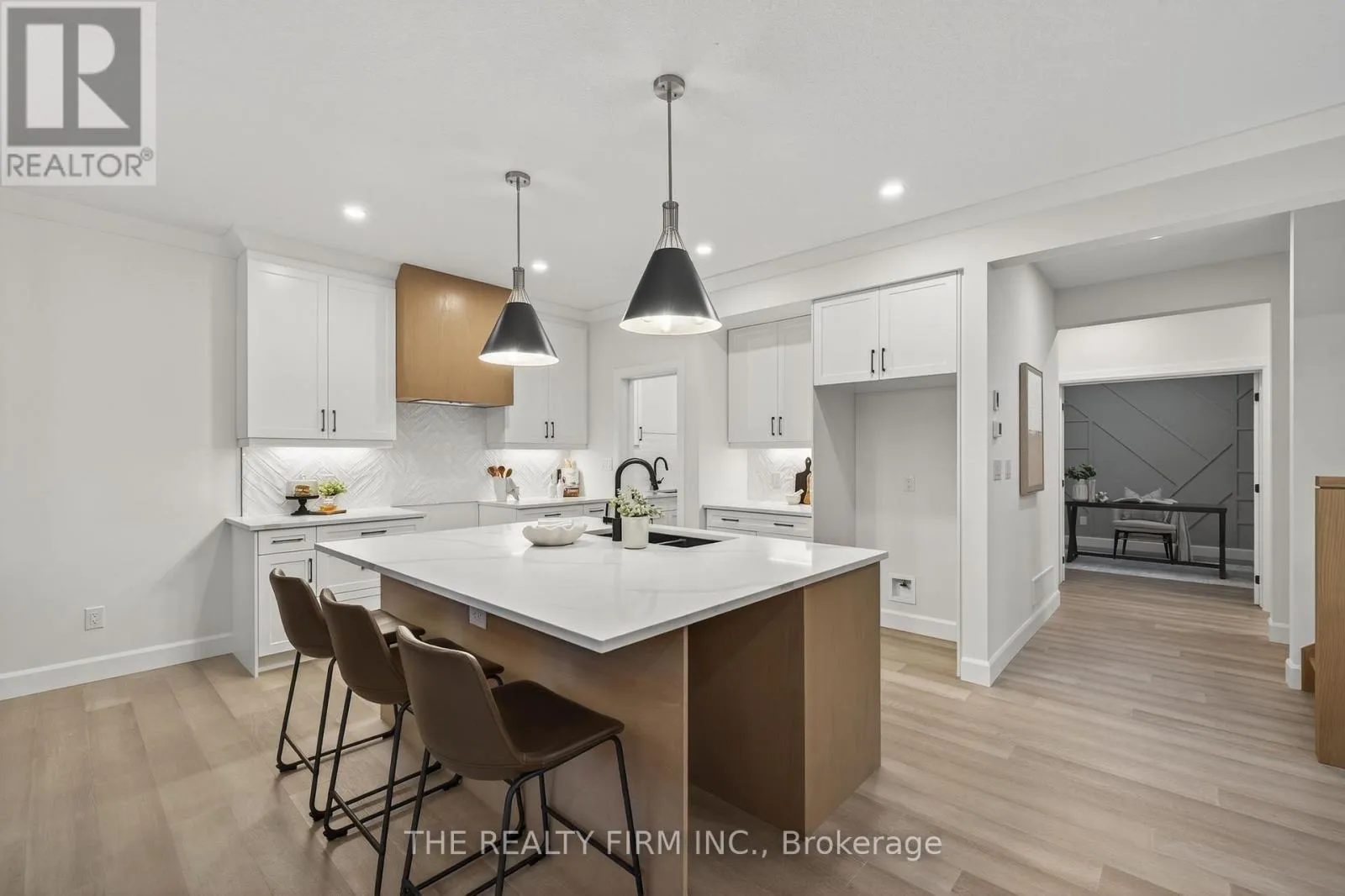 Cross Streets: Adelaide Road/County Road. ** Directions: From Adelaide Rd (Hwy 81), turn into the private condo development at 22701 Adelaide Rd. Discover the charm of Mount Brydges with Turner Homes' stunning new build, The Montana. This elegant 2,260 sq. ft. home offers a thoughtfully designed layout and a timeless exterior that beautifully blends stone, brick, and vinyl, all perfectly situated on a corner lot. A paver stone driveway welcomes you to this impressive two-story residence featuring 3+1 bedrooms and 3.5 bathrooms, providing ample space for a growing family. Inside, the main floor boasts an open-concept design that creates a bright, airy atmosphere. The versatile main-floor office includes a striking geometric feature wall and convenient 2-piece bathroom, ideal for those who work from home or need extra space. The modern kitchen is a chef's delight, showcasing quartz countertops, abundant cabinetry, and a large island with an integrated sink -- perfect for both culinary creations and entertaining guests. The inviting living room centers around an elegant fireplace, offering the perfect setting for family gatherings. Upstairs, you'll find three generous bedrooms, each offering a private retreat. The grand primary suite features a spa-like 5-piece ensuite and an oversized walk-in closet. A laundry room and 4-piece main bathroom complete this level. The finished lower level extends your living space even further, offering a cozy family room, an additional bonus room, and a 3-piece bathroom that's ideal for guests. The backyard offers plenty of green space along with a covered deck featuring soffit lighting, perfect for relaxing or entertaining outdoors. Located just 20 minutes from London, this home combines the charm of small-town living with the convenience of nearby city amenities. The neighbourhood is close to the local hockey arena, parks, baseball diamonds, walking trails, and more. The Montana is ideal for families looking for space, comfort, and modern style in a welcoming community. Don't miss your chance to call this beautiful property home! (id:27476)