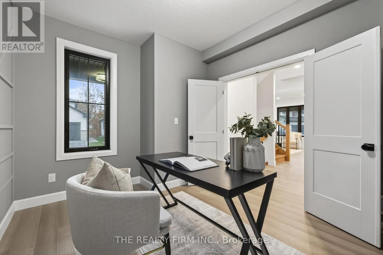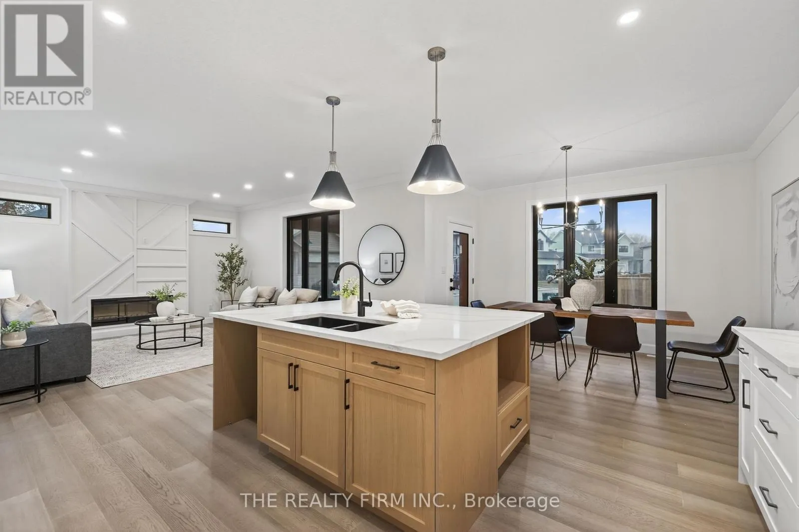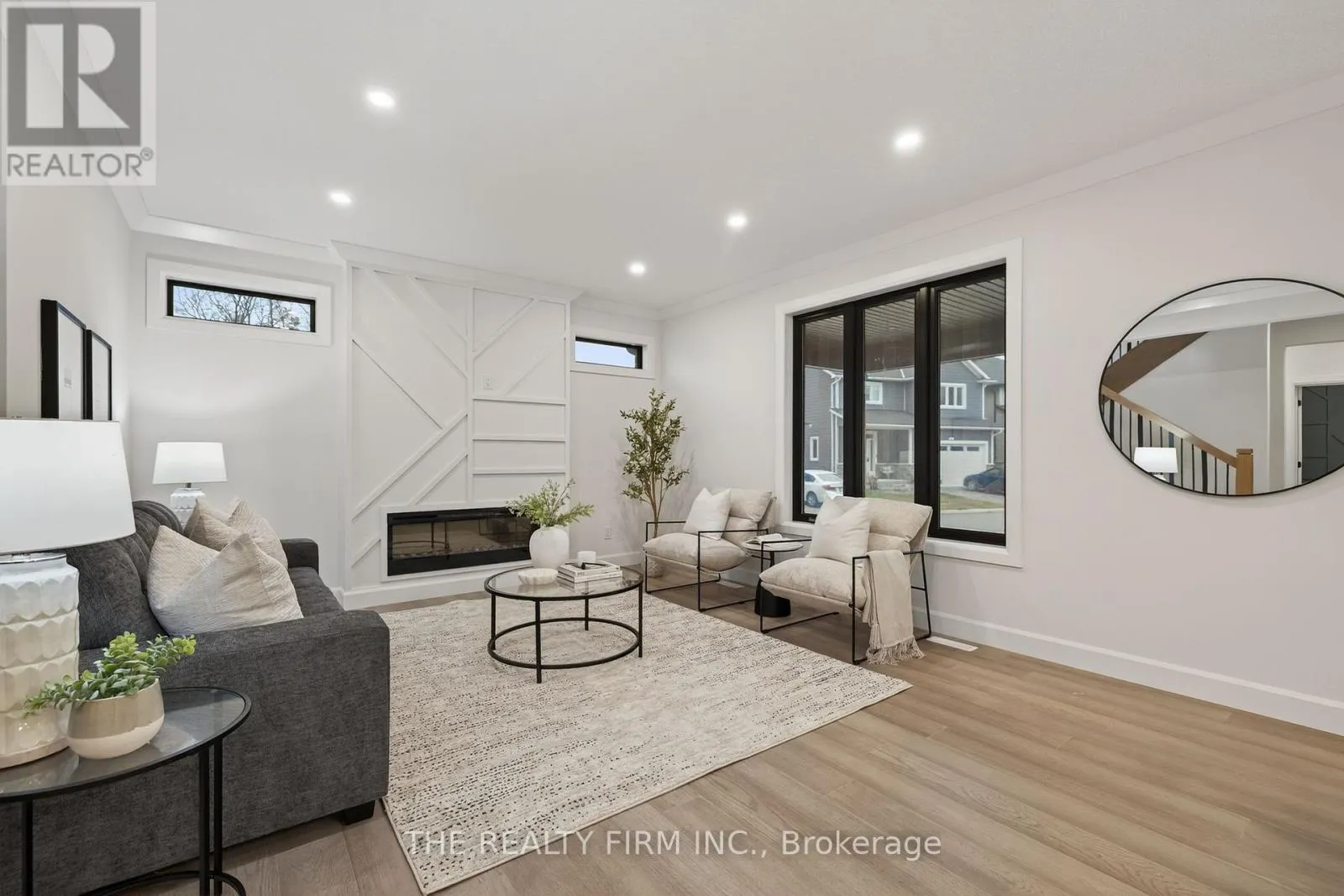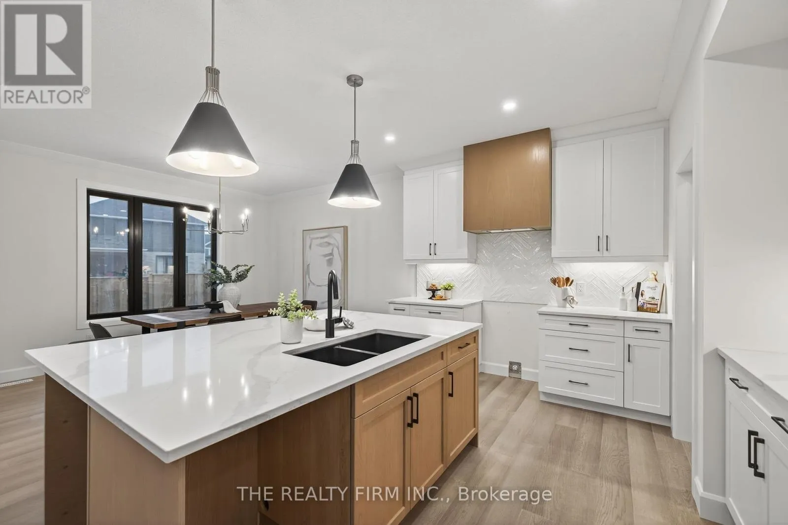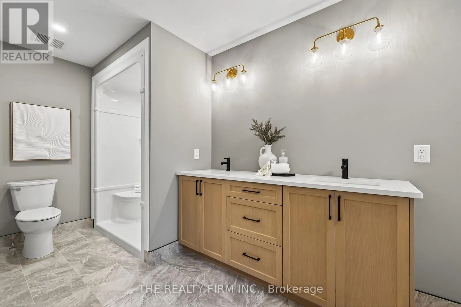 Cross Streets: Adelaide Road/County Road. ** Directions: From Adelaide Rd (Hwy 81), turn into the private condo development at 22701 Adelaide Rd. Discover the charm of Mount Brydges with Turner Homes' stunning new build, The Montana. This elegant 2,260 sq. ft. home offers a thoughtfully designed layout and a timeless exterior that beautifully blends stone, brick, and vinyl, all perfectly situated on a corner lot. A paver stone driveway welcomes you to this impressive two-story residence featuring 3+1 bedrooms and 3.5 bathrooms, providing ample space for a growing family. Inside, the main floor boasts an open-concept design that creates a bright, airy atmosphere. The versatile main-floor office includes a striking geometric feature wall and convenient 2-piece bathroom, ideal for those who work from home or need extra space. The modern kitchen is a chef's delight, showcasing quartz countertops, abundant cabinetry, and a large island with an integrated sink -- perfect for both culinary creations and entertaining guests. The inviting living room centers around an elegant fireplace, offering the perfect setting for family gatherings. Upstairs, you'll find three generous bedrooms, each offering a private retreat. The grand primary suite features a spa-like 5-piece ensuite and an oversized walk-in closet. A laundry room and 4-piece main bathroom complete this level. The finished lower level extends your living space even further, offering a cozy family room, an additional bonus room, and a 3-piece bathroom that's ideal for guests. The backyard offers plenty of green space along with a covered deck featuring soffit lighting, perfect for relaxing or entertaining outdoors. Located just 20 minutes from London, this home combines the charm of small-town living with the convenience of nearby city amenities. The neighbourhood is close to the local hockey arena, parks, baseball diamonds, walking trails, and more. The Montana is ideal for families looking for space, comfort, and modern style in a welcoming community. Don't miss your chance to call this beautiful property home! (id:27476)