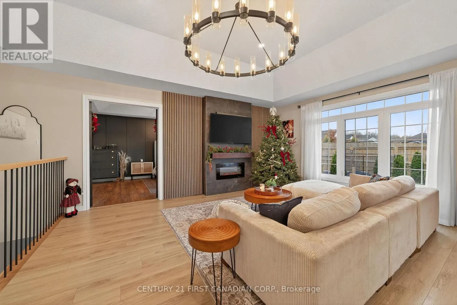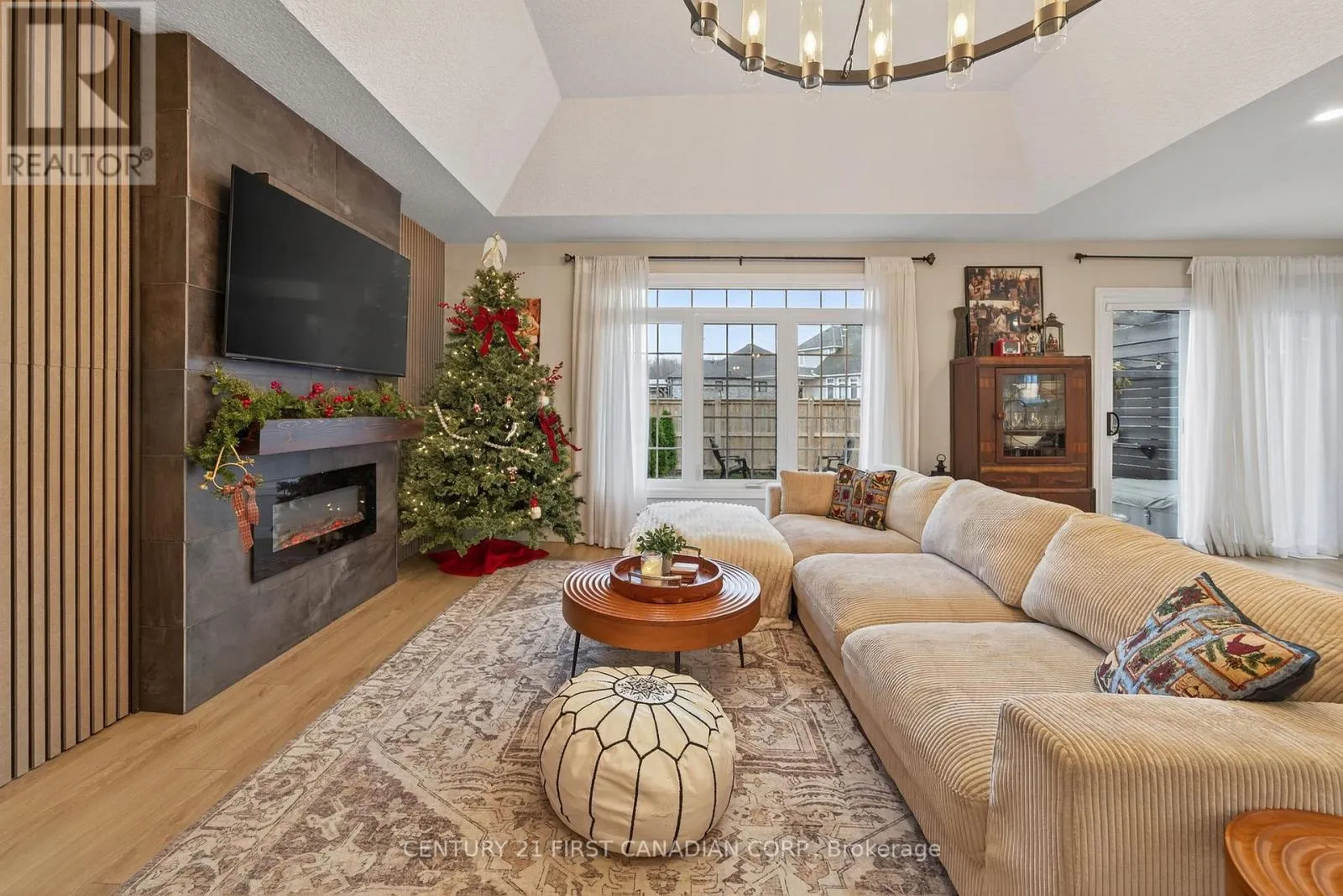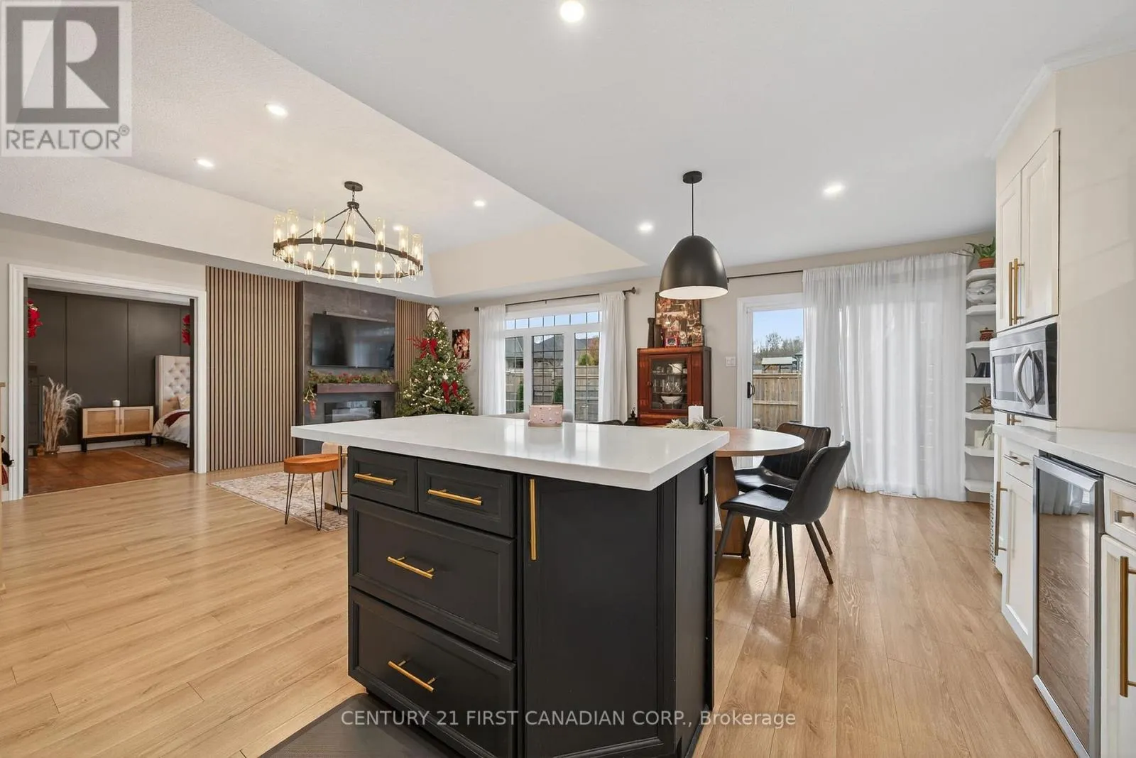 Cross Streets: Agnes Dr. ** Directions: Travelling south on Centre Rd/County Rd 81, turn left (east) on Second St. Turn right onto Agnes Dr. Turn left on Thorn Dr. The property is on the right. Welcome to this beautifully updated bungalow nestled in Strathroy's sought-after North end. Thoughtfully modernized from top to bottom, this home offers exceptional style, comfort, and function both inside and out. Step inside to find to find updated doors and hardware, new light fixtures, and a warm, contemporary aesthetic throughout. The spacious main floor features 3 generous bedrooms, including a stunning primary suite complete with a tray ceiling, custom walk-in closet, and an updated ensuite bathroom for a truly elevated retreat. The heart of the home is the updated kitchen, showcasing quartz countertops, updated cabinetry, and a seamless flow into the dining and living areas. A striking feature wall with fireplace and acoustic paneling creates the perfect focal point for cozy evenings or entertaining guests. Convenience is key with a new stackable washer and dryer in the laundry room located on the main level. The fully finished basement extends your living space with a large recreation area, an additional bedroom and a full bathroom - ideal for guests, teens, or multigenerational living. Step outside to your private backyard oasis featuring an in-ground saltwater pool, new heater, and stamped concrete surround - perfect for summer relaxation, The oversized heated garage provides ample room for larger vehicles, hobbies or storage. This move-in-ready bungalow checks all the boxes: updated, stylish, and located in one of Strathroy's most desirable neighbourhoods. Don't miss your chance to call this exceptional property home. (id:27476)