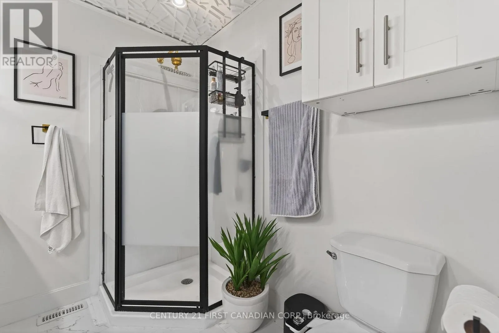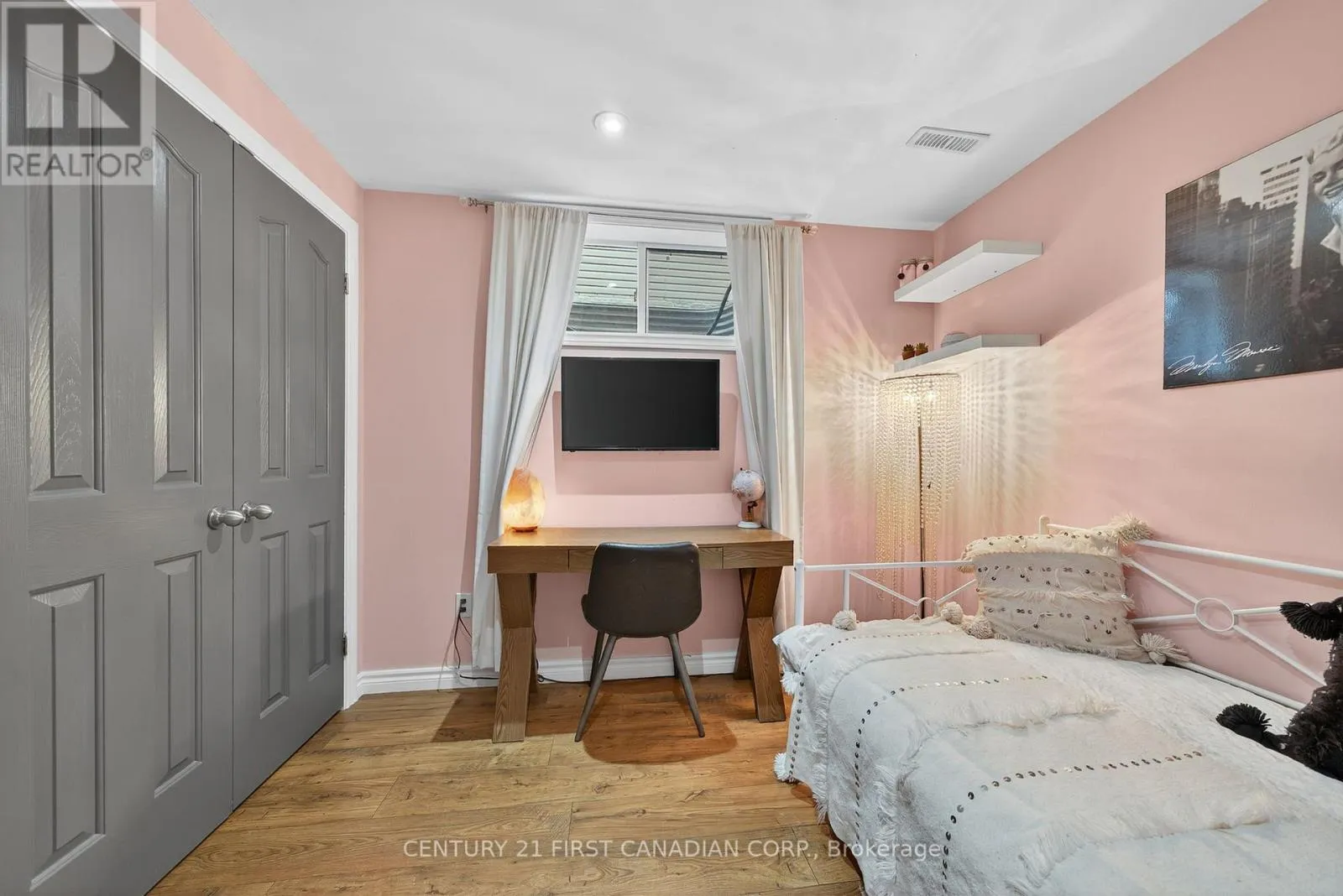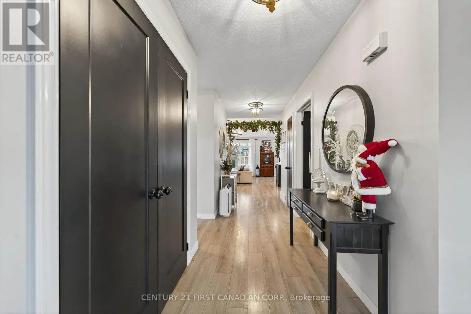 Cross Streets: Agnes Dr. ** Directions: Travelling south on Centre Rd/County Rd 81, turn left (east) on Second St. Turn right onto Agnes Dr. Turn left on Thorn Dr. The property is on the right. Welcome to this beautifully updated bungalow nestled in Strathroy's sought-after North end. Thoughtfully modernized from top to bottom, this home offers exceptional style, comfort, and function both inside and out. Step inside to find to find updated doors and hardware, new light fixtures, and a warm, contemporary aesthetic throughout. The spacious main floor features 3 generous bedrooms, including a stunning primary suite complete with a tray ceiling, custom walk-in closet, and an updated ensuite bathroom for a truly elevated retreat. The heart of the home is the updated kitchen, showcasing quartz countertops, updated cabinetry, and a seamless flow into the dining and living areas. A striking feature wall with fireplace and acoustic paneling creates the perfect focal point for cozy evenings or entertaining guests. Convenience is key with a new stackable washer and dryer in the laundry room located on the main level. The fully finished basement extends your living space with a large recreation area, an additional bedroom and a full bathroom - ideal for guests, teens, or multigenerational living. Step outside to your private backyard oasis featuring an in-ground saltwater pool, new heater, and stamped concrete surround - perfect for summer relaxation, The oversized heated garage provides ample room for larger vehicles, hobbies or storage. This move-in-ready bungalow checks all the boxes: updated, stylish, and located in one of Strathroy's most desirable neighbourhoods. Don't miss your chance to call this exceptional property home. (id:27476)