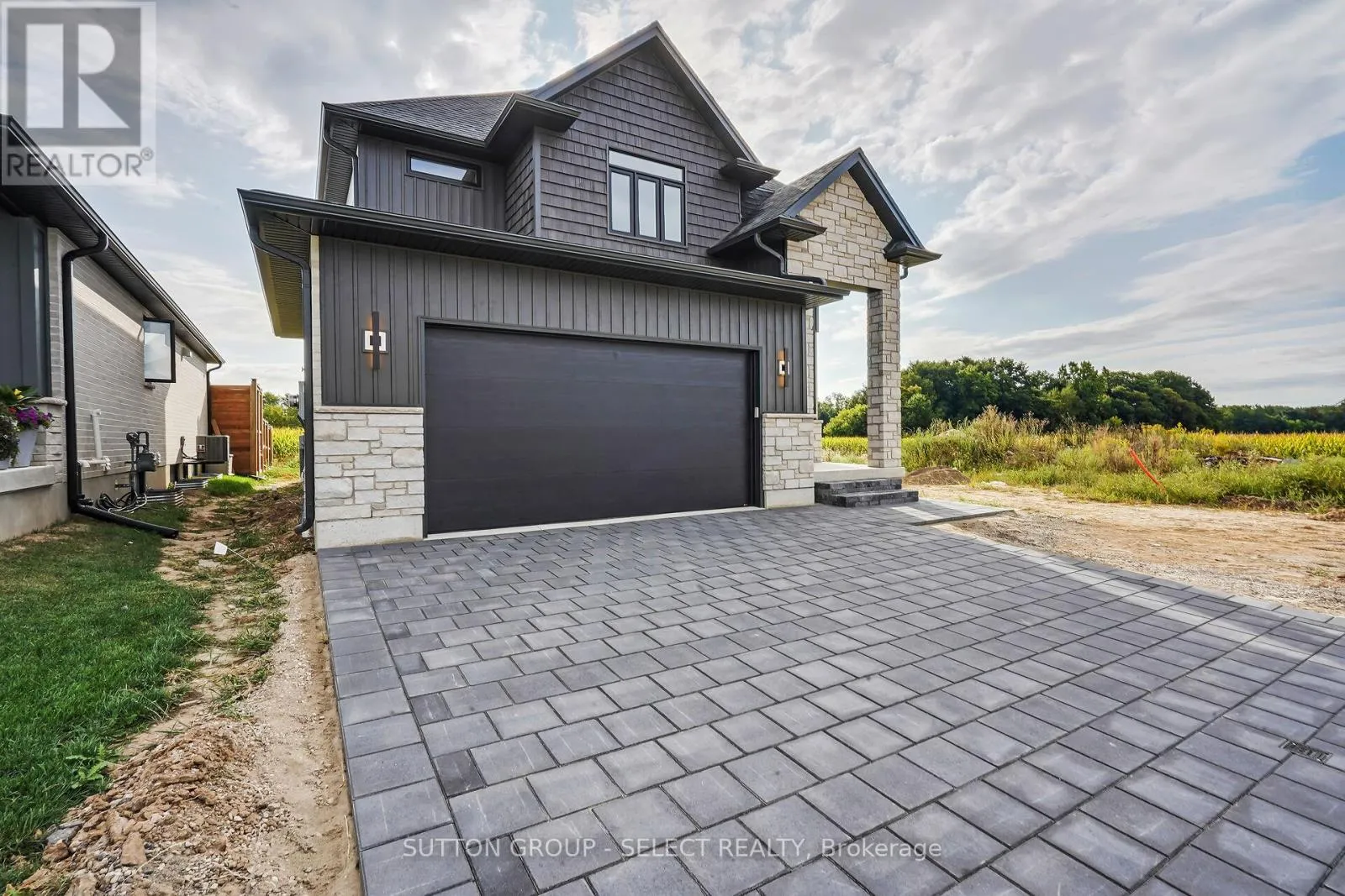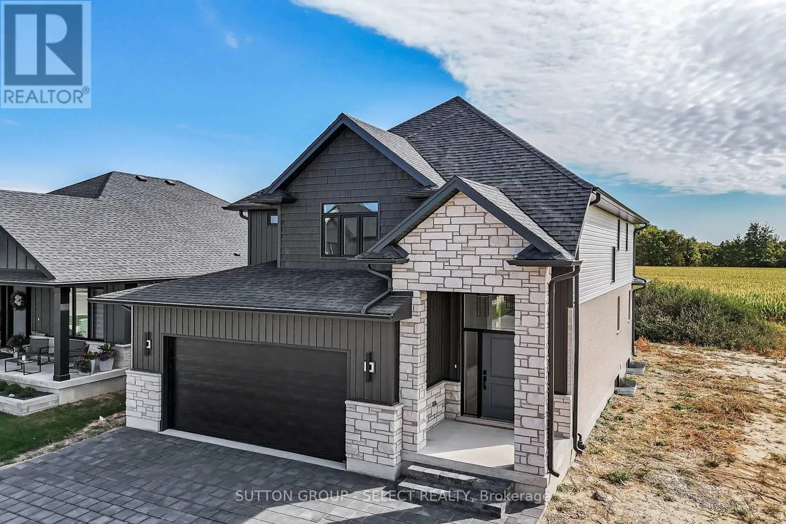 Cross Streets: THORN DR. ** Directions: THORN DR TO BRISCOE CR. Welcome to 58 Briscoe Crescent, located in the highly desirable Creekside subdivision in Strathroy north end! This executive 2-storey home impresses from the moment you arrive with its stone and Hardie board exterior and corner-lot setting backing onto open farmland. Step inside to a soaring 2-storey foyer with a grand staircase that sets the tone for the elegant interior. The main floor offers hardwood flooring throughout with aria built in floor vents for a seamless look. Open-concept layout with oversized windows flooding the living and dining areas with natural light. The living room features a fireplace, while the dining area opens to a covered porch perfect for entertaining. The chefs kitchen is finished with crisp white cabinetry, quartz countertops, tile backsplash and stainless steel hood range. A stylish powder room with gold wall-mounted faucet and designer Lighting, along with main-floor laundry, complete this level. Upstairs, the spacious primary suite is a true retreat with a large walk-in closet and a spa-like ensuite featuring a freestanding soaker tub, custom walk-in tiled shower, and black plumbing fixtures for a modern touch. Two additional generously sized bedrooms, including one with vaulted ceilings, share a full bath with oversized vanity, transom windows in the shower for added natural light, and sleek black fixtures. The fully finished lower level provides excellent additional space with a large rec room, full bathroom, and an extra bedroom, ideal for guests or extended family. Throughout the home, designer lighting fixtures elevate each space, enhancing the style and sophistication. Enjoy the private backyard backing onto farmland, plus the advantages of a corner lot with additional side yard space and easy access for a future pool. All this in a neighbourhood close to excellent schools, parks, shopping, restaurants, and quick access to Hwy 402. A rare opportunity to own a move-in ready home that combines timeless design with modern luxury. (id:27476)