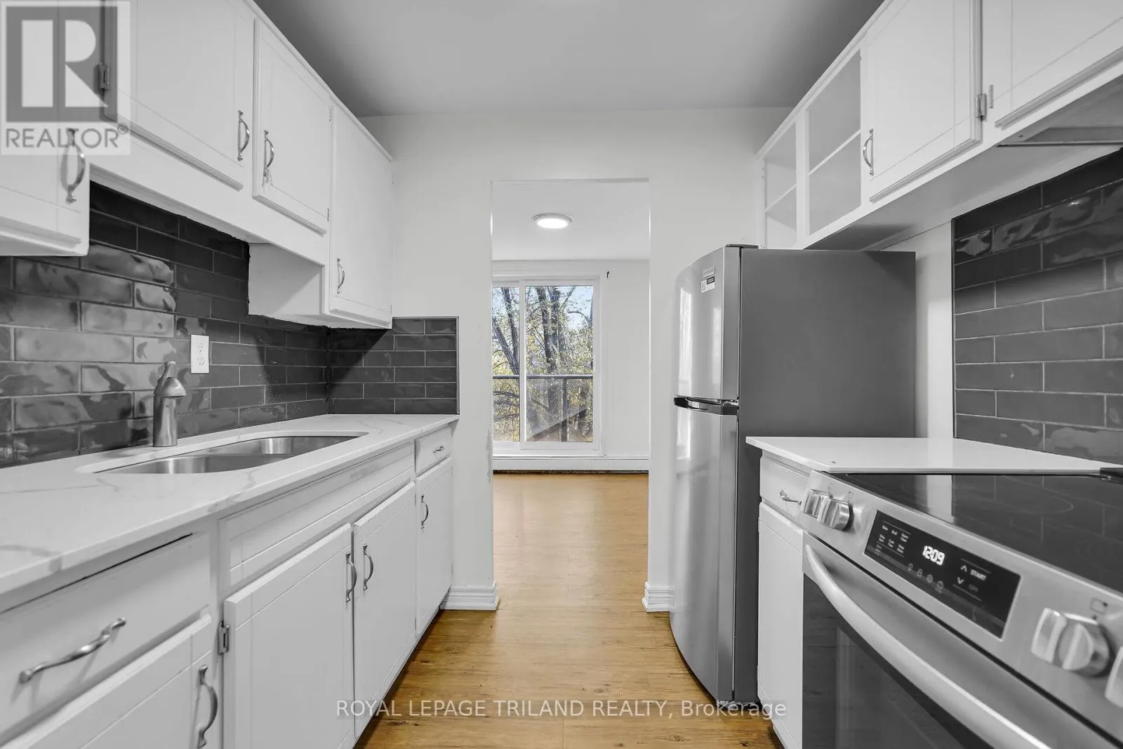 Cross Streets: Victoria Street. ** Directions: Between Victoria Street and Carrie Street. Experience refined living and exceptional convenience in this beautifully updated third floor, two bedroom unit, perfectly situated in the heart of Strathroy. The space features two generous bedrooms, a contemporary four piece bathroom, and a sleek, modern kitchen complete with stainless steel appliances that blend style with everyday functionality. Step outside onto your private balcony, an inviting place to unwind and enjoy the outdoors. On site coin laundry adds to the convenience, and parking is available for $50 per month per spot. Water and heating are included in the rent, with electricity extra. Ideally located just moments from Strathroy Hospital, as well as shopping, restaurants, parks, and scenic walking trails, this unit offers the charm of small town living with effortless access to local amenities and Highway 402. (id:27476)