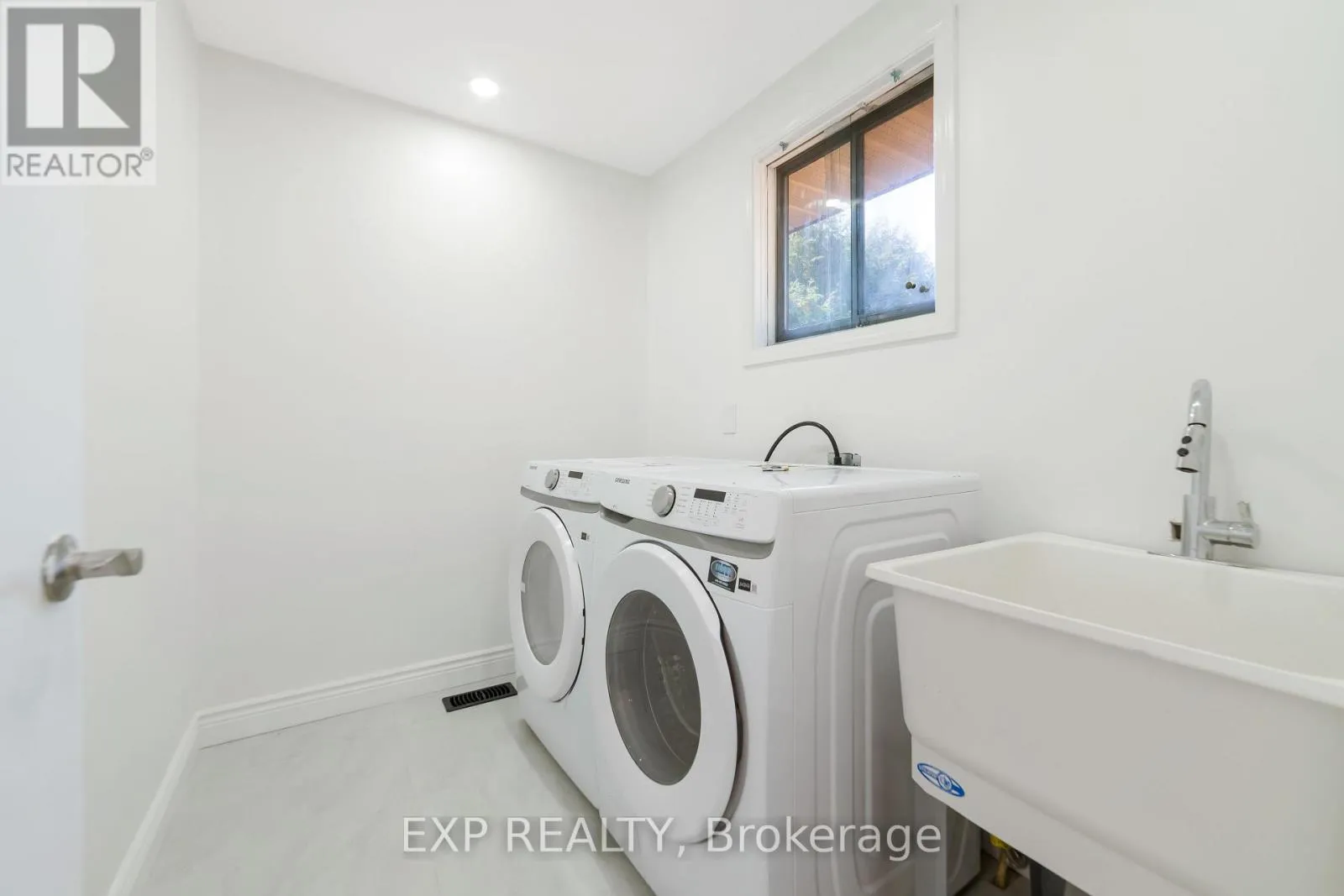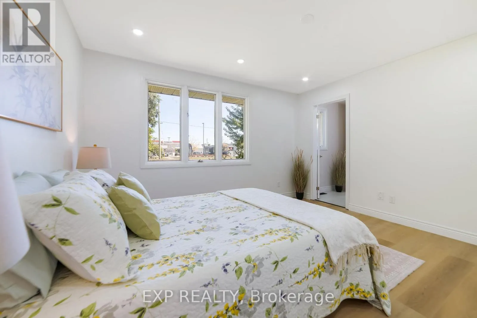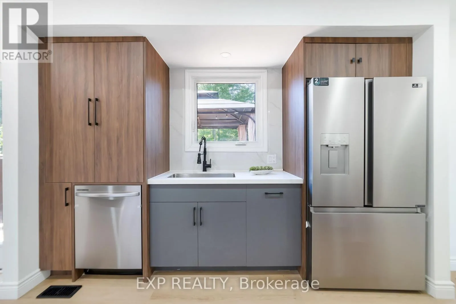 Cross Streets: Caradoc st S and Carroll St E. ** Directions: On Caradoc st S. Presenting a beautifully updated 3-bedroom, 2-bathroom bungalow, perfectly located in a highly desirable neighborhood on a sprawling 78ft x 150ft lot. Over $120,000 has been invested in upgrades, including a brand-new custom luxury kitchen valued at $40,000.Step inside to a spacious foyer that leads into a naturally lit living room, setting the tone for the elegance found throughout the home. The stunning kitchen features quartz countertops, timeless three-tone cabinetry, a modern black sink, and high-end stainless steel appliances. A central island offers the perfect space for cooking and casual dining.The main floor boasts three inviting bedrooms, including a master with a custom ensuite and built-in cabinetry. A bright, custom laundry room completes the main level. The lower level offers a partially finished space with a beautiful rec room, providing versatile options for family living or entertainment.The fully fenced backyard is an entertainer's dream, featuring a large above-ground pool, a substantial deck, and an expansive covered porch ideal for year-round relaxation. Additional highlights include an attached garage, asphalt double-wide driveway, and meticulously maintained landscaping with a brick front and walkway enhancing the home's curb appeal.Other notable upgrades include attic insulation (2025), appliances (2025), kitchen cabinets (2025), renovated bathrooms (2025), brand-new pot-lights (2025), and much more. This home is truly move-in ready and offers a perfect blend of luxury, comfort, and functionality (id:27476)