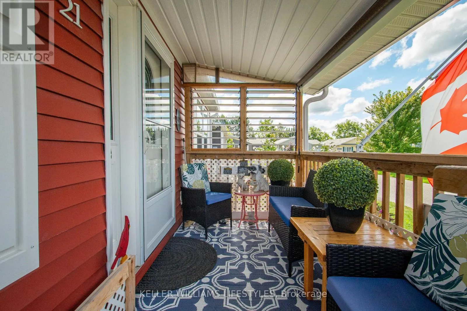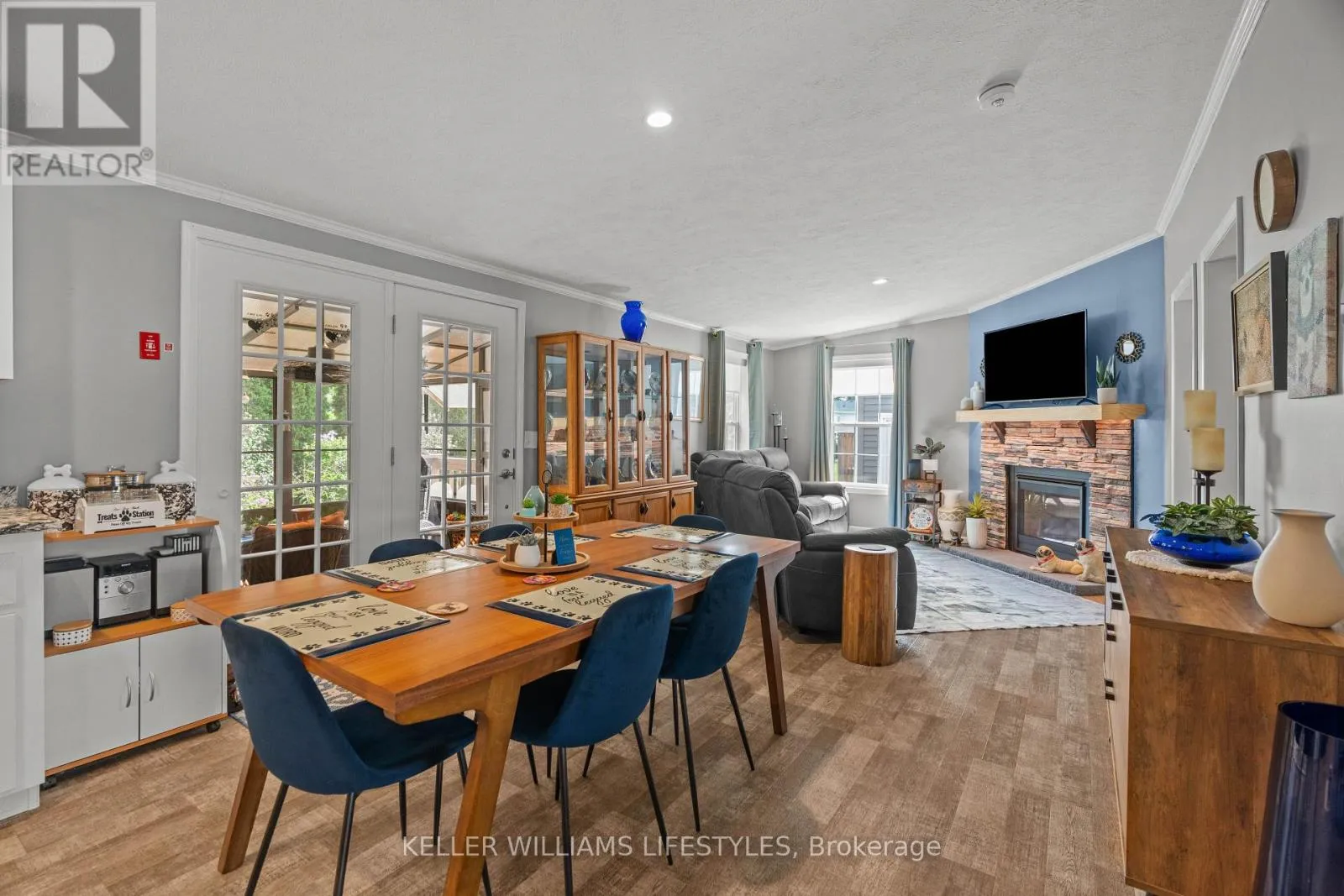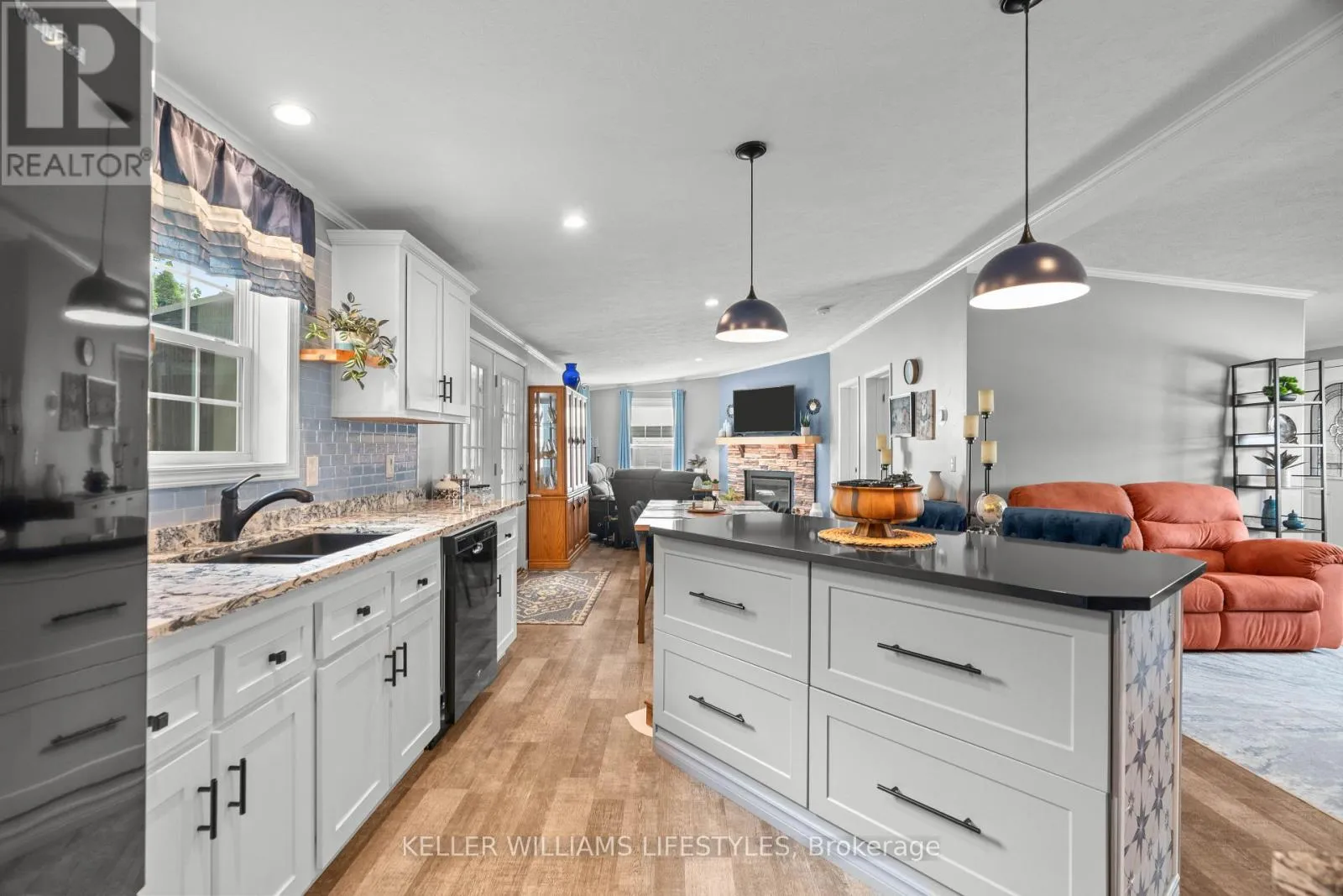 Cross Streets: Saxton Rd. & Bond St. ** Directions: From Carroll St. E, Turn onto Saxton Rd., Turn Right onto Bond St., Right onto Kellestine Dr. Welcome to 21 Kellestine Drive, Strathroy. Nestled in Twin Elm Estates, a highly sought-after rent-controlled adult-lifestyle community, this charming home combines comfort, convenience, and peace of mind. Ideally located, you're just a short walk to shopping centres, including Walmart, dining, and Caradoc Sands Golf Club, offering both daily essentials and leisure right at your doorstep. Inside, this 2-bedroom bungalow is thoughtfully designed. The primary bedroom features an ensuite with a walk-in shower, while the second bedroom offers a spacious closet for added storage. The kitchen showcases quartz countertops, and the cozy gas fireplace provides warmth and ambiance during the cooler months. For added peace of mind, the home is equipped with a full-house generator, ensuring uninterrupted comfort regardless of the weather, and leaf guards along back eavestroughs. Step into the 3 seasonal sunroom with luxury vinyl flooring and outside you'll find a private backyard with two storage sheds, perfect for yard tools and seasonal items. Living in Twin Elm means more than just a home; it's a lifestyle. Residents enjoy access to a well-equipped clubhouse featuring a hall, kitchen, weight room, darts, billiards, shuffleboard, and a calendar full of resident-organized events. For those with extra recreational vehicles, on-site RV and boat storage is available for an additional fee. (id:27476)