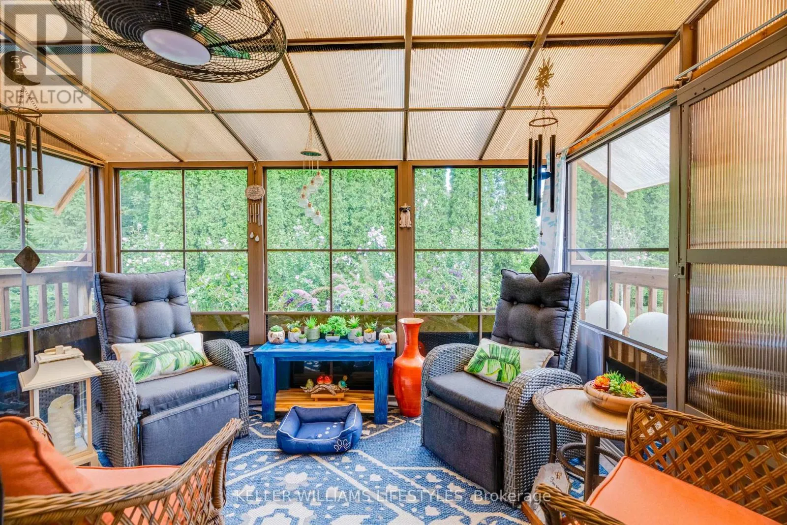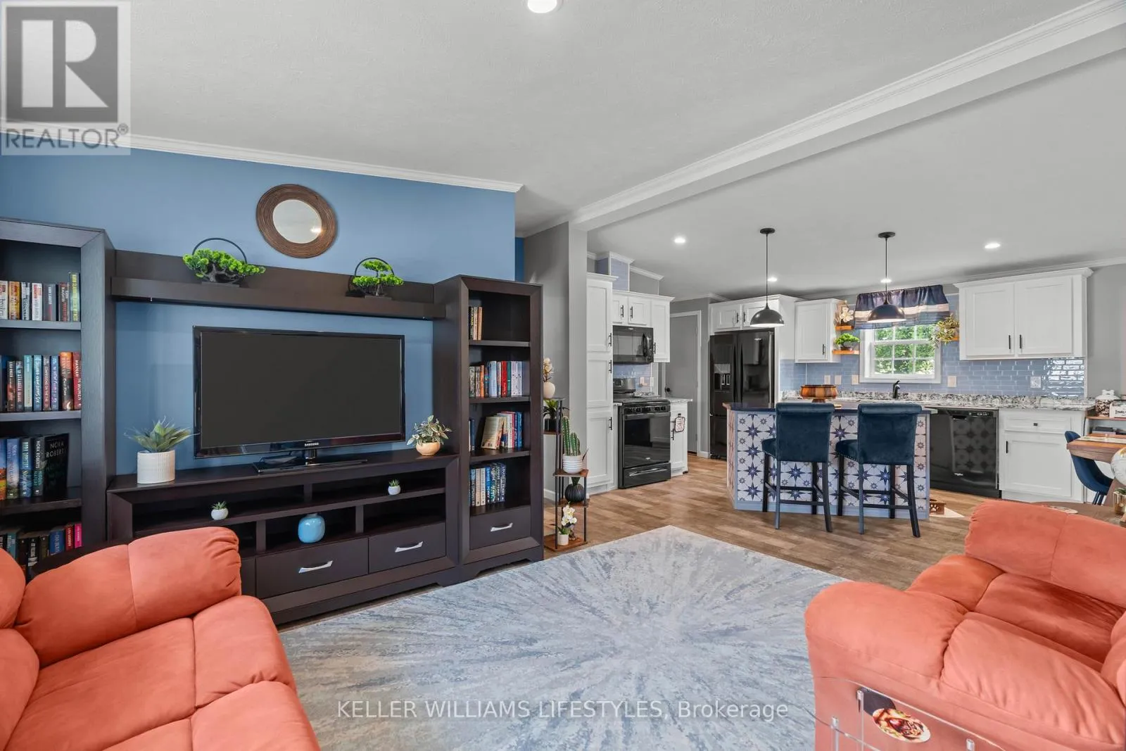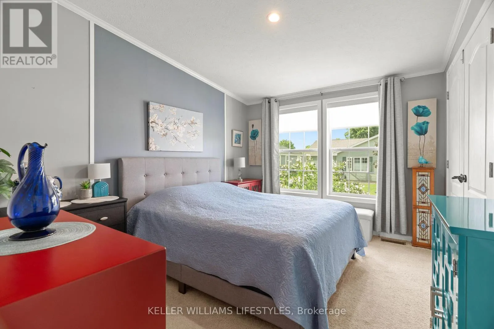 Cross Streets: Saxton Rd. & Bond St. ** Directions: From Carroll St. E, Turn onto Saxton Rd., Turn Right onto Bond St., Right onto Kellestine Dr. Welcome to 21 Kellestine Drive, Strathroy. Nestled in Twin Elm Estates, a highly sought-after rent-controlled adult-lifestyle community, this charming home combines comfort, convenience, and peace of mind. Ideally located, you're just a short walk to shopping centres, including Walmart, dining, and Caradoc Sands Golf Club, offering both daily essentials and leisure right at your doorstep. Inside, this 2-bedroom bungalow is thoughtfully designed. The primary bedroom features an ensuite with a walk-in shower, while the second bedroom offers a spacious closet for added storage. The kitchen showcases quartz countertops, and the cozy gas fireplace provides warmth and ambiance during the cooler months. For added peace of mind, the home is equipped with a full-house generator, ensuring uninterrupted comfort regardless of the weather, and leaf guards along back eavestroughs. Step into the 3 seasonal sunroom with luxury vinyl flooring and outside you'll find a private backyard with two storage sheds, perfect for yard tools and seasonal items. Living in Twin Elm means more than just a home; it's a lifestyle. Residents enjoy access to a well-equipped clubhouse featuring a hall, kitchen, weight room, darts, billiards, shuffleboard, and a calendar full of resident-organized events. For those with extra recreational vehicles, on-site RV and boat storage is available for an additional fee. (id:27476)