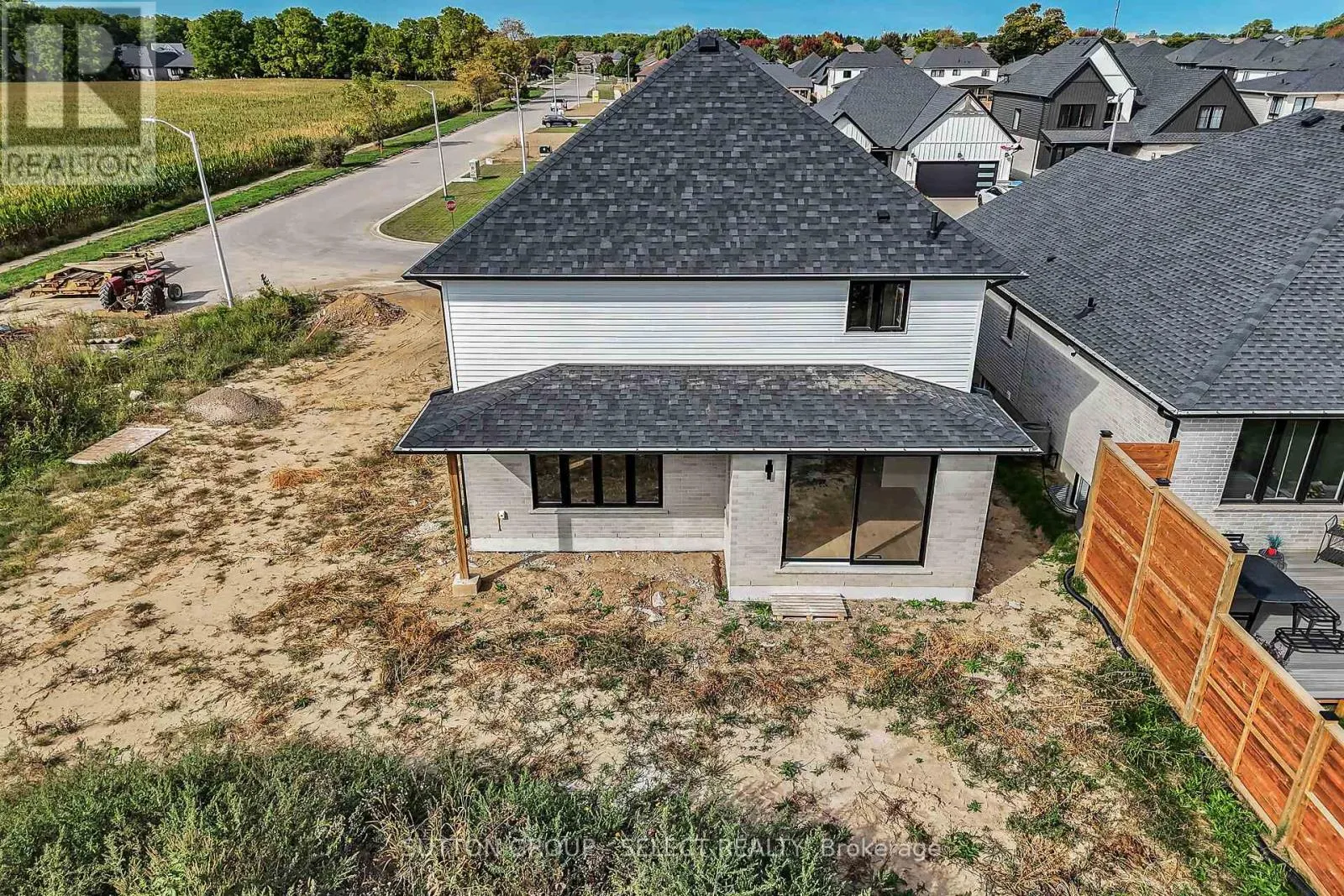 Cross Streets: THORN DR. ** Directions: THORN DR TO BRISCOE CR. Welcome to 58 Briscoe Crescent, located in the highly desirable Creekside subdivision in Strathroy north end! This executive 2-storey home impresses from the moment you arrive with its stone and Hardie board exterior and corner-lot setting backing onto open farmland. Step inside to a soaring 2-storey foyer with a grand staircase that sets the tone for the elegant interior. The main floor offers hardwood flooring throughout with aria built in floor vents for a seamless look. Open-concept layout with oversized windows flooding the living and dining areas with natural light. The living room features a fireplace, while the dining area opens to a covered porch perfect for entertaining. The chefs kitchen is finished with crisp white cabinetry, quartz countertops, tile backsplash and stainless steel hood range. A stylish powder room with gold wall-mounted faucet and designer Lighting, along with main-floor laundry, complete this level. Upstairs, the spacious primary suite is a true retreat with a large walk-in closet and a spa-like ensuite featuring a freestanding soaker tub, custom walk-in tiled shower, and black plumbing fixtures for a modern touch. Two additional generously sized bedrooms, including one with vaulted ceilings, share a full bath with oversized vanity, transom windows in the shower for added natural light, and sleek black fixtures. The fully finished lower level provides excellent additional space with a large rec room, full bathroom, and an extra bedroom, ideal for guests or extended family. Throughout the home, designer lighting fixtures elevate each space, enhancing the style and sophistication. Enjoy the private backyard backing onto farmland, plus the advantages of a corner lot with additional side yard space and easy access for a future pool. All this in a neighbourhood close to excellent schools, parks, shopping, restaurants, and quick access to Hwy 402. A rare opportunity to own a move-in ready home that combines timeless design with modern luxury. (id:27476)
