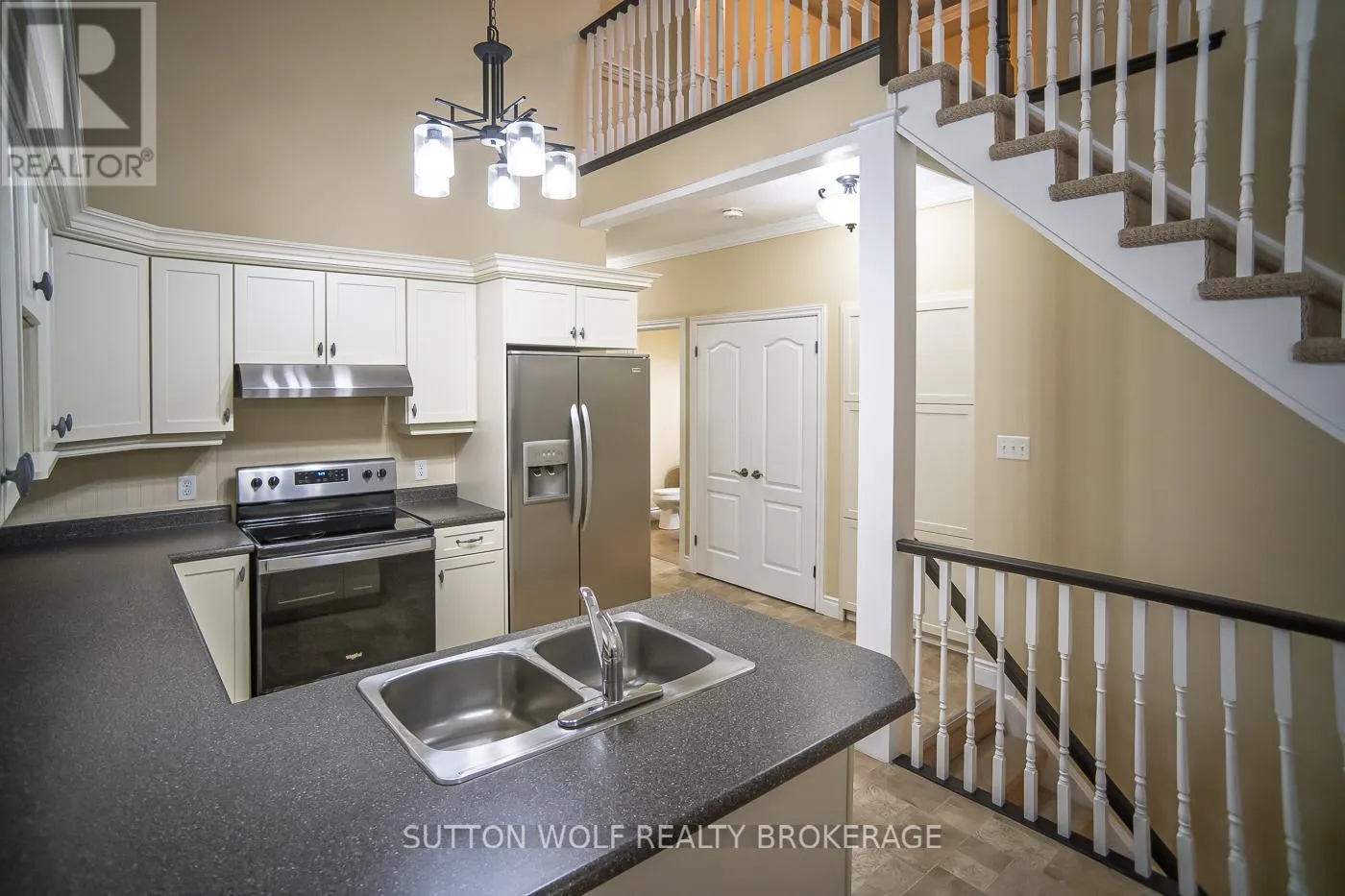 Cross Streets: PANNELL LN. ** Directions: PANNELL LN & VICTORIA ST. Welcome to this unique upgraded 3 bedroom condo in the heart of beautiful Strathroy, great value with loads of upgrades. Main floor includes: laundry, primary bedroom with 3 pc bathroom and his and hers closets, plus a 2 piece bathroom and an additional bedroom that could be used as an office/den off foyer. Amazing staircase to 2nd-floor loft overlooking vaulted ceilings to below, with an additional bedroom and 4pc bathroom. Bright and open kitchen and living room. Relax on the front porch or sit on the rear south-facing deck off the living room. Lower level unfinished with rough-in bathroom, stairs to garage, with lots of room to finish for your needs. Pets are allowed. (id:27476)