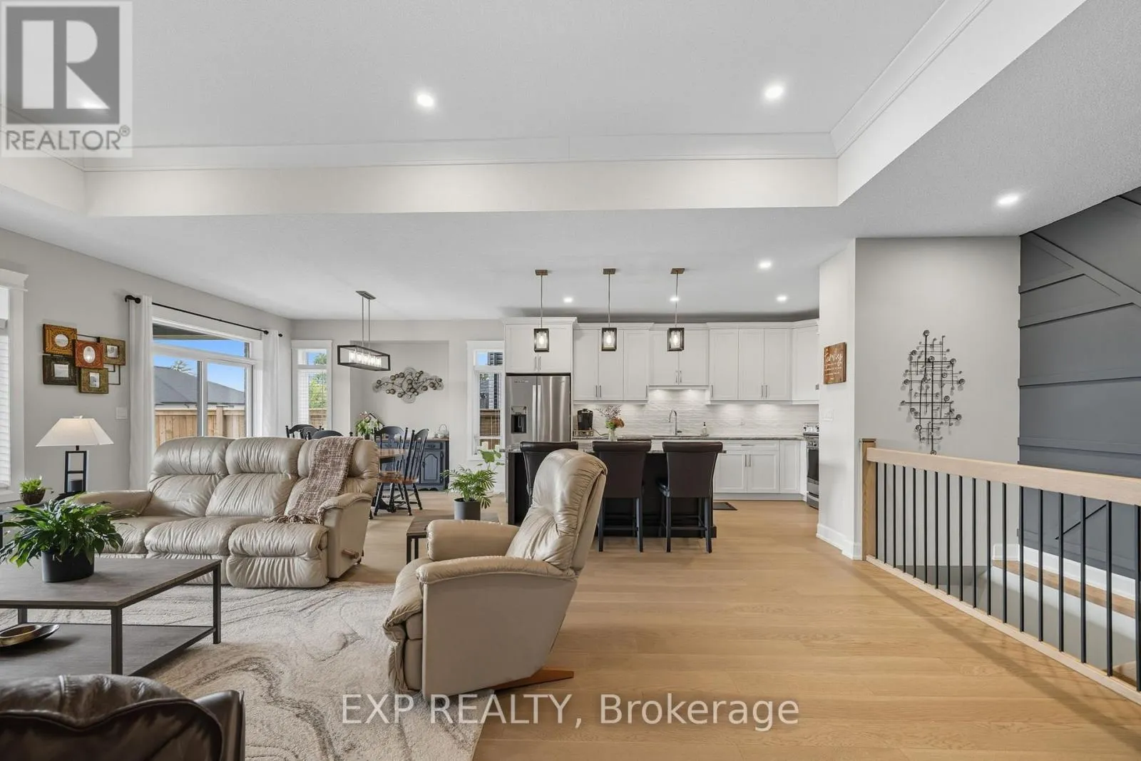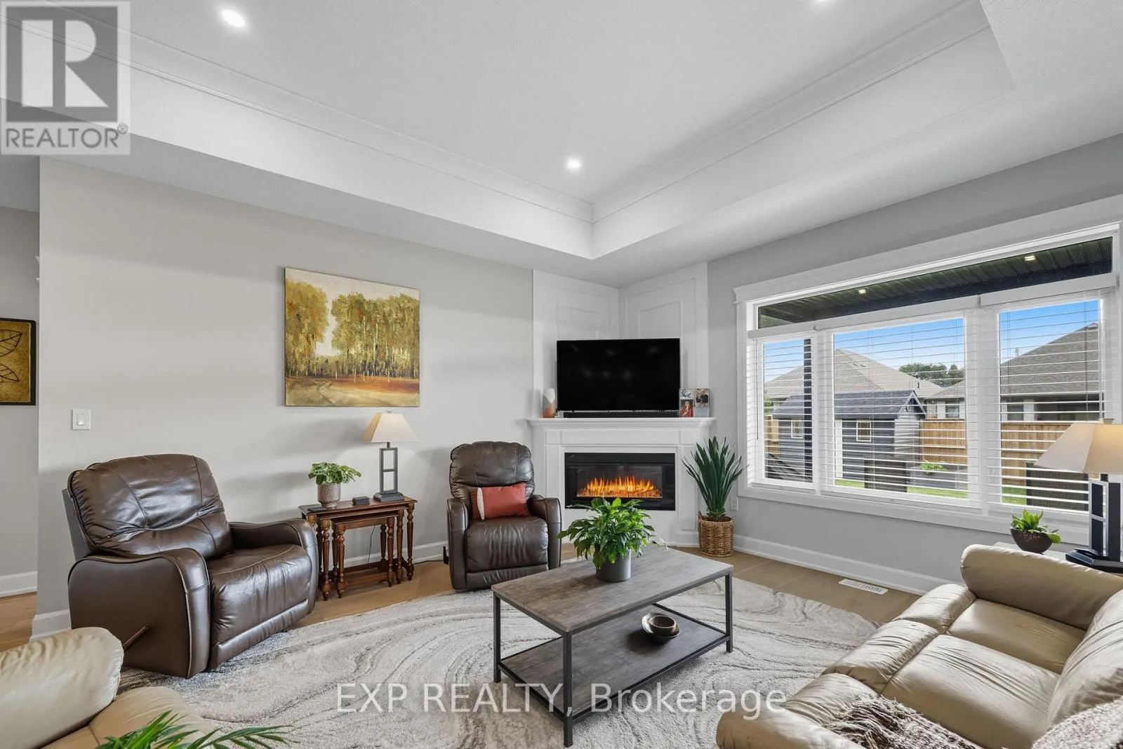Cross Streets: Collins Way and Statham St. ** Directions: Take Elwood St from Saxton Rd, Turn Right on Elliott St, Left on Foxen St, left on Statham St. Welcome to Prestigious South Grove Meadows 19 Statham Street, a stunning Dwyer-built all-brick home tucked away on a quiet inside street with minimal traffic, just minutes from Caradoc Sands Golf Club. Sitting on a generous 130 ft lot, this 2+2 bedroom, 3 full bath property showcases thoughtful upgrades, timeless finishes, and a warm open-concept design. Pull up to your new home and right into the 20ft x 24ft two car garage with built in shelving for all of your extra storage items. Inside, you'll find a bright, airy main floor with added windows for natural light, a cozy living room fireplace, and a gourmet kitchen featuring granite countertops, stainless steel appliances, a large island, walk-in corner pantry, and sleek black sink. The primary suite offers a walk-in closet and private ensuite, while the second main-floor bedroom is ideal for guests or a home office. The fully finished lower level includes 2 additional bedrooms (one with walk-in closet), a full bathroom with heated floors, a spacious family room with a gas fireplace, and soundproofing upgrades for ultimate comfort. Outside, enjoy a 7ft fenced backyard, stamped poured concrete patio 29ft by 12ft, extended covered porch 26ft by 12ft, perfect for entertaining or relaxing in your private retreat. Additional storage in a beautiful 9ft x 12ft shed with loft. The homes exterior is designed for low maintenance with aluminum-wrapped posts, stone skirt with brick accents, and upgraded black garage doors. Additional features include: Double car garage, central vac, CAT-6 wiring in every room, window coverings (Levolor blinds upstairs, blackout blinds downstairs), Quartz countertops in all upstairs baths, Noise insulation upgrades between levels. On demand tankless water heater. This move-in ready home is close to schools, parks, shopping, dining, golf and recreational facilities making it an exceptional choice for modern comfortable living in Strathroy. (id:27476)