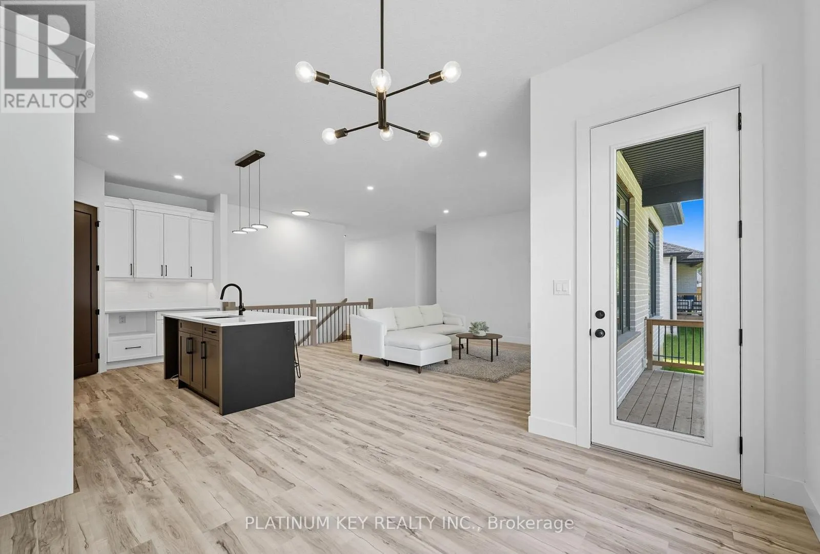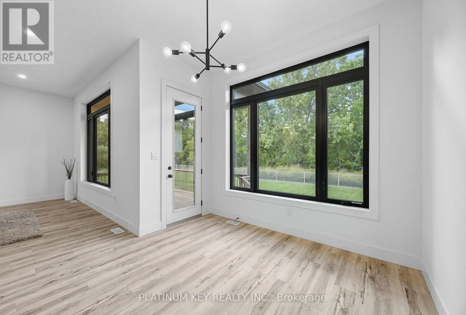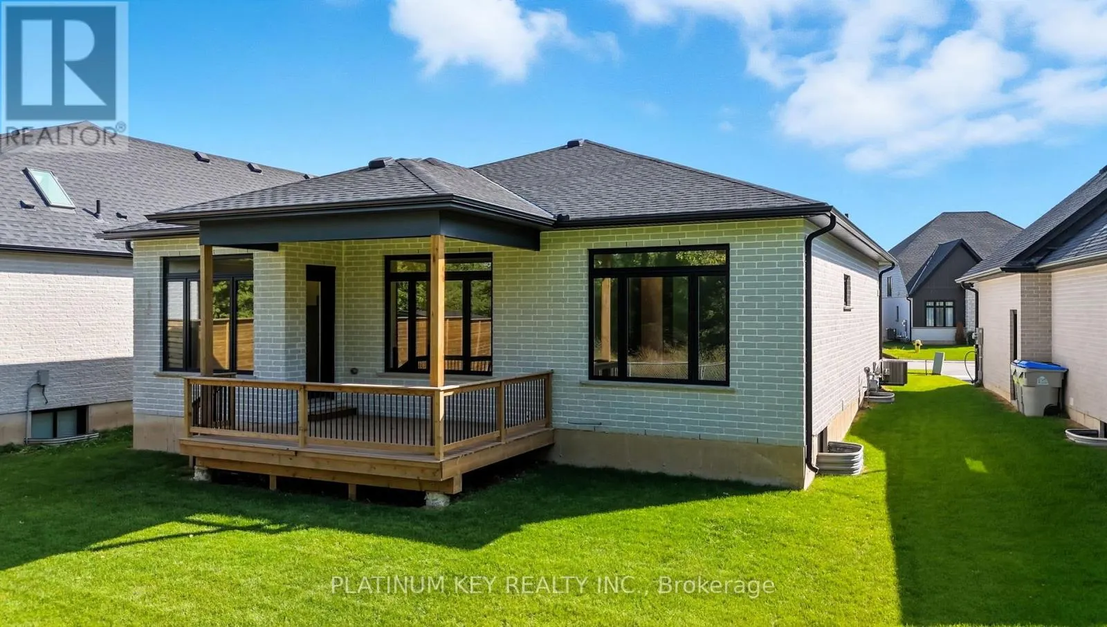 Cross Streets: Thorn Drive. ** Directions: From Head St N turn East on Thorn Drive, then turn North on Briscoe Crescent. A stunning new build Bungalow with finished basement by Dwyer Homes. This 2+2 bedroom, 3 bathroom home is located on a quiet crescent in Strathroy and backing onto a ravine, surrounded by mature trees. Inside, soaring 10-foot ceilings and an open-concept design set the tone for modern living. The kitchen includes a large centre island with eating bar and a spacious pantry, opening directly to the great room and dining area with walkout to a covered deck and private yard. The front bedroom shines with natural light, while the primary suite is a true retreat with walk-in closet and luxurious five-piece en-suite. An additional four-piece bath and a convenient laundry/mudroom off the garage complete the main floor. Downstairs, the finished lower level impresses with a massive family/games room, two more bedrooms, and another full bath. This impressive home blends style and function and is just minutes to schools, parks, shopping, the hospital, and quick access to Highway 402. (id:27476)