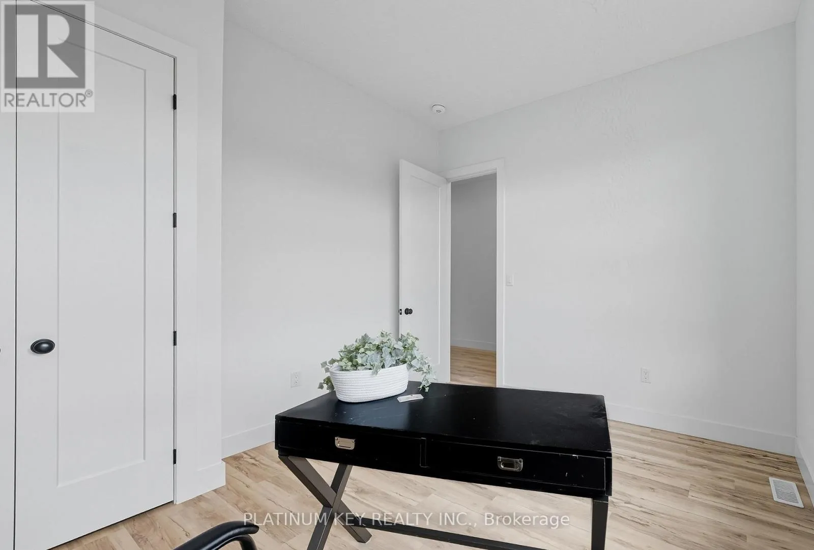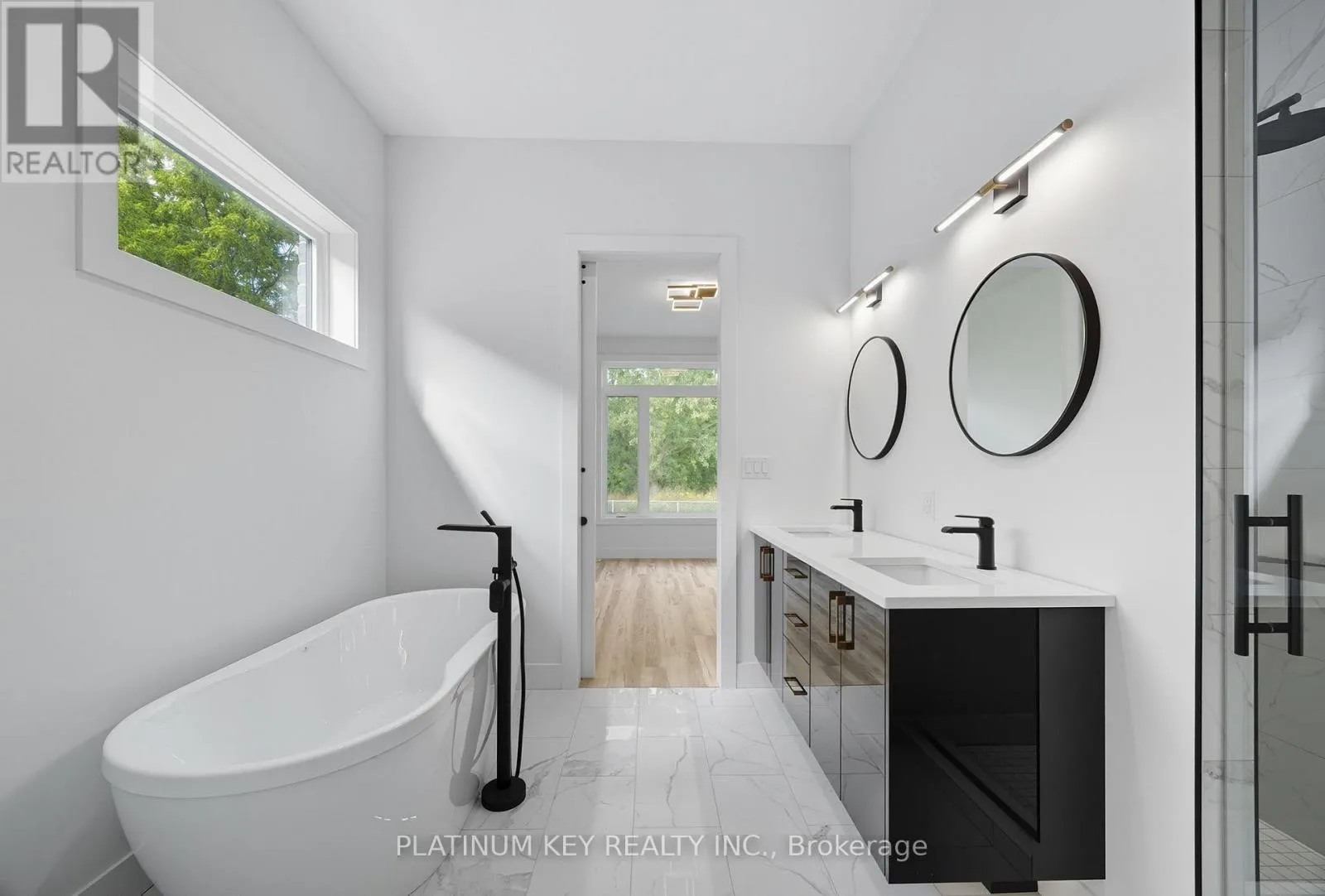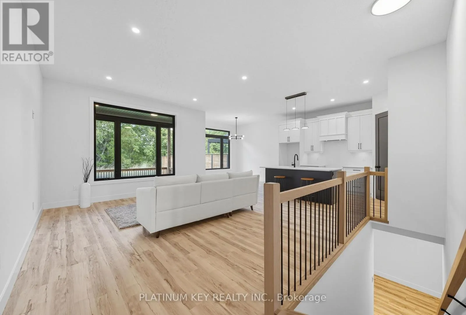 Cross Streets: Thorn Drive. ** Directions: From Head St N turn East on Thorn Drive, then turn North on Briscoe Crescent. A stunning new build Bungalow with finished basement by Dwyer Homes. This 2+2 bedroom, 3 bathroom home is located on a quiet crescent in Strathroy and backing onto a ravine, surrounded by mature trees. Inside, soaring 10-foot ceilings and an open-concept design set the tone for modern living. The kitchen includes a large centre island with eating bar and a spacious pantry, opening directly to the great room and dining area with walkout to a covered deck and private yard. The front bedroom shines with natural light, while the primary suite is a true retreat with walk-in closet and luxurious five-piece en-suite. An additional four-piece bath and a convenient laundry/mudroom off the garage complete the main floor. Downstairs, the finished lower level impresses with a massive family/games room, two more bedrooms, and another full bath. This impressive home blends style and function and is just minutes to schools, parks, shopping, the hospital, and quick access to Highway 402. (id:27476)