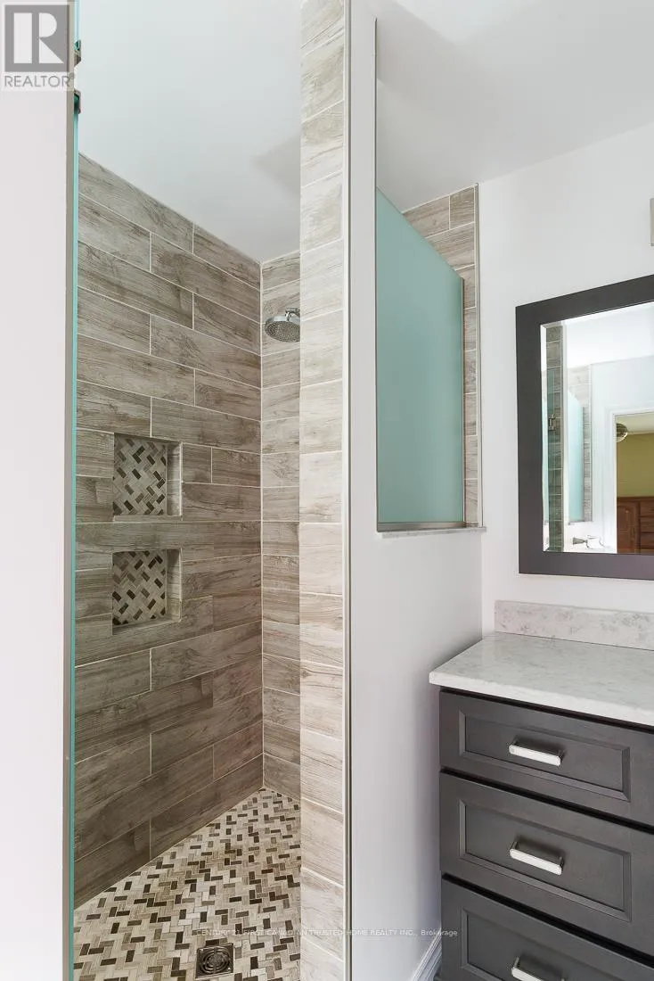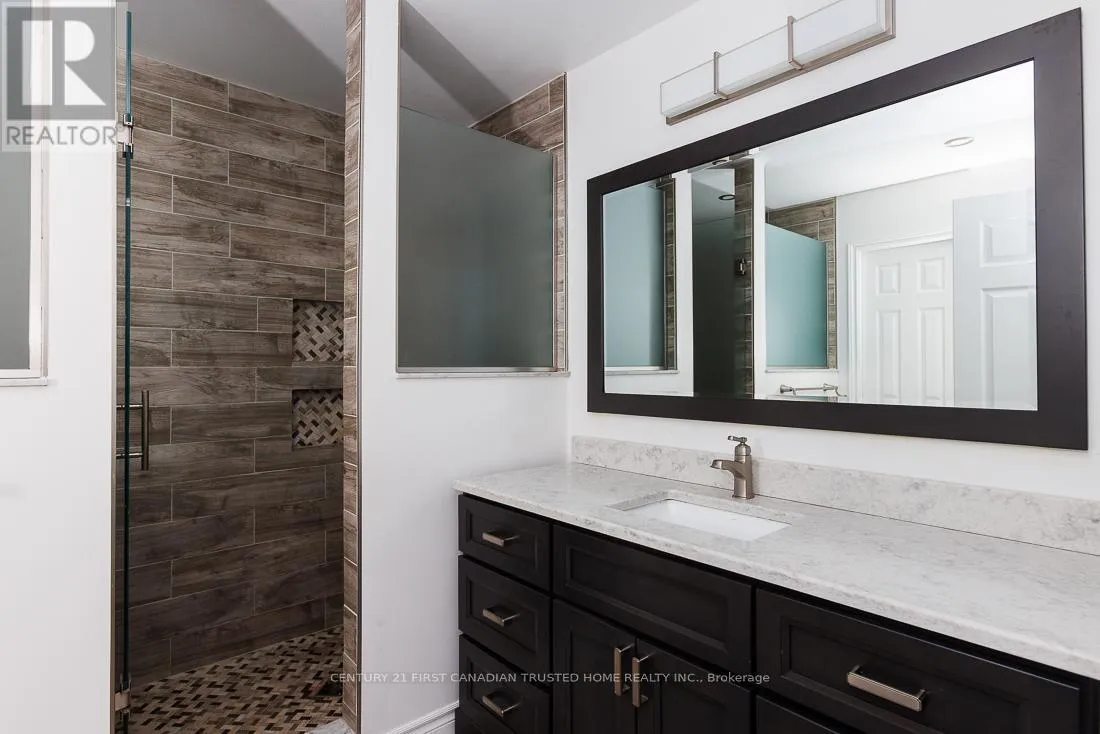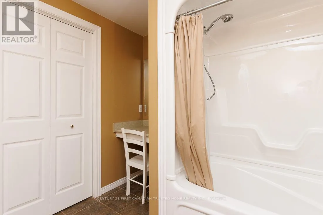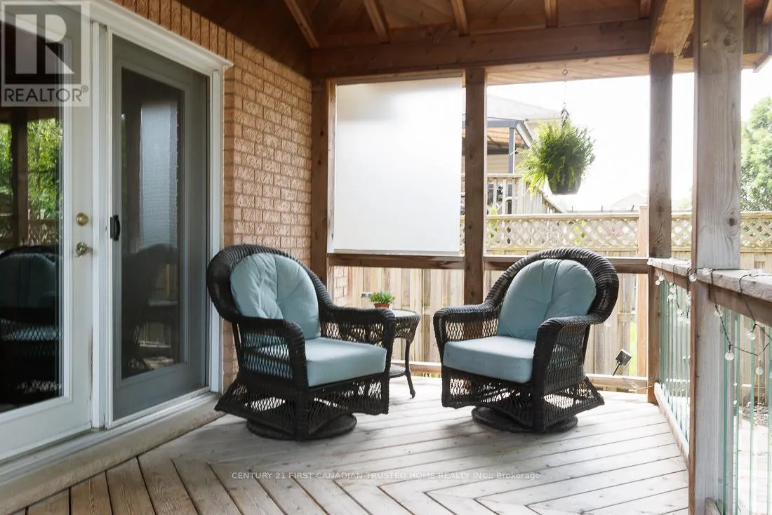 Cross Streets: HARRIS/HEAD. ** Directions: FROM HEAD ST TURN RIGHT ONTO HARRIS CIRCLE. LOCATION! LOCATION! LOCATION! Welcome to this charming all Brick Bungalow in the North end of Strathroy. Nestled on a quiet crescent with close proximity to Schools, Shopping, Sports complex and Highway 402. Offering over 2400 sq ft (Including basement ) of fully finished living space, a bright and inviting Living Room with vaulted ceilings connecting to an eat-in kitchen. From here the space is open to a large dining room with adjacent office, which has played host to family dinners of 24 people, comfortably. Dining room opens to a custom covered cedar deck within a nicely shaded, and private fully fenced backyard with water fountain, firepit, and shed with power. Great for summer gatherings, barbeques etc. Main level also offers 2 good sized bedrooms, luxurious cheater ensuite, complete with large walk-in shower and separate jacuzzi deep jet tub. Descending to the basement, a warm and inviting space, with large family/Rec room complete with coffered ceiling and up-lit lighting, a decent sized storage room, an Office/Playroom with 2 built-in desks and more storage, large 4 piece bath downstairs, and a spare room (possible additional bedroom), along with full laundry room. Basement was constructed using Pre-engineered subfloor system, for added comfort, and all walls and ceilings are sound proofed with R12 Roxal mineral sound insulation. Included with the home is a Culligan full home water softener, which has its own room along with the city water meter, and more storage. Not included in the square footage of the home is the attached 1-1/2 car garage that is 2' longer than a standard 2 car garage at 21', meaning that although it is 3' narrower, it is only 30 square feet less than a full 2 car Garage. Home is Move-in condition, however, should the new owner wish to have the office converted into a 3rd main floor bedroom, as per plan attached the current owner is willing to convert it, prior to move in, for an additional cost. (id:27476)