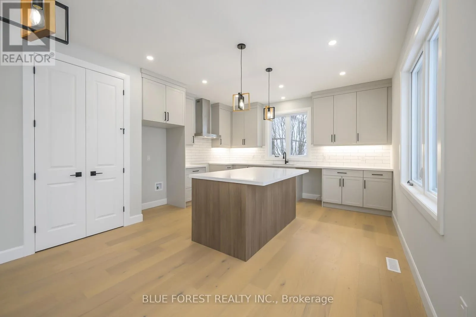 Cross Streets: Adelaide Rd / Lions Park Dr. ** Directions: From Adelaide Rd, turn South onto Lions Park Drive, house on left. Welcome home to 619 Lions Park Dr. Bright and spacious open concept layout from the foyer to greet your guests to the rear great room to entertain them! The chef-inspired kitchen showcases premium custom cabinetry, quartz countertops, ample countertop and cabinet space, soft closing, and a 4 seater breakfast bar island. Main floor office is perfect for those that work from home. Upstairs you will find 4 bedrooms; the master bedroom is enormous and has a huge walk-in closet with natural lighting, and an ensuite with a walk-in glass shower and freestanding tub to relax in. Convenient second floor laundry. Separate second entrance to the basement - IN LAW SUITE! The unfinished basement was designed with a basement 2 bedroom apartment in mind and has bathroom and kitchen rough-ins installed. Outside, the long driveway leads up to the oversized two car garage. Many upgrades throughout including potlights galore, 8 foot doors, engineered hardwood flooring and ceramic tiles (no carpet here) and more. Steps away from Caradoc Community Centre and Tri-Township Arena. Enjoy a walk through the nearby Lion's Park trail, or jump in the car for a short drive to HWY 402, London, Strathroy and community amenities. (id:27476)
