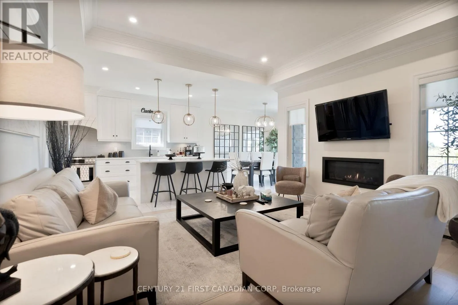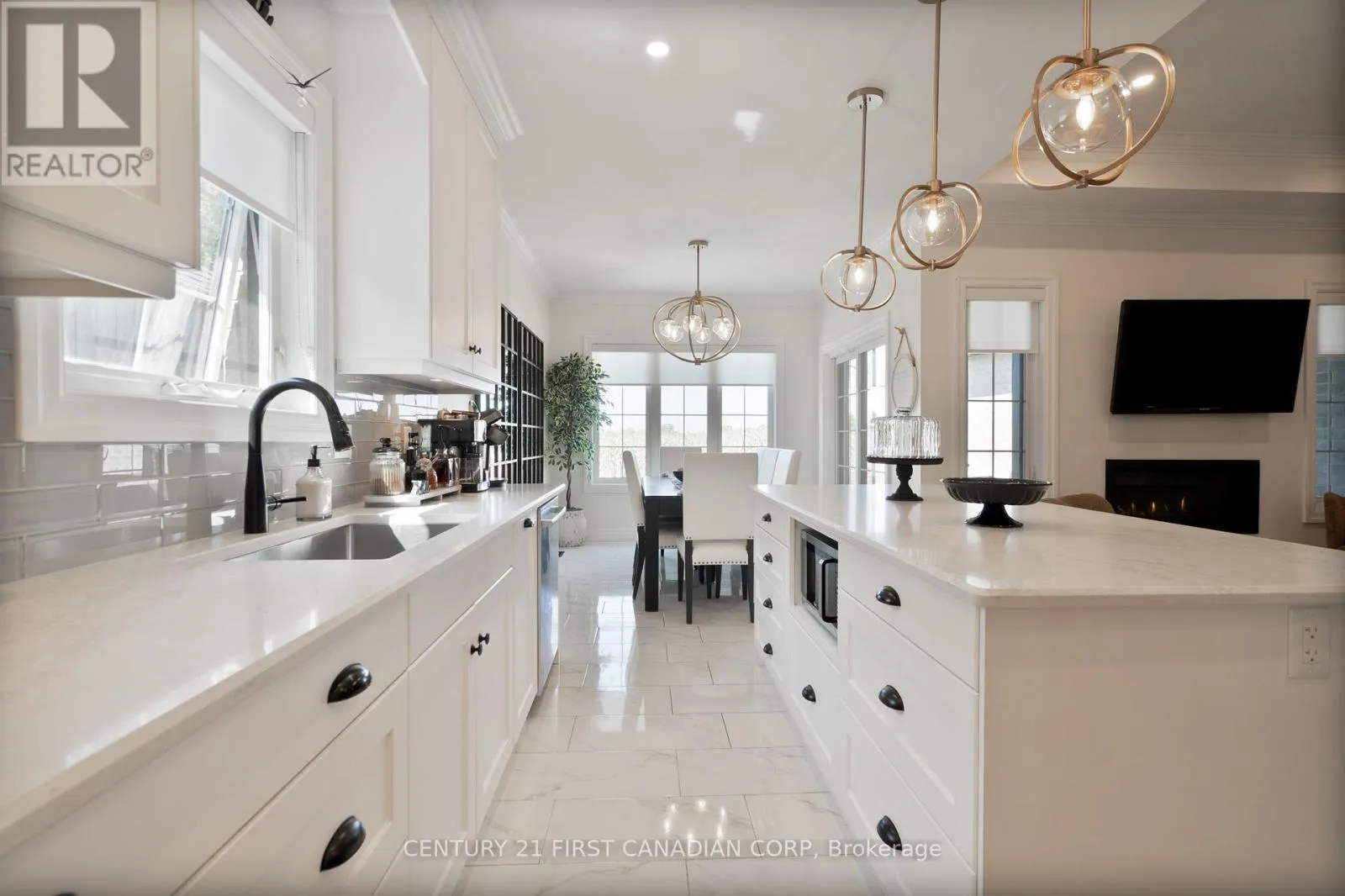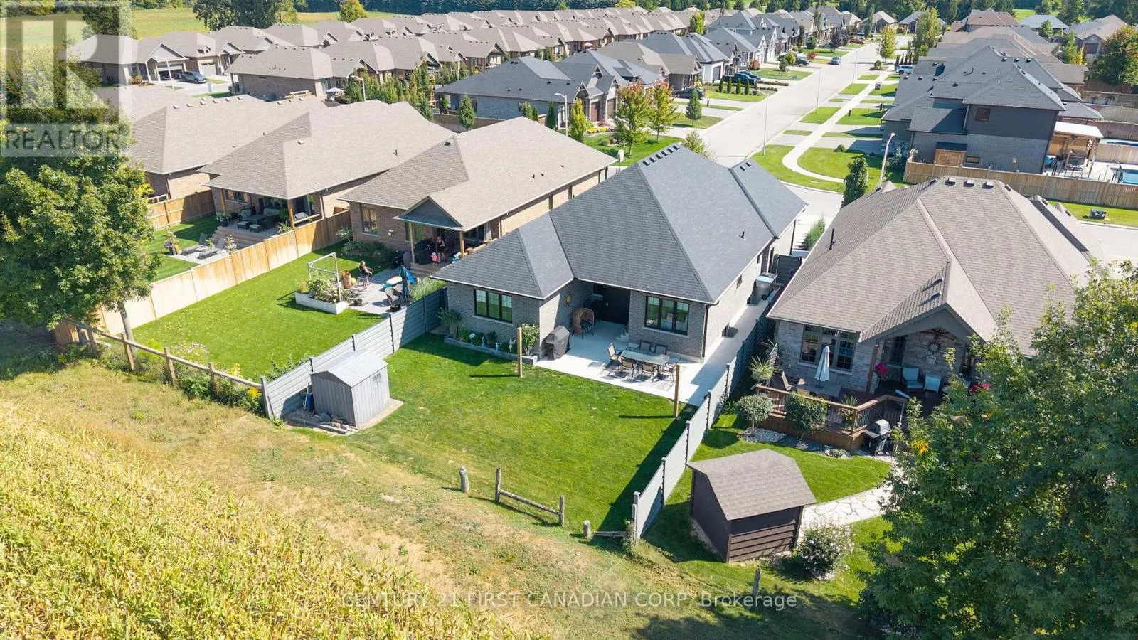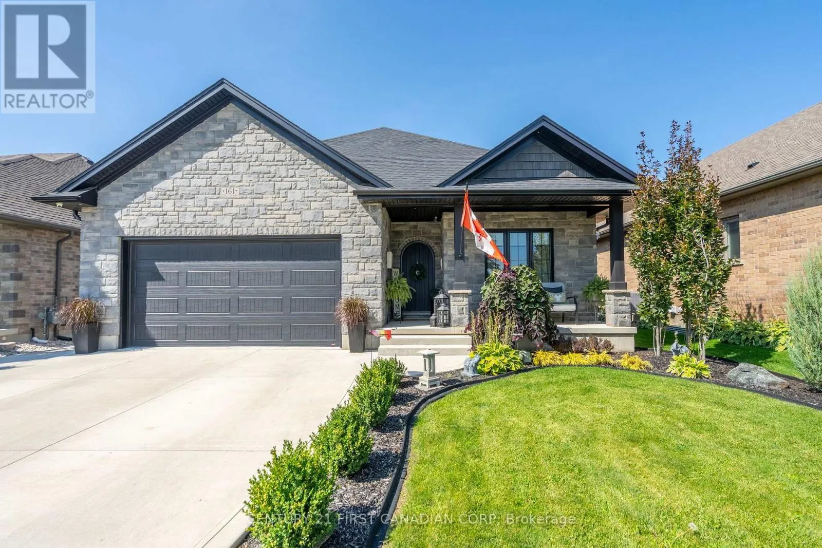 Cross Streets: ELLIOTT. ** Directions: COLLINS AND ELLIOTT. Wes Baker and Sons have built a stunning all-brick and Stone ranch home in Strathroy's prestigious area close to Caradoc Sands Golf Course, Walmart, LCBO, and easy access to 402 offering 5 bedrooms and 3 bathrooms. The finished lower level, fireplaces, and tray ceilings add to the homes elegance, granite countertops and hardwood floors provide a modern touch. The kitchen is well-equipped with top-notch appliances, including stove, refrigerator, dishwasher, washer, dryer. The rear yard is a private oasis, fully fenced with a composite deck. This home exudes pride of ownership and is ideal for empty nesters, families, or young professionals looking for a blend of comfort and sophistication. It truly is a must-see property! (id:27476)