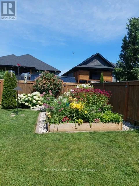 Cross Streets: Elliot St. ** Directions: Take Saxton road to Collins Way (next to Caradoc Sands Golf course). Nestled in the sought-after Southgrove Meadows community beside Caradoc Sands Golf Course, this stunning 2+2 bedroom bungalow with a double-car garage offers the perfect blend of luxury, comfort, and convenience. A charming covered front porch welcomes you into a bright, elegant interior featuring soaring ceilings and rich hardwood flooring throughout the main level.The open-concept layout showcases a beautiful living room with a tray ceiling, ambient lighting, and a cozy gas fireplace, flowing seamlessly into the dining area with patio doors leading to a fully fenced backyard.This outdoor oasis includes a ceiling fan, lighting, pull-down shades for added comfort, and a gas line ready for your BBQ or firepit. A stamped concrete walkway connects to the front and side garage entrance. The backyard is a gardener's dream-beautifully landscaped with perennials, shrubs, and trees-plus an 8' x 12' garden shed with loft storage for all your tools and equipment. The in-ground sand point and automatic sprinkler system keep the lawn and gardens lush all summer long. The gourmet kitchen is a chef's dream, featuring gorgeous granite countertops, abundant cupboard space, a dedicated coffee bar, a central island with breakfast bar seating, and premium high-end appliances. The adjacent laundry room provides generous storage and direct access to the double-car garage, equipped with two 220-volt plugs for electric vehicle charging. The fully finished lower level offers exceptional versatility, including a massive family room with a stunning fireplace, pre wired speakers for full surround sound, and a bar area as well as two additional spacious bedrooms, a third full bathroom with granite finishes -ideal as a potential in-law suite. Plus a large utility room, and abundant extra storage. Located just minutes from shopping, dining, schools, and Highway 402- 20 minutes to London and 30 minutes to Sarnia, it offers the best of small-town charm with big-city accessibility. (id:27476)