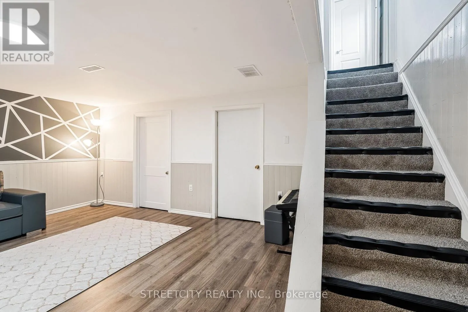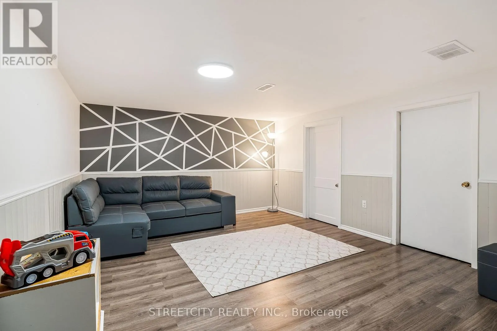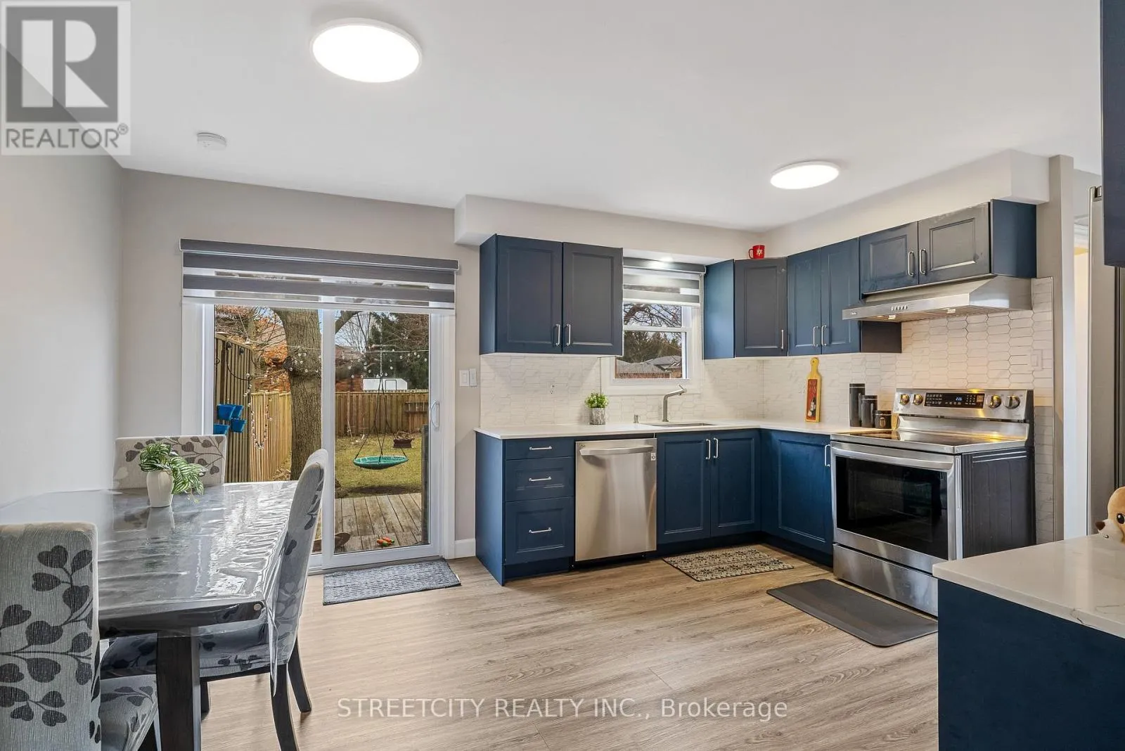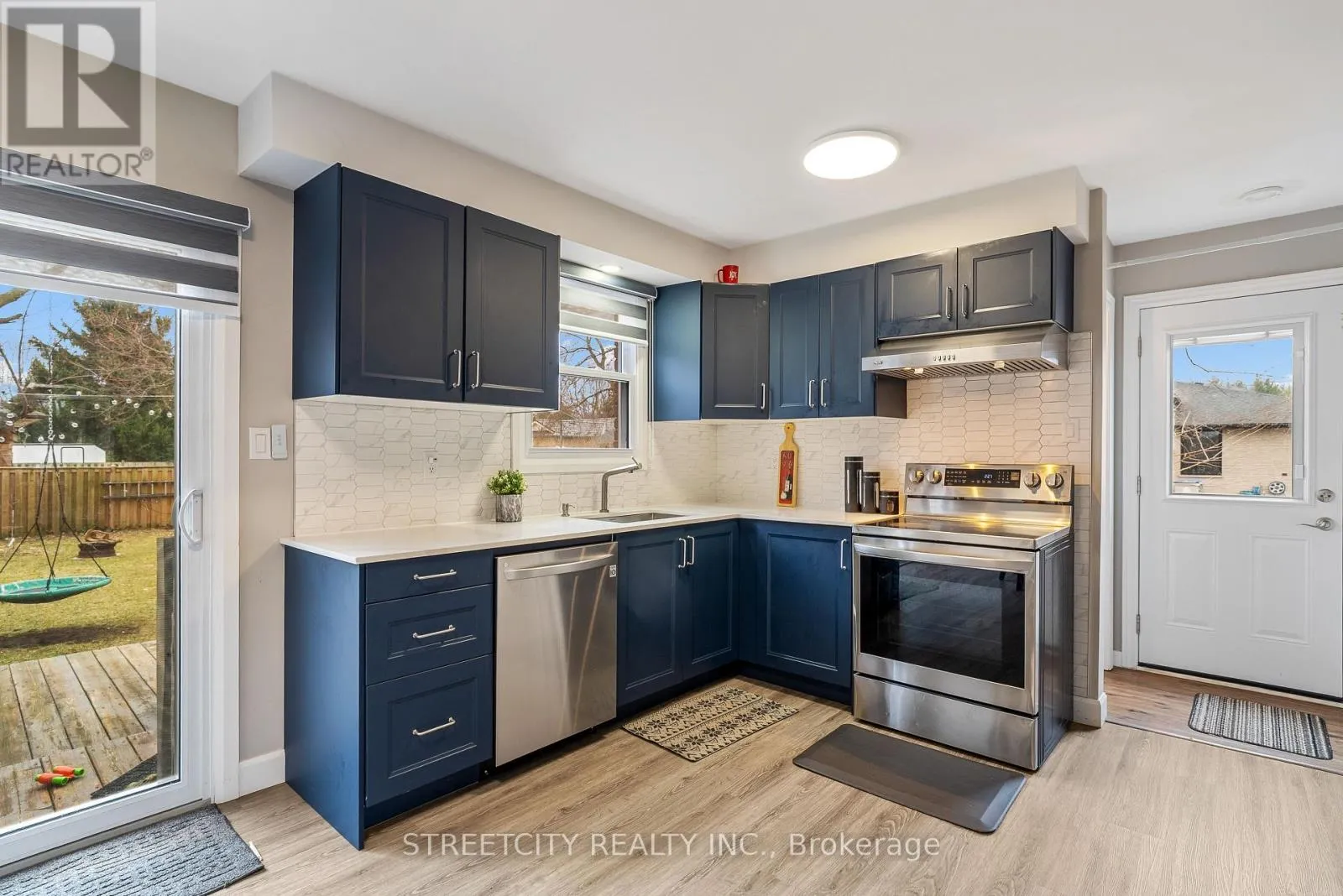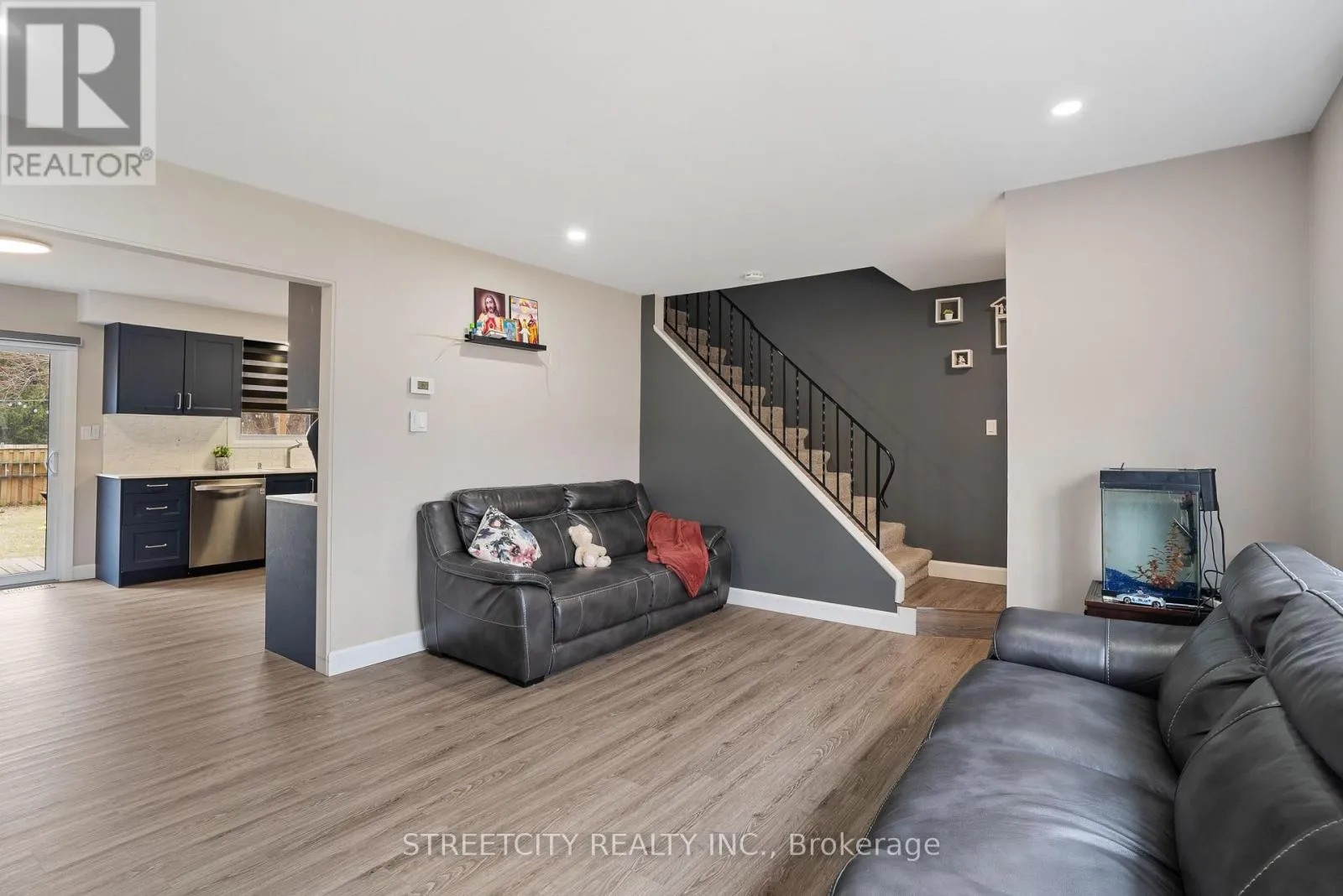 FROM CARROLL STREET, TAKE OAK AVE TO SPENCE DRIVE Welcome to this move-in ready 3-bedroom semi-detached home nestled in a quiet, family-friendly neighbourhood in Strathroy. Situated on a desirable corner lot, this home offers a fully fenced backyard-perfect for kids, pets, and entertaining. The main floor features a bright and inviting living room that flows seamlessly into the dining area, with walk-out access to the backyard. A cozy, updated kitchen and convenient 2-piece bath complete this level. Upstairs, you'll find three spacious bedrooms with newer flooring and a well-appointed 3-piece bathroom. The finished basement provides additional living space ideal for a family room, along with a office room ,ample storage and a dedicated laundry area. This home has been thoughtfully updated over the years. Major improvements include newer windows, patio door, and side entrance door (2021), furnace (2021), and appliances including stove, refrigerator, and dishwasher (2021). Both bathrooms were renovated in 2022, along with the addition of an owned water softener. The kitchen was beautifully updated in 2023, along with new flooring on the main floor and in the basement. A new washing machine was added in 2024. A fantastic opportunity to own a well-maintained, upgraded home in a desirable location. (id:27476)