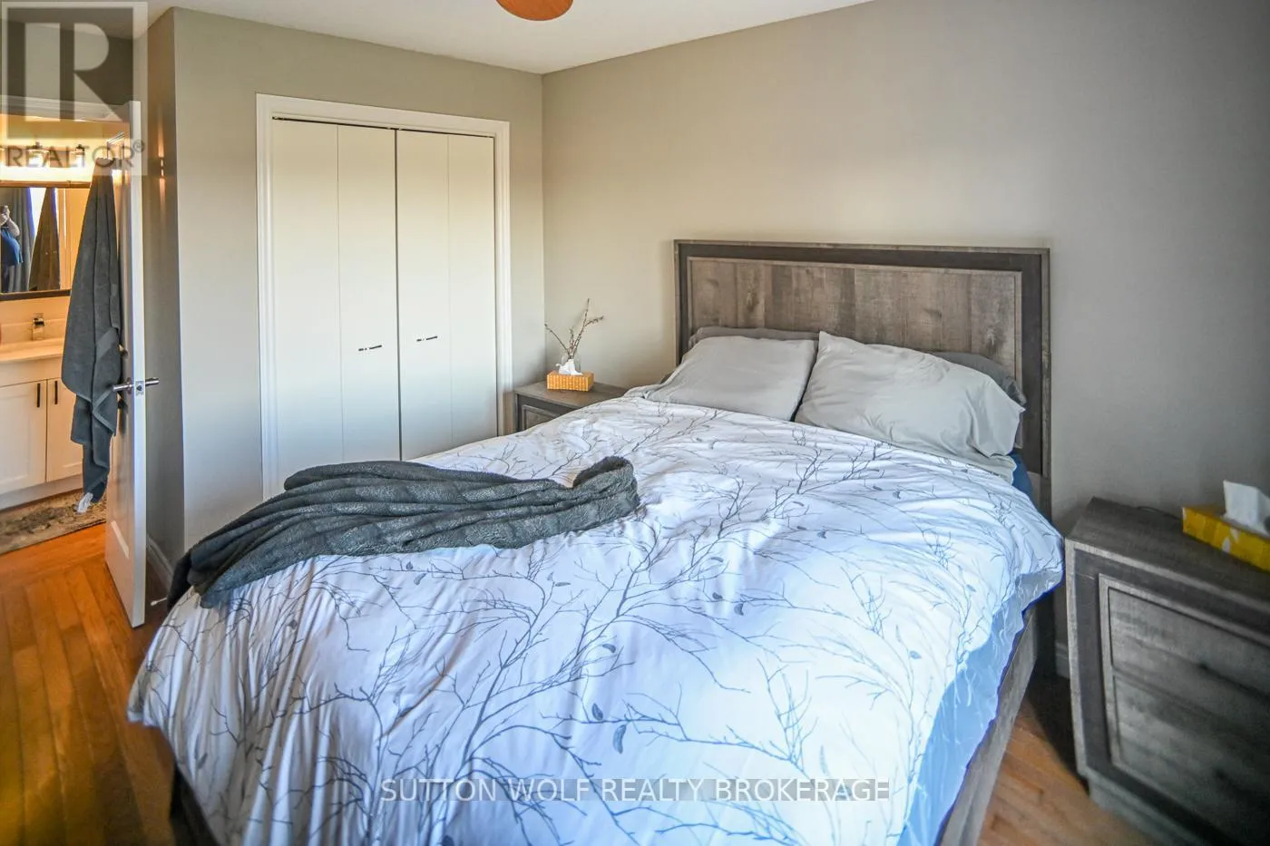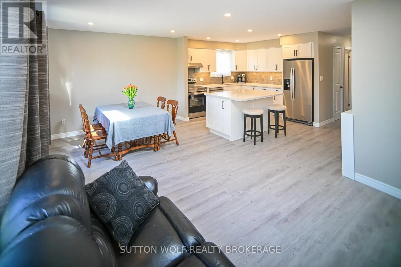 Cross Streets: Highway 81 & Parkhouse Dr. ** Directions: Turn off highway 81 onto Parkhouse Dr. heading East, and left onto Bentim Rd. This spacious 3-bedroom, 2-bathroom home on a desirable, quiet street in Mount Brydges features an updated and renovated interior, ready for your family to move right in! The bright, modern main floor includes a brand-new kitchen (2024) with quartz countertops, new appliances (included), and under-cabinet lighting. You'll also enjoy updated washrooms, new interior doors (upstairs and downstairs in 2024), new flooring and lighting throughout most of the house (2018-2024), and new windows throughout (2018-2024, less the bedrooms and upstairs bathroom). The sliding door in the primary bedroom has also been replaced! Additional highlights include a newly renovated downstairs bathroom with sewage ejector (2021), an owned gas water heater (2019), and an upstairs bathroom refreshed with a new tub, tile surround, and quartz countertop (2022). The lower level has been fully updated, providing comfortable finished living space for the whole family. Outside, the large lot features a huge, fully fenced backyard (new back fence and gate installed in 2022) with beautiful open countryside views. A new garden shed (2018) with electricity and receptacle offers great storage, and the property includes a gas-heated and insulated 1.5 car garage (2017) with a sub panel. The expanded poured concrete driveway (2016) easily accommodates up to 5 cars, or plenty of room for trailers, boats, or extra vehicles. Location perks make this home even more appealing: Optimist Park is just two houses down, while the local library and highly rated public school are all within easy walking distance. The property is only minutes from Highway 402, offering quick access to London or Strathroy. Ideal for families seeking modern finishes, bright interiors, ample outdoor space, and convenient commuter access in a wonderful neighbourhood. Welcome to Mount Brydges!" (id:27476)