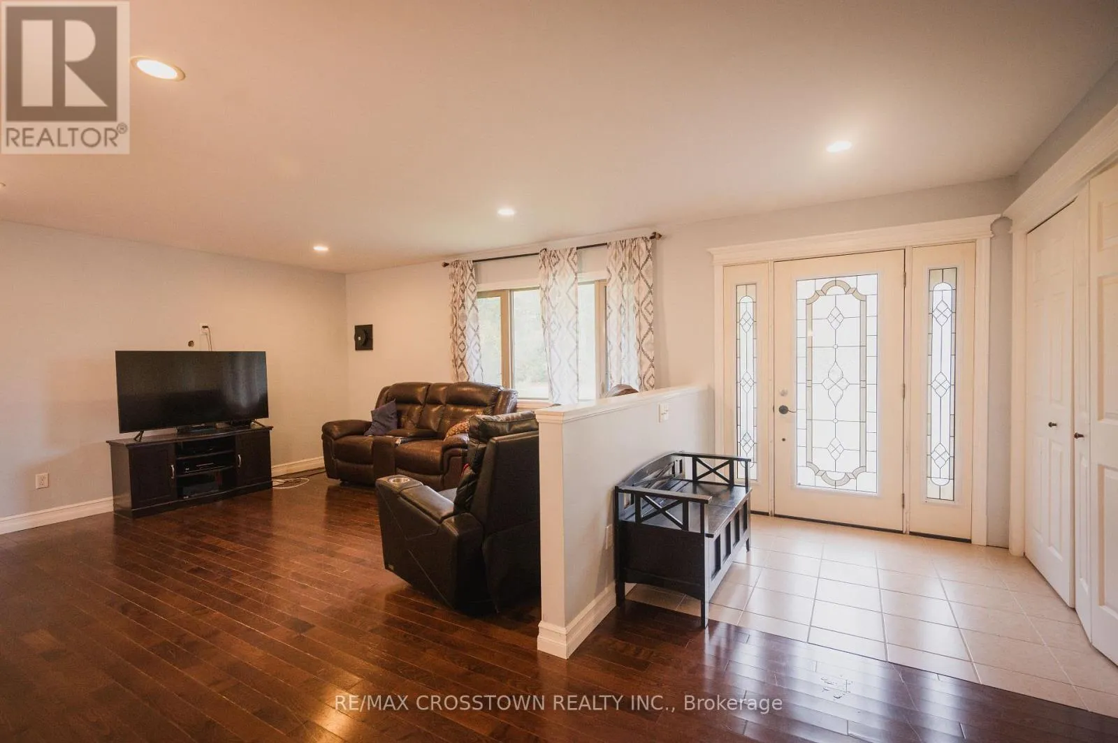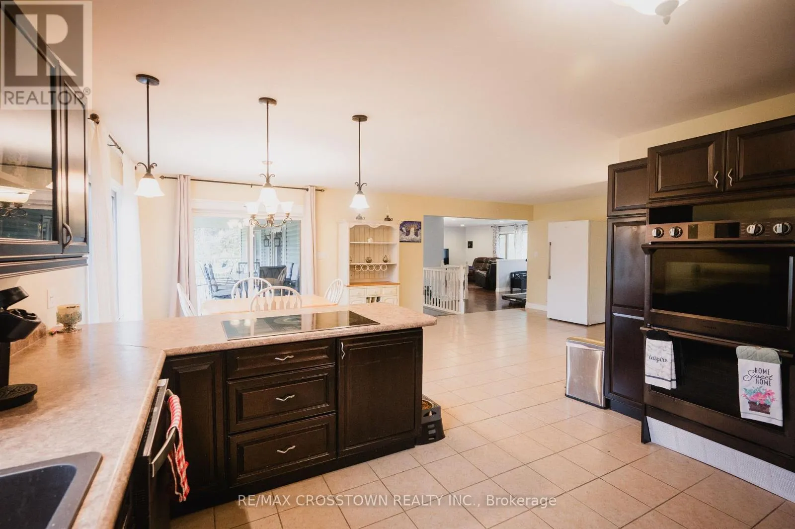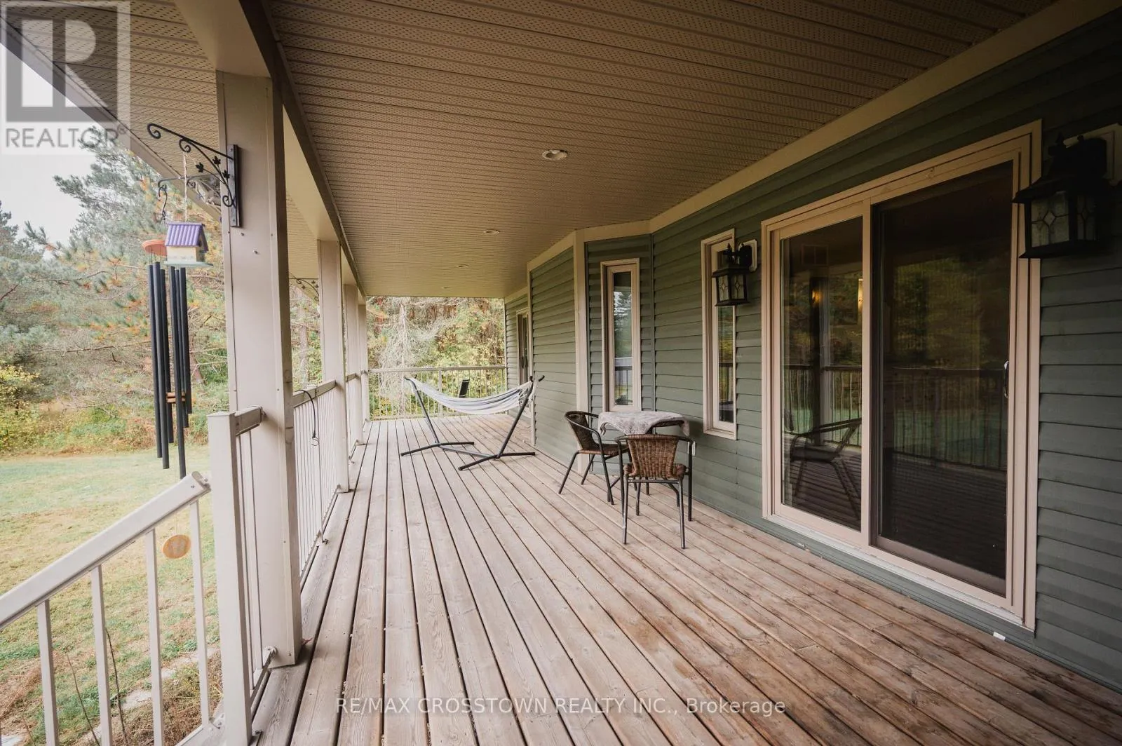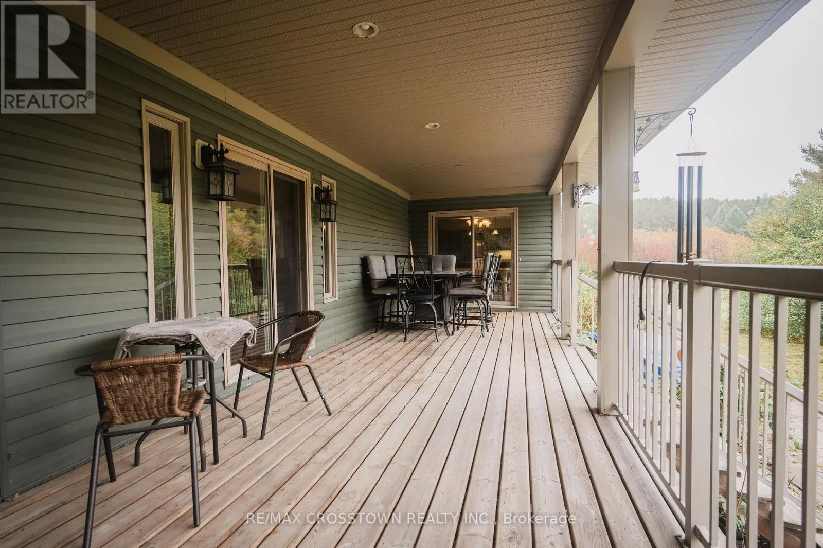 Cross Streets: Hwy 124 & Machar/Strong Boundry Rd. ** Directions: Hwy 124 to Machar Strong Boundry Rd. Welcome to this spacious and inviting home where comfort meets functionality! Upon entering, you'll immediately notice the sense of space, which is suitable for wheelchair accessibility. The open-concept design connects the kitchen, dining, and living areas, creating a bright and welcoming flow. Just off the kitchen, you'll find the convenience of main floor laundry, a handy 2-piece bath, and direct access to the garage. Step outside to enjoy the 45' x 10' deck with three separate walkouts, perfectly positioned to overlook the private, backyard, an ideal spot for relaxing or entertaining. The lower level is equally impressive, featuring a home theatre, a den, a 4-piece bathroom, and a spacious office with French doors (currently used as a bedroom). Storage needs are also covered with a dedicated pantry the bottom of the stairs. This home currently has a lift for accessibility in the garage (it will be excluded) and has had improvements, including: a complete foundation perimeter sealed with blue skin, central air conditioning, forced-air gas furnace with humidifier and air filter, programmable thermostat, iron water filter (2019). The central Vac system is in "as is" condition. Wood stove in garage is not WETT certified and never used by current Owner. Motivated Seller (id:27476)