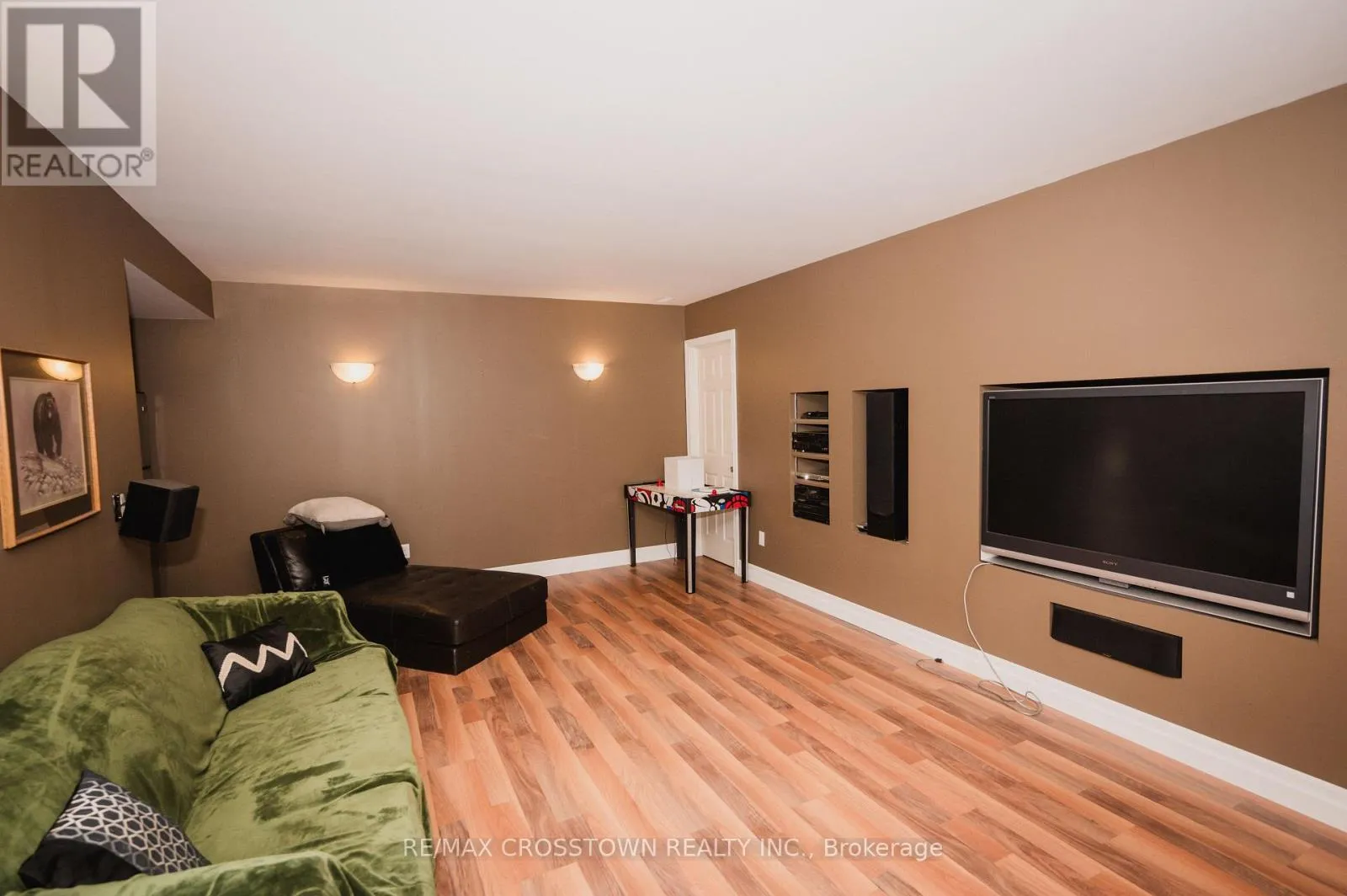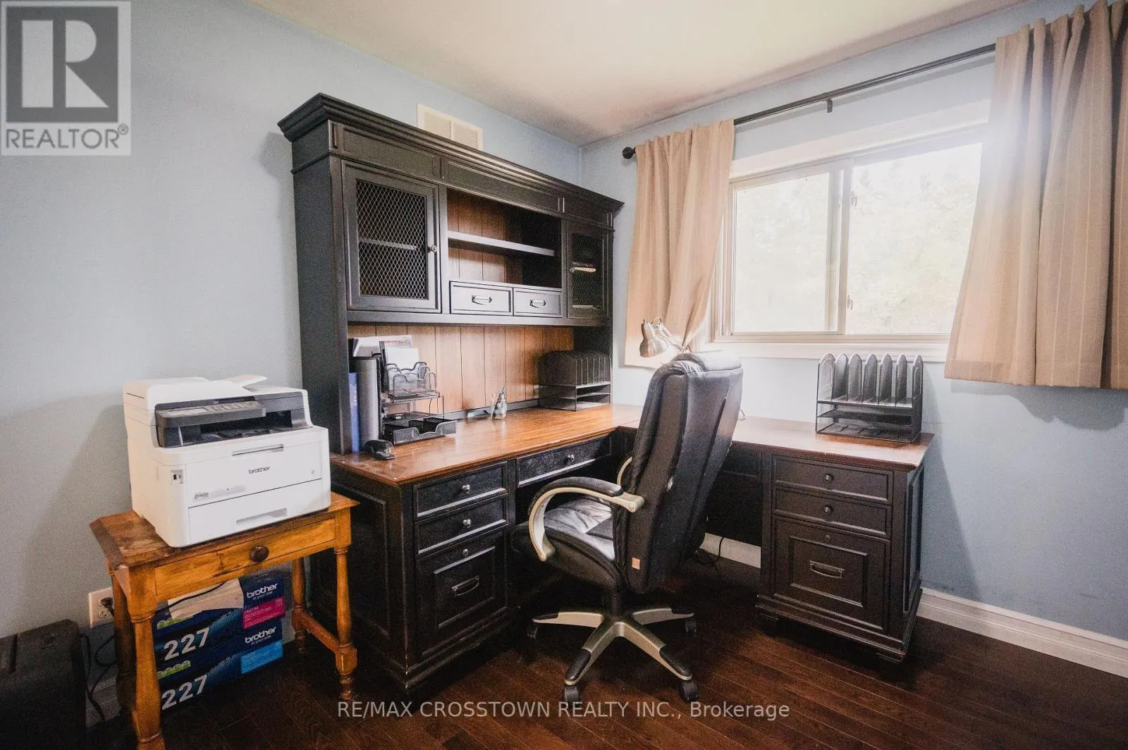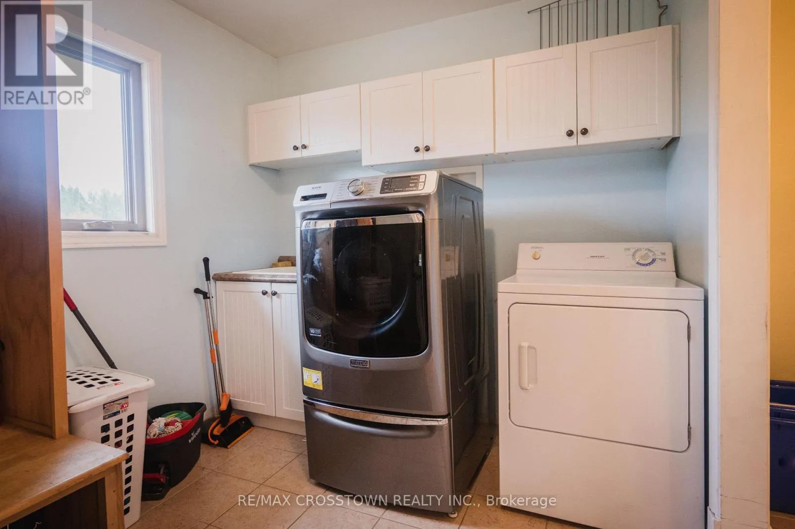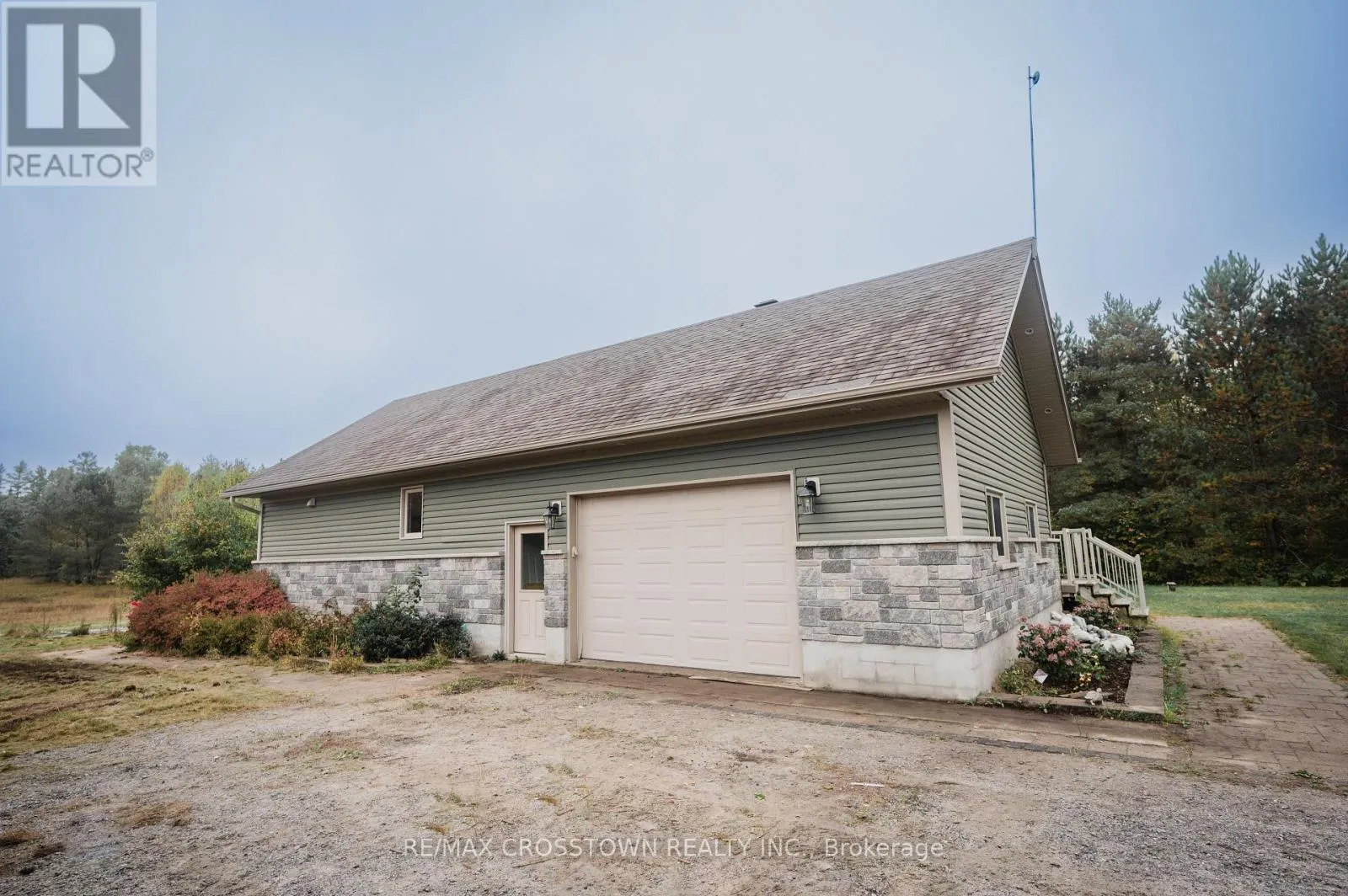 Cross Streets: Hwy 124 & Machar/Strong Boundry Rd. ** Directions: Hwy 124 to Machar Strong Boundry Rd. Welcome to this spacious and inviting home where comfort meets functionality! Upon entering, you'll immediately notice the sense of space, which is suitable for wheelchair accessibility. The open-concept design connects the kitchen, dining, and living areas, creating a bright and welcoming flow. Just off the kitchen, you'll find the convenience of main floor laundry, a handy 2-piece bath, and direct access to the garage. Step outside to enjoy the 45' x 10' deck with three separate walkouts, perfectly positioned to overlook the private, backyard, an ideal spot for relaxing or entertaining. The lower level is equally impressive, featuring a home theatre, a den, a 4-piece bathroom, and a spacious office with French doors (currently used as a bedroom). Storage needs are also covered with a dedicated pantry the bottom of the stairs. This home currently has a lift for accessibility in the garage (it will be excluded) and has had improvements, including: a complete foundation perimeter sealed with blue skin, central air conditioning, forced-air gas furnace with humidifier and air filter, programmable thermostat, iron water filter (2019). The central Vac system is in "as is" condition. Wood stove in garage is not WETT certified and never used by current Owner. Motivated Seller (id:27476)