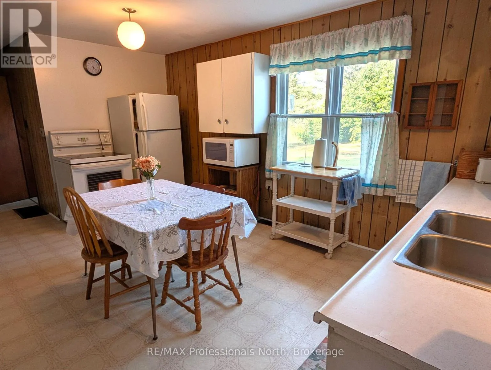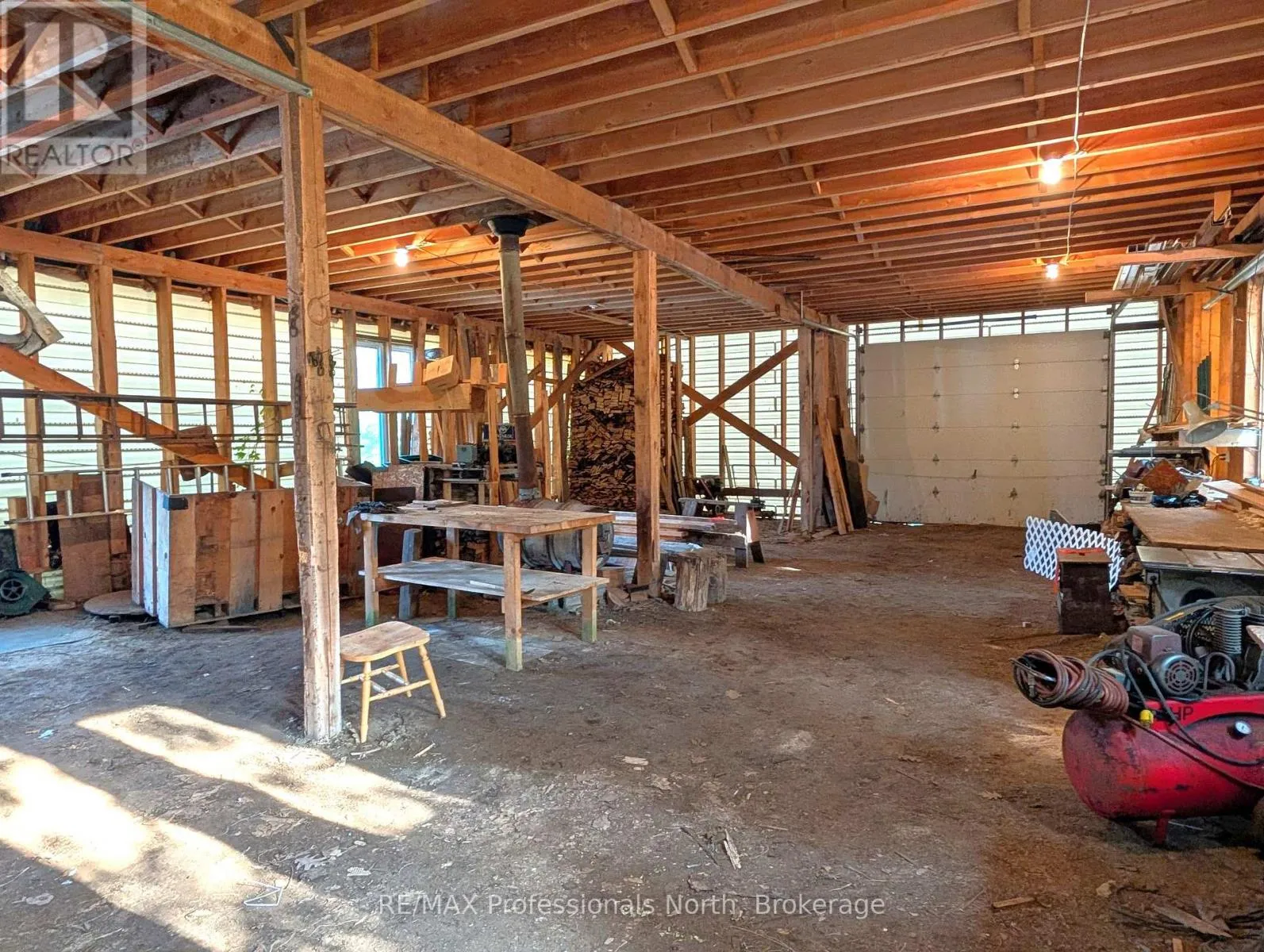 Cross Streets: Hwy 124 & Albert St N. ** Directions: Hwy 124 to Albert St N. Excellent opportunity to own this 3 bedroom home with attached garage/workshop, located on an oversize lot at the edge of town, with a huge shop. This solid home offers 3 bedrooms, 1 bath, main floor living with eat-in kitchen and living area leading to a spacious sun porch for those relaxing evenings. The basement features a potential 4th bedroom, office, or den, a cold cellar, and plenty of space for storage. F/A natural gas furnace (2019), breaker panel, septic, and dug well. The oversized "L" shaped property has 120 ft road frontage, and is over 300 ft deep, with a 32' x 50' workshop/heavy equipment storage building with 2nd floor which includes 2 bedrooms for extra guests. There are a number of outbuildings including a detached 12' x 20' garage, and wood shed. Excellent potential here with plenty of possibilities! Property is an Estate Sale, being sold "as is" with no representation or warranty from the Seller. (id:27476)