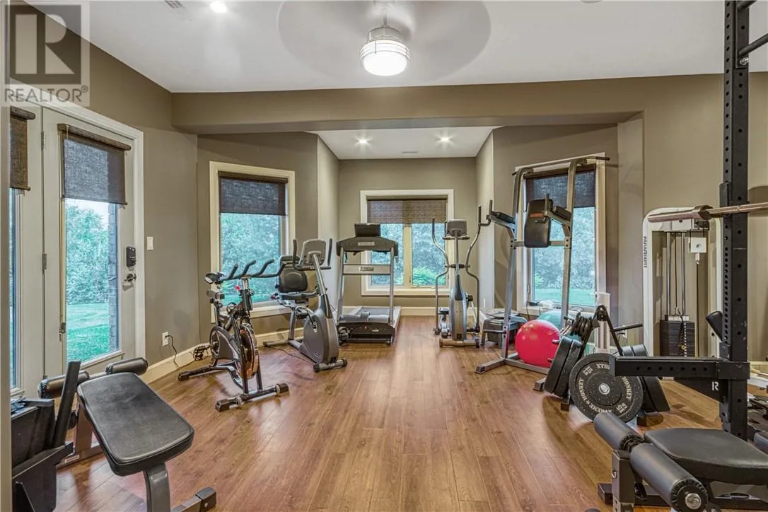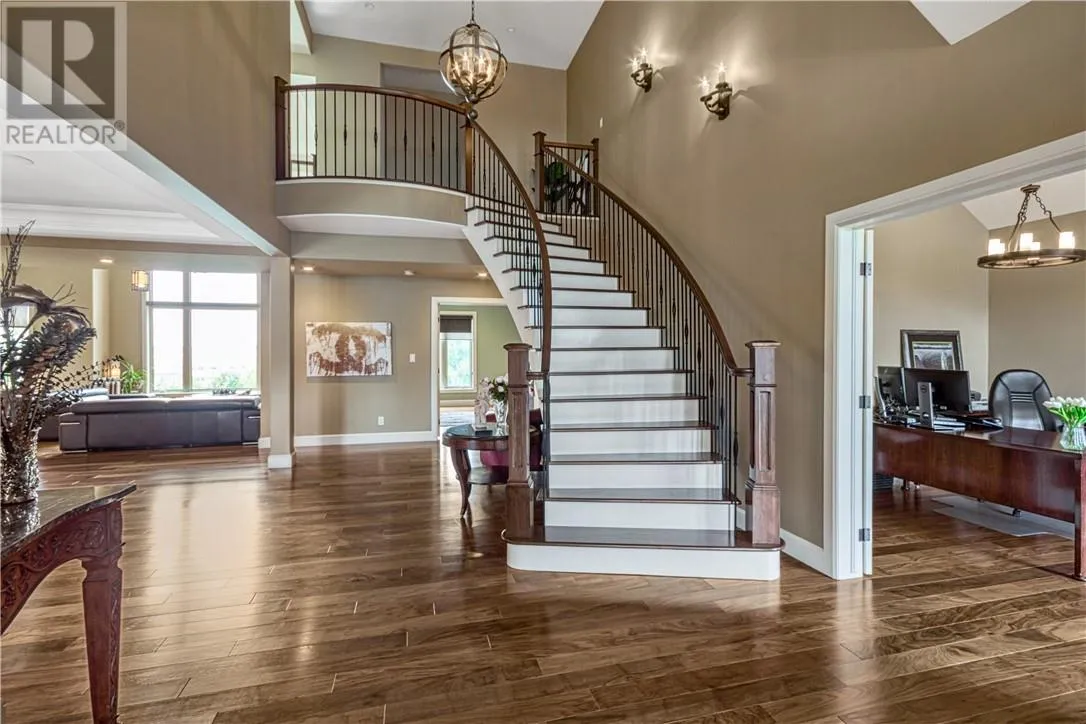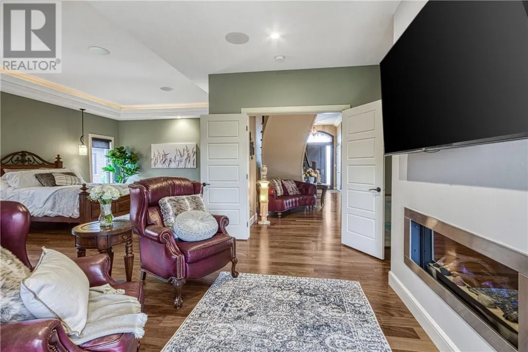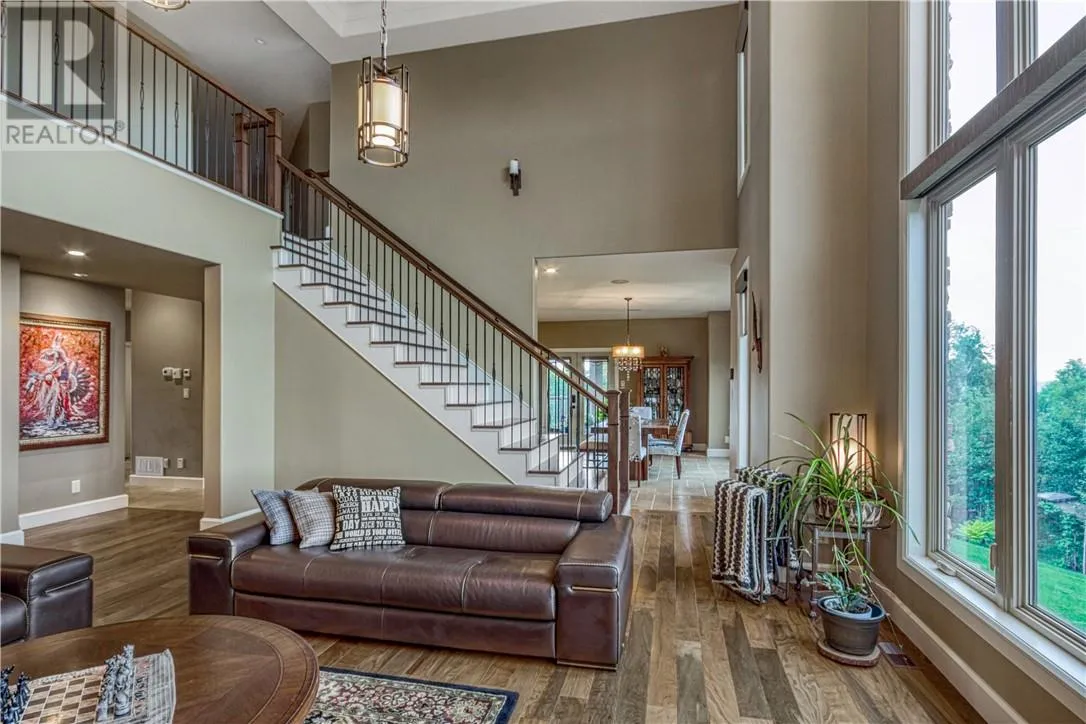 Welcome to one of Sudbury's most spectacular family-oriented homes. This custom marvel, built by Clemchar, sits on a double-wide lot spanning nearly 3 acres, featuring over 10,000 square feet of total living space with zone-controlled in-floor heating. The first thing you'll notice upon entering is the meticulously laid engineered hardwood floors, accompanied by a grand staircase and large windows, complemented perfectly by modern lighting and a gas fireplace. The primary suite features an oversized walk-in closet, a gas fireplace, and a spa-like ensuite, offering true relaxation. The bright family room, with 18-foot ceilings and custom crown molding, flows beautifully past a second staircase into every chef's dream kitchen. Off the kitchen, you'll find a main-floor laundry room and a walkout to the covered deck overlooking your park-like backyard. The upper level features three additional bedrooms, each with its own walk-in closet, as well as an additional laundry room and two full baths. The loft above the garage, currently used as a games room, can easily be converted into an additional bedroom for a growing family. The lower level boasts a fully equipped gym, a massive sauna, and a bathroom/steam room, serving as the ultimate space for entertaining. Enjoy the open-concept kitchen, featuring a mix of leather-finished granite and reclaimed oak countertops, or cozy up by the wood-burning fireplace in the family room. You can't miss the stunning powder room or the billiard table on the way to one of three lower-level walkouts! The Control4 home automation system offers your family comfort and safety, with the luxury of controlling your home's entertainment system, blinds, security cameras, and locks from anywhere in the world. Built for the North, this home also features an immaculate four-car garage, plus an additional two-car garage at the back with its own workshop and in-floor heatingânot to mention a dedicated laundry/tack room for horse lovers. (id:27476)