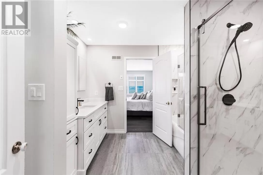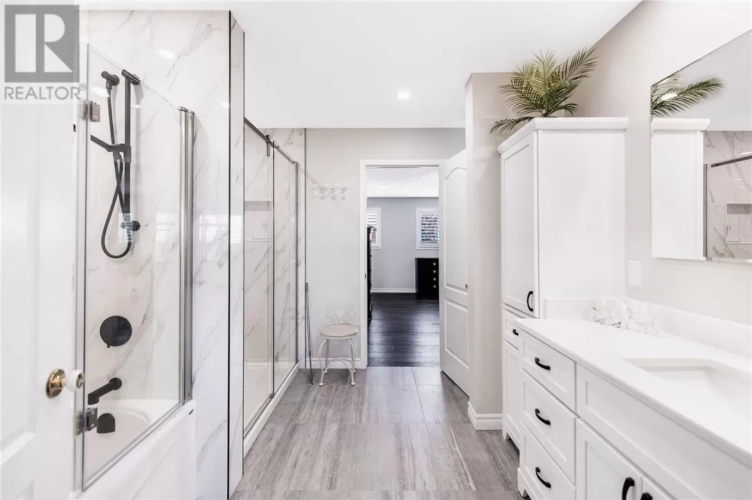 Welcome to 147 Forestdaleâa stunning all-brick home offering almost 5000 square feet of beautifully maintained living space. Enjoy the comfort of in-floor heating on all three levels, zoned for optimal efficiency, with A/C units for both upstairs and down. The custom kitchen by La Cuisine (2023) is absolutely breathtaking and features only the highest end appliances, including, dacor, thermador and Bosch. The former dining room has been transformed into a stylish butlerâs pantry with second dishwaher, fridge and built in coffee/espresso machine. Off the kitchen and butler pantry you have patio door leading out the most beautiful and private west facing views. The main level also features a generous dining room area, pantry, powder room and access to your 2 car garage. The Hardwood cherry stairs, engineered flooring, and California shutters add warmth and elegance throughout. The spacious primary suite includes dual walk-in closets and a spa like en-suite with both a soaker tub and walk-in shower. The upper level has a total of four massive bedrooms and 2 full bathrooms. The lower level featuring a massive rec room with anther bathroom a bar, sauna, and walkout to a private patio and built in fire pit. This home is perfect for entertaining and family gatherings. The decks are composite, and the roof and most of the windows have been updated. This is truly one of New Sudburyâs most exquisite homes with an amazing layout, tons of storage and only the finest finishes. (id:27476)