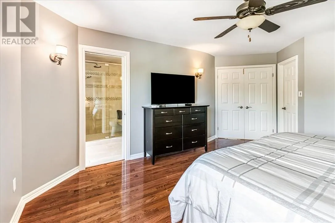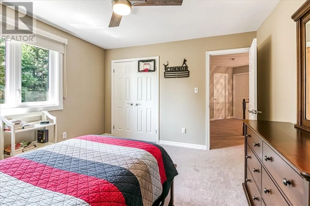 Great FAMILY HOME in desirable Moonglo Subdivision. This 4+1 BEDROOM 3.5 BATHROOM, all BRICK 2 storey home features over 3000 sq. ft. of living area. OPEN CONCEPT chefâs kitchen provides plenty of space for MEAL PREP. CUSTOMIZED KITCHEN cabinetry with large centre island accented with backsplash & GRANITE countertops. Built in BAR fridge & Updated appliances (Dishwasher 2025 & Fridge 2022). The separate KITCHEN NOOK allows for quick morning meals. The DINING ROOM is perfect for family get togethers with ground level walk out to the PRIVATE BACKYARD. Lots of storage in the 10â x 20â SHED with hydro! Irrigation system helps with the lawn maintenance. The oversized MAIN FLOOR family room is located off the kitchen and boasts a beautiful, custom built entertainment unit. Top end LIGHT FIXTURES and CUSTOM BLINDS throughout. RENOVATIONS thoughtfully planned to make living in a busy household easier. Windows & doors (2022) Furnace (2019) & AC (2020). The MUDROOM with custom cabinetry offers storage and easy access to the double car garage (with GAS HEATER). Updated 2PC POWDER ROOM. Large interlock driveway redone in 2021. The second floor features the PRIMARY bedroom with WALKIN closet and a SPA like, extra large ENSUITE with heated floor, plus THREE spacious sized bedrooms (one also features custom BUILT INS) and updated 4PC bathroom. The finished LOWER LEVEL rec room includes a HOME THEATRE screen & Projector - for those FAMILY movie nights. There is a FIFTH bedroom PLUS additional storage and laundry room. After a hectic day, enjoy & RELAX in the electric cedar SAUNA . TWO storey home finished in BRIGHT colours is located close to many amenities and walking trails. Ready for you to move right in. (id:27476)