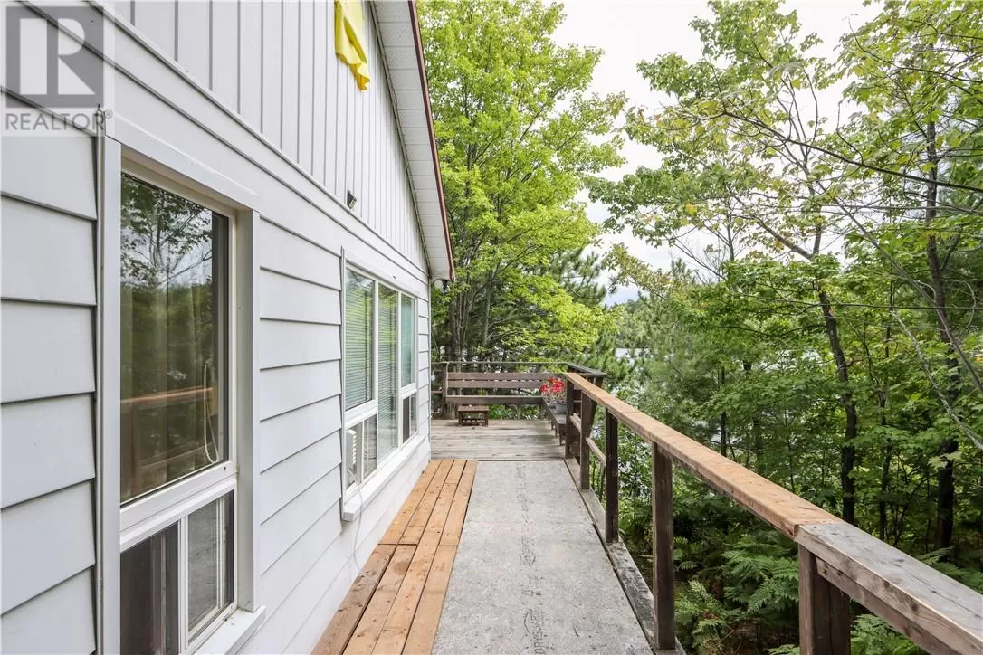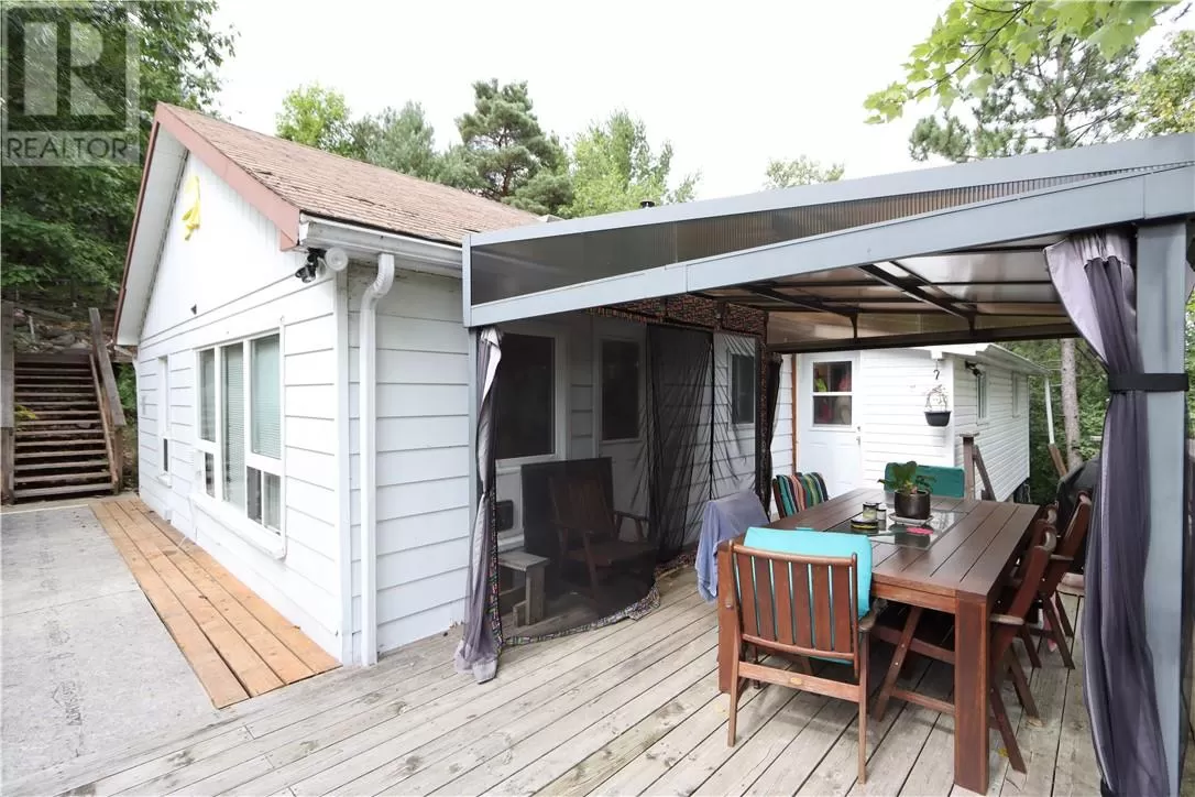 Ramsey Lake waterfront opportunity. Tucked away on 1.42 acres at the quiet end of South Bay Road, this property offers a rare chance to own true waterfront on Sudburyâs most sought-after lake. With 90 feet of shoreline and sweeping views of Ramsey, itâs the kind of spot that rarely becomes available. The existing winterized home is just under 1,000 square feet, with three bedrooms, a bright dining space, a galley kitchen, and a full bath featuring a claw-foot tub. A wood stove adds warmth and character, while large windows bring in the light and frame the treed surroundings. Outside, a generous deck overlooks the water, and concrete steps lead you down to the dockâyour gateway to boating, swimming, and summer evenings by the shore. Set well back from the road and surrounded by mature trees, the property offers exceptional privacy along with an older garage and winding drive. Whether you enjoy it as a charming year-round retreat or clear the way for a custom build, the potential here is undeniable. (id:27476)