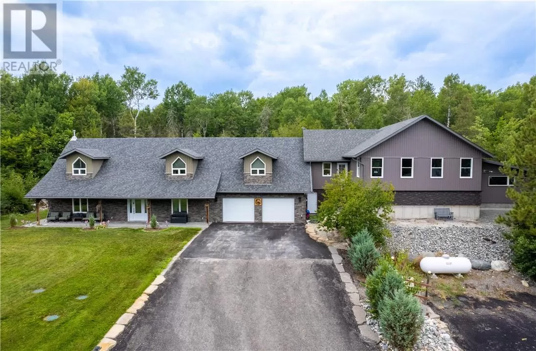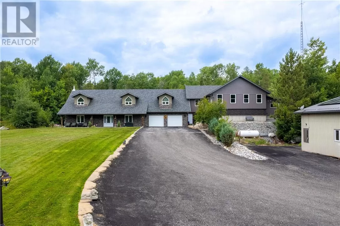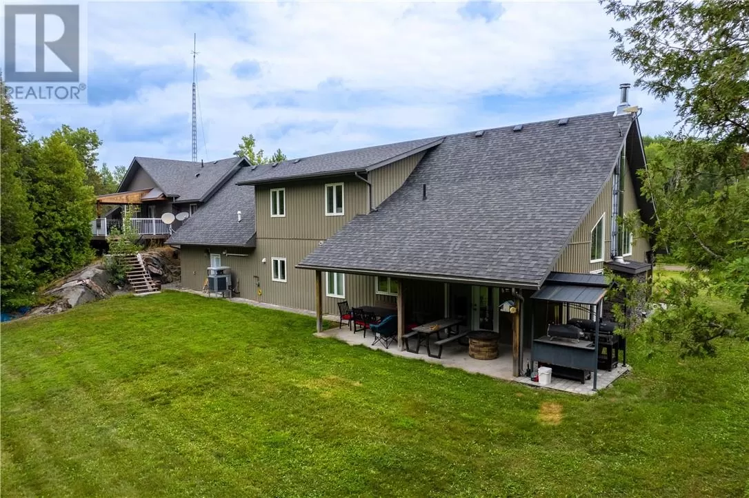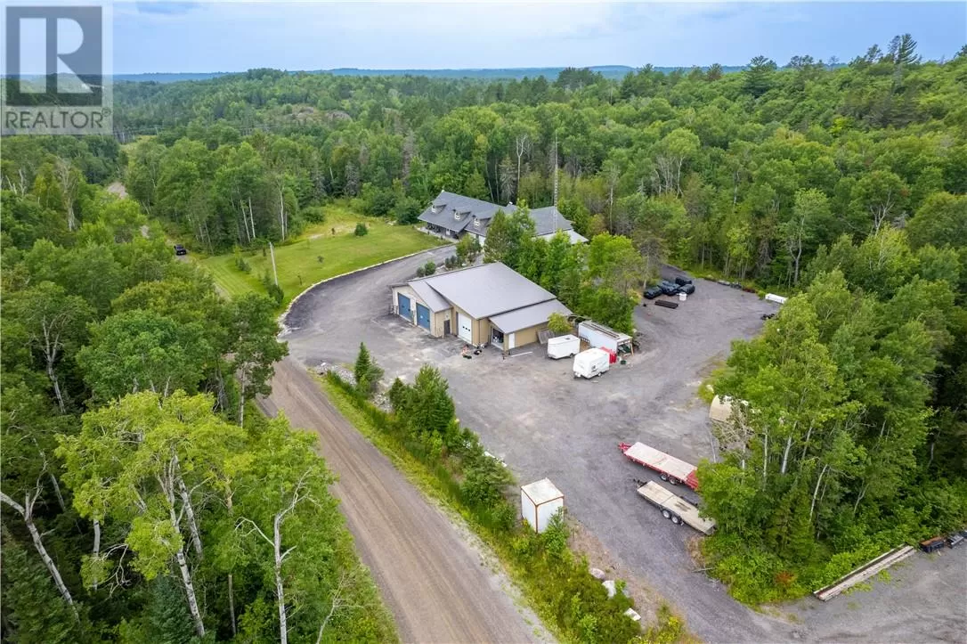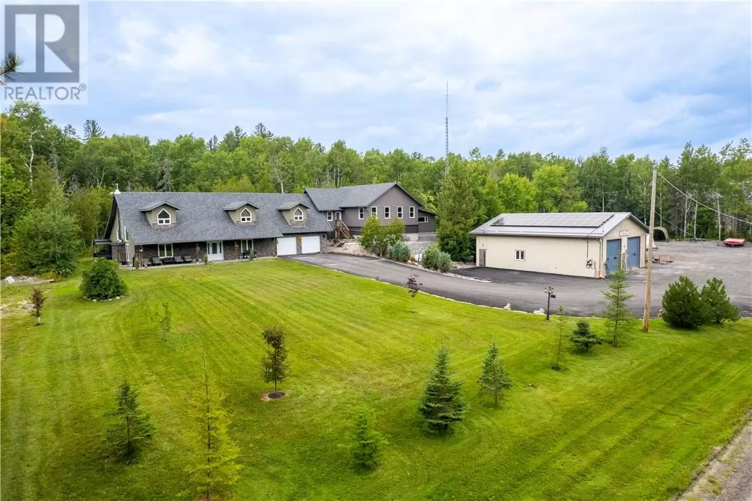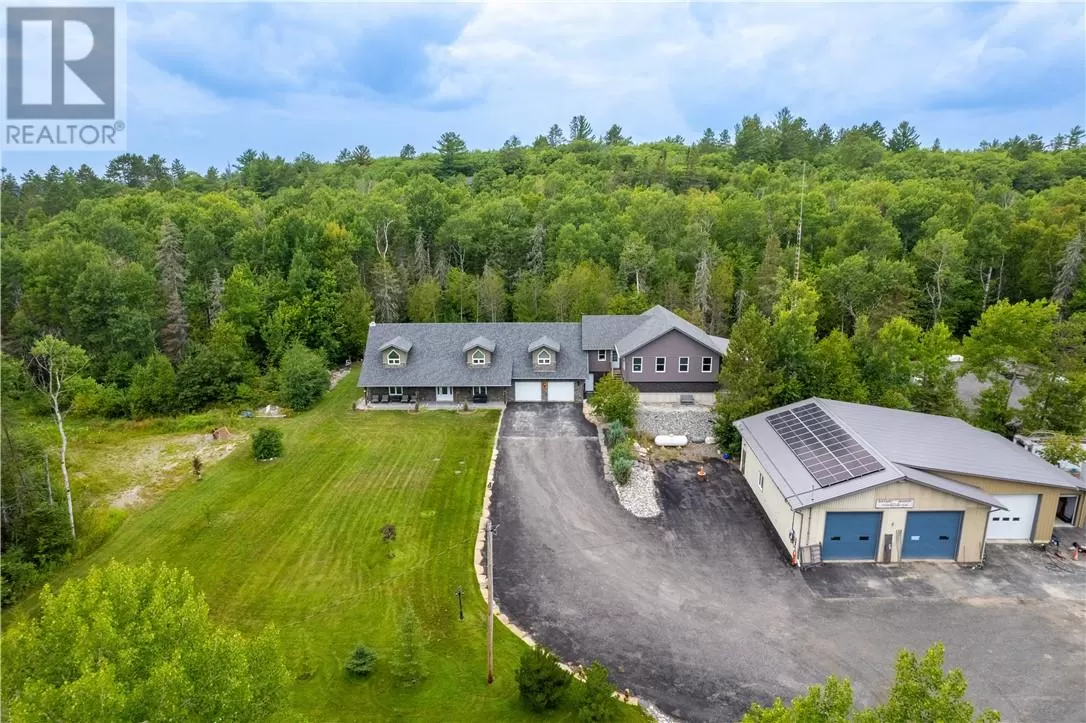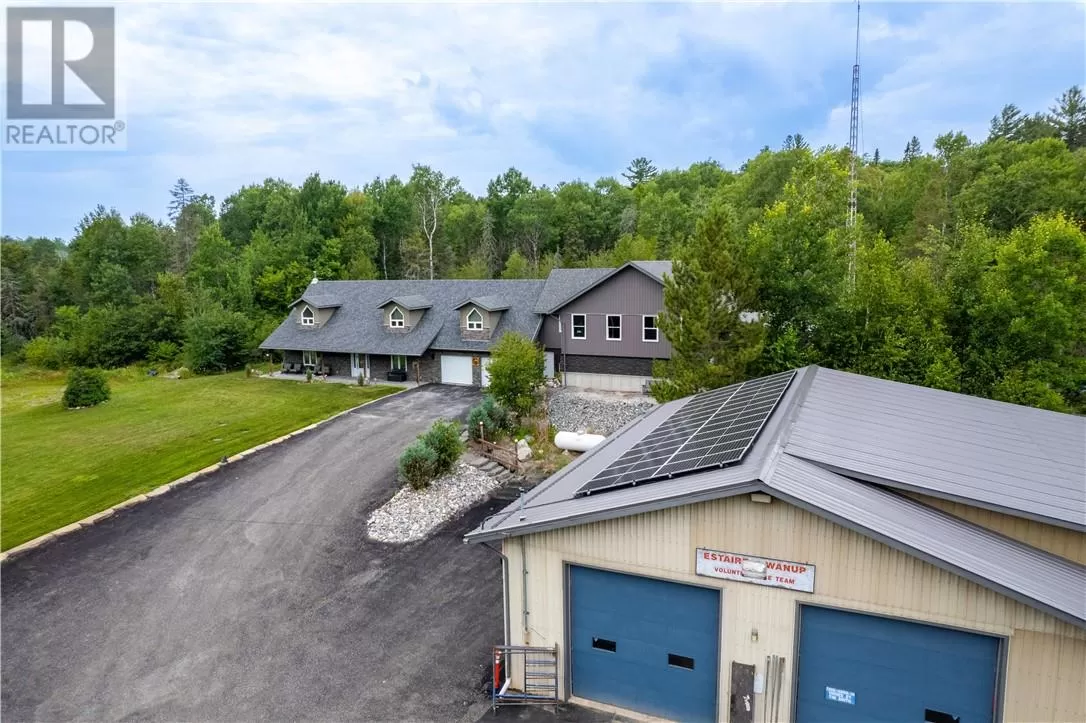 Welcome to a truly one-of-a-kind property with endless possibilities for families, contractors, or anyone seeking a home with character and versatility. Once the site of the Estaire Fire Hall, this residence has been transformed into a spacious 4-bedroom, 4-bathroom home with over 3,400 sq. ft. of living space, including a self-contained one-bedroom apartment. Inside, youâll be greeted by soaring 17-ft cathedral ceilings and a central wood-burning fireplace. The main level offers a bedroom, full bath with steam shower, and attached 2-car garage. Upstairs, the showpiece is the in-ground indoor poolâperfect for year-round swims, entertaining, or relaxing. The pool room has its own bath, includes the hot tub and has access to a covered porch. This level also includes a second kitchen, a large office space, a full bath with soaker tub, and a rec room easily converted into another bedroomâideal for multi-generational living, extended family, or rental income. Trades people, hobbyists, or small business owners will love the incredible garage/workshop setup: three garages totaling over 3,200 sq. ft. for vehicles, equipment, storage, or even running a business. All set on a generous 2.07-acre lot with ample outdoor parking and space to expand. The property also features multiple heating optionsâpropane, wood, heat pump, hot waterâplus solar panels to help offset hydro costs. Located in an unorganized township, youâll enjoy low taxes and fewer restrictions. More than just a home, this is a lifestyleâblending history, practicality, and opportunity. Donât miss your chance to own something truly special. (id:27476)