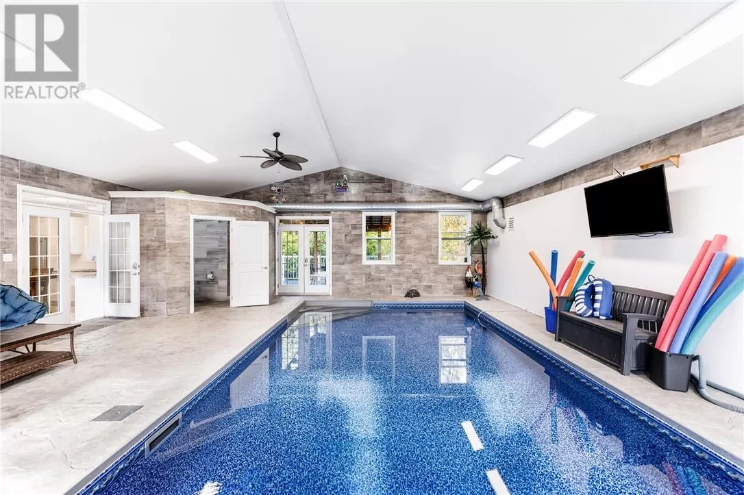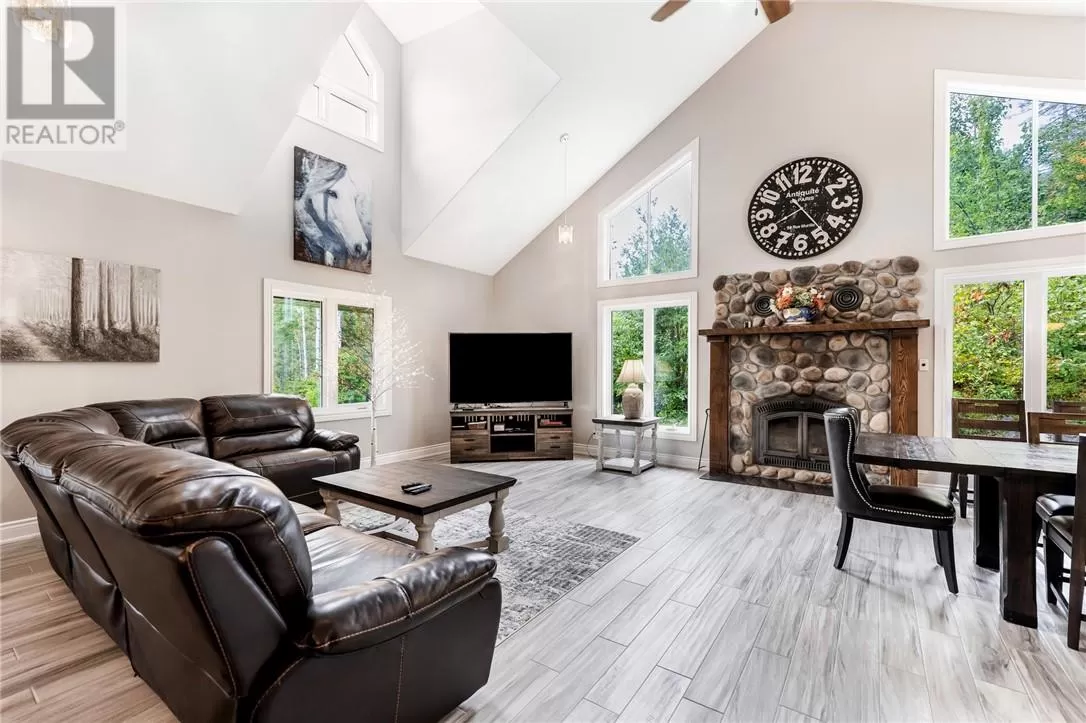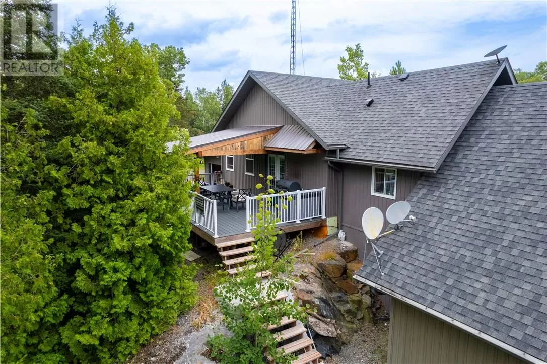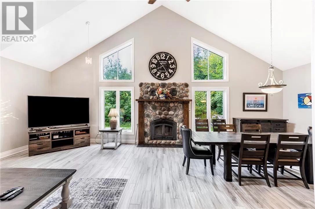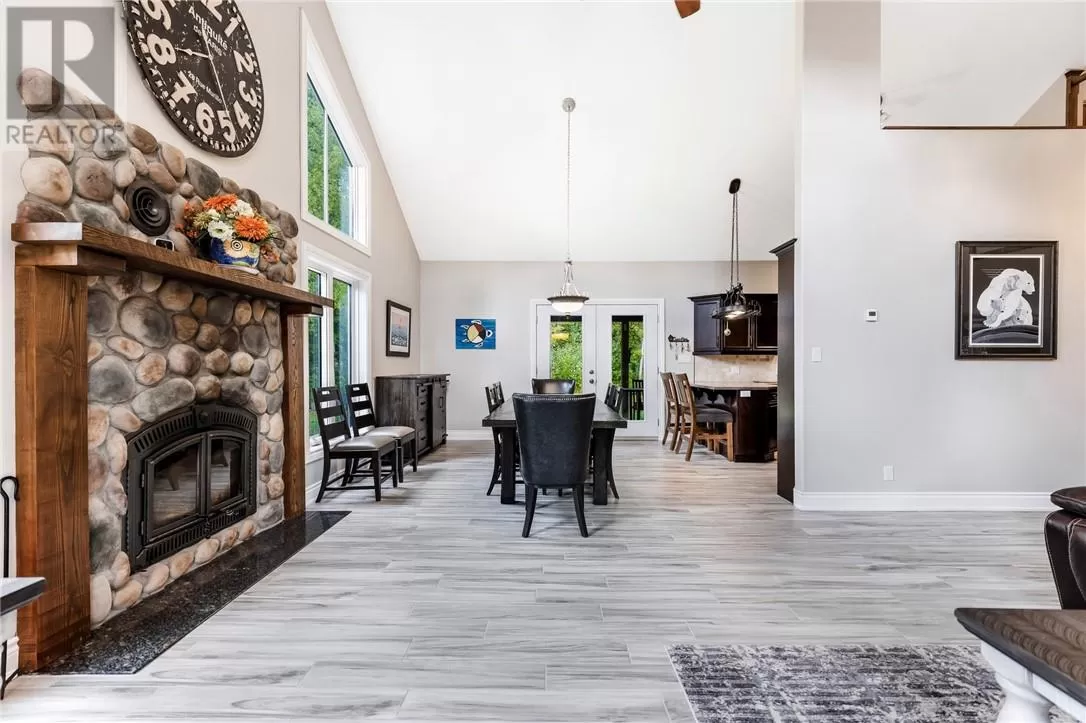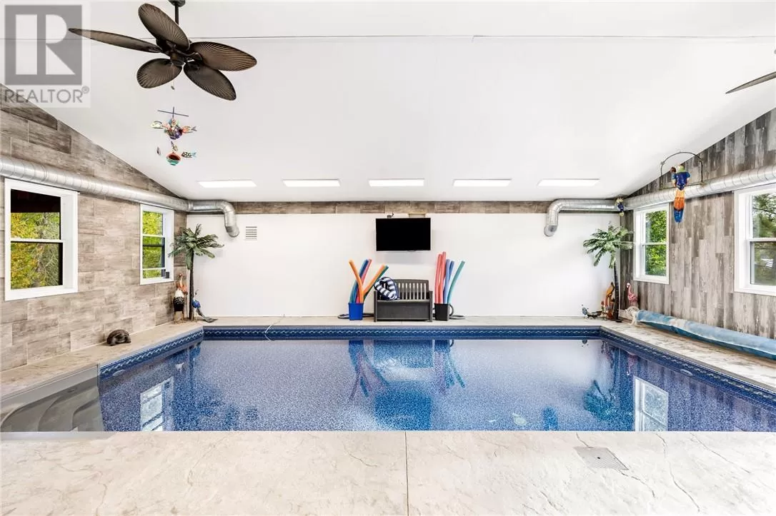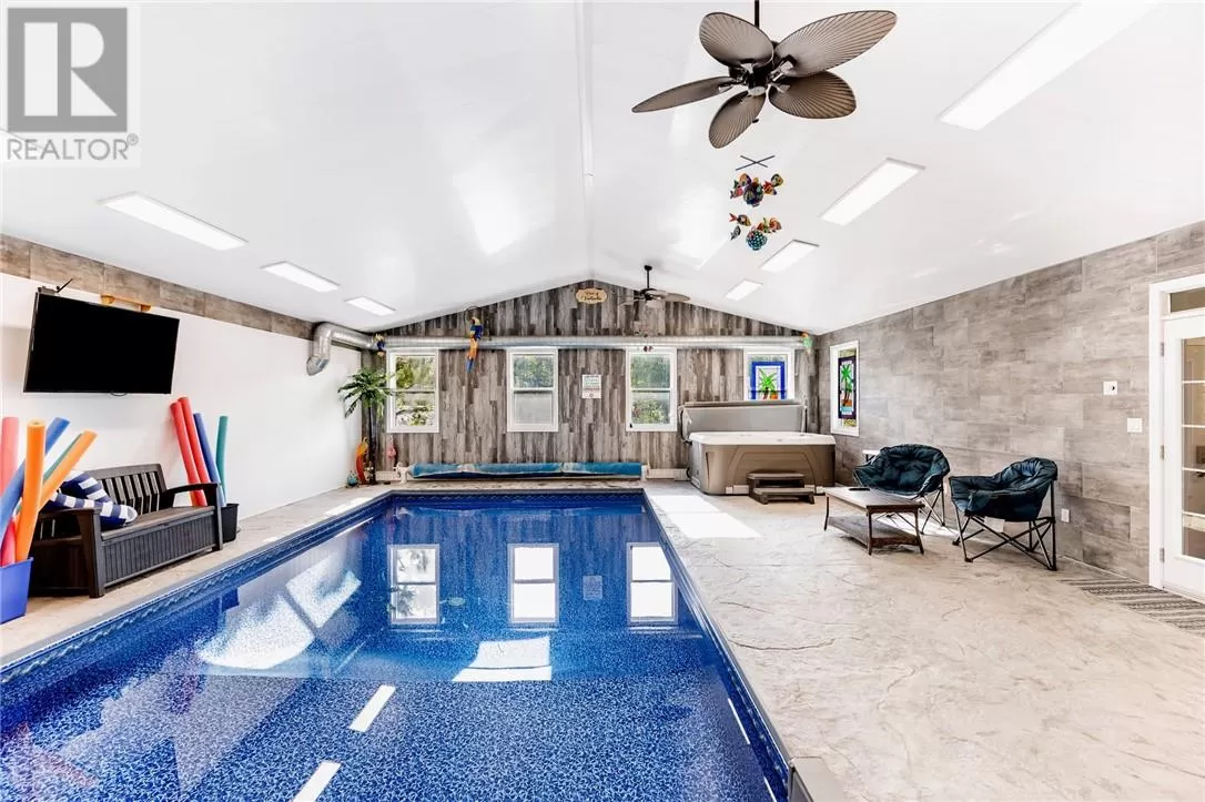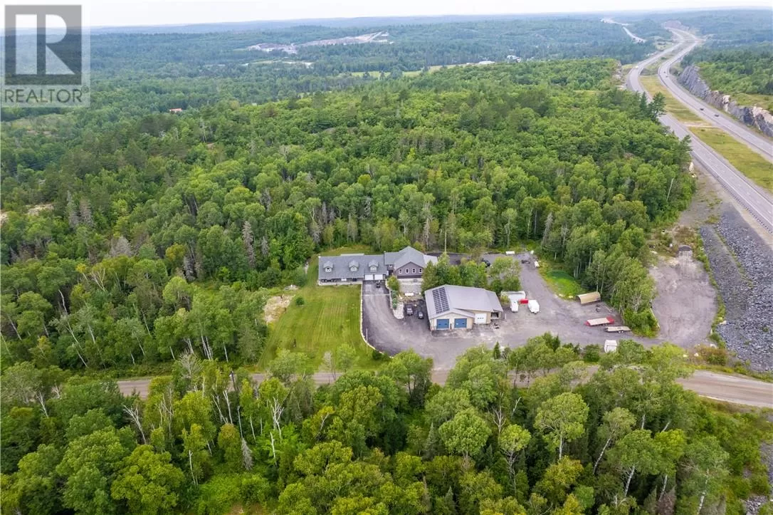 Welcome to a truly one-of-a-kind property with endless possibilities for families, contractors, or anyone seeking a home with character and versatility. Once the site of the Estaire Fire Hall, this residence has been transformed into a spacious 4-bedroom, 4-bathroom home with over 3,400 sq. ft. of living space, including a self-contained one-bedroom apartment. Inside, youâll be greeted by soaring 17-ft cathedral ceilings and a central wood-burning fireplace. The main level offers a bedroom, full bath with steam shower, and attached 2-car garage. Upstairs, the showpiece is the in-ground indoor poolâperfect for year-round swims, entertaining, or relaxing. The pool room has its own bath, includes the hot tub and has access to a covered porch. This level also includes a second kitchen, a large office space, a full bath with soaker tub, and a rec room easily converted into another bedroomâideal for multi-generational living, extended family, or rental income. Trades people, hobbyists, or small business owners will love the incredible garage/workshop setup: three garages totaling over 3,200 sq. ft. for vehicles, equipment, storage, or even running a business. All set on a generous 2.07-acre lot with ample outdoor parking and space to expand. The property also features multiple heating optionsâpropane, wood, heat pump, hot waterâplus solar panels to help offset hydro costs. Located in an unorganized township, youâll enjoy low taxes and fewer restrictions. More than just a home, this is a lifestyleâblending history, practicality, and opportunity. Donât miss your chance to own something truly special. (id:27476)