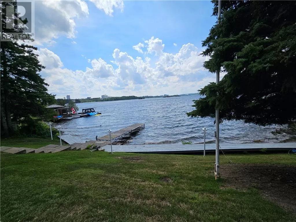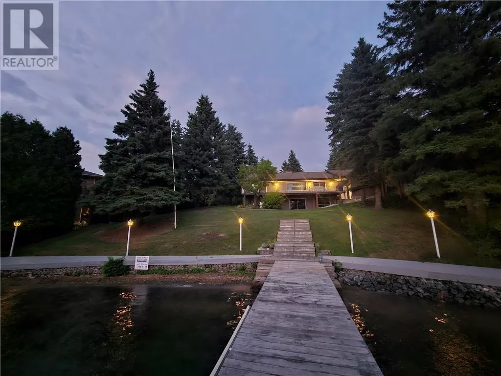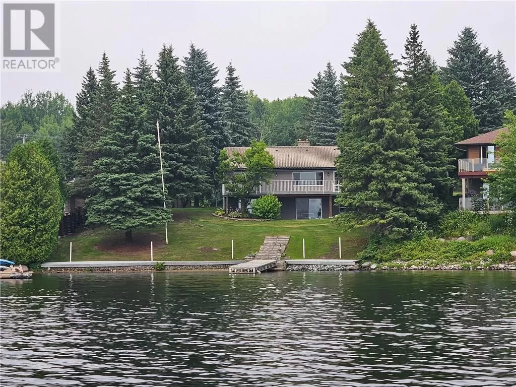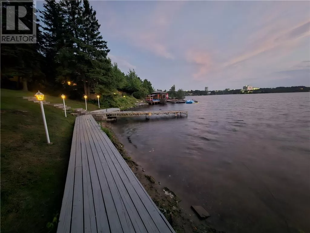 The premiere waterfront property located in an executive area of Sudbury with kilometers of pure western exposure of Ramsey Lake. Being over 1/2 an acre in size with 87 feet of sand shoreline, gently sloping topography, mature trees and lush landscaping, this is arguably the finest property along the south shore. The impressive stone driveway leads to a well positioned quality bungalow with walk-out basement, over 3,200 sq.ft. of living area, clay tile roof, and attached garage. Home is meticulous with great curb appeal with its brand new exterior siding. There are some interior dated elements, however, offers comfortable family living plus the privacy it commands. A property like this simply cannot be replicated. (id:27476)