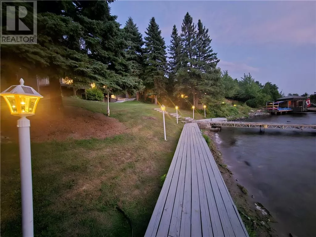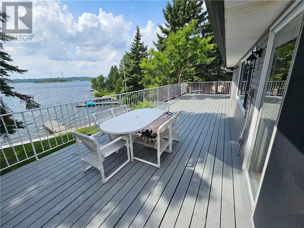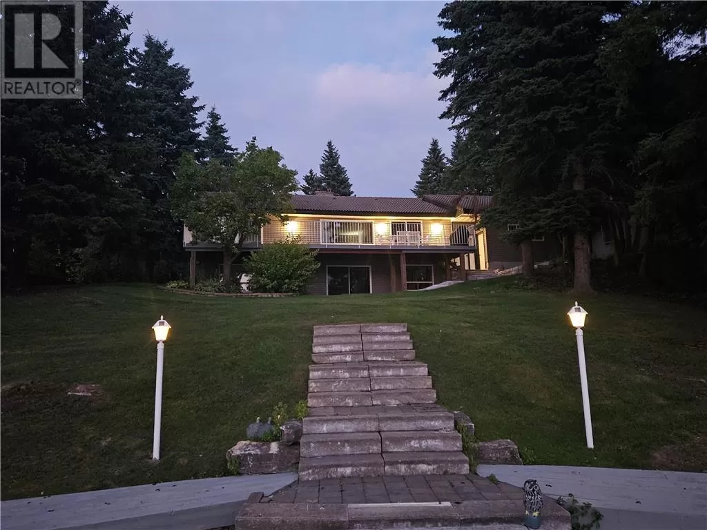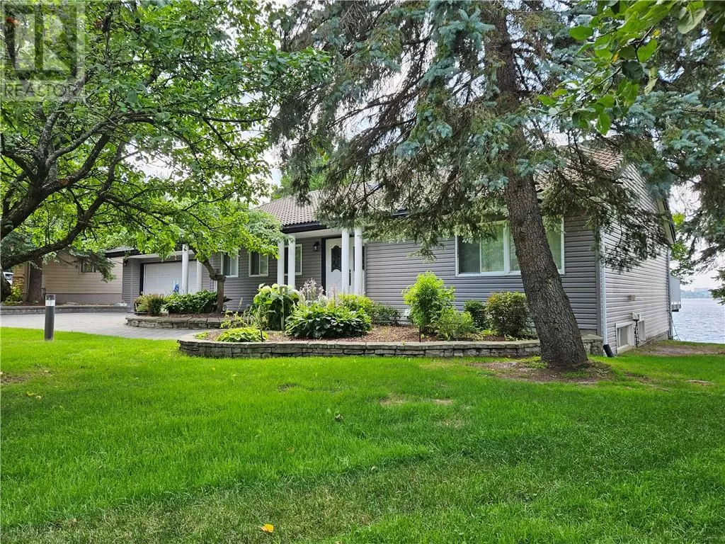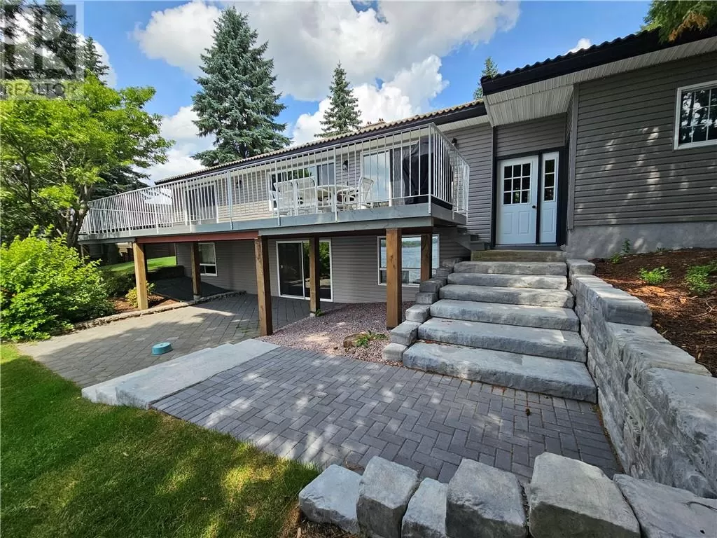 The premiere waterfront property located in an executive area of Sudbury with kilometers of pure western exposure of Ramsey Lake. Being over 1/2 an acre in size with 87 feet of sand shoreline, gently sloping topography, mature trees and lush landscaping, this is arguably the finest property along the south shore. The impressive stone driveway leads to a well positioned quality bungalow with walk-out basement, over 3,200 sq.ft. of living area, clay tile roof, and attached garage. Home is meticulous with great curb appeal with its brand new exterior siding. There are some interior dated elements, however, offers comfortable family living plus the privacy it commands. A property like this simply cannot be replicated. (id:27476)