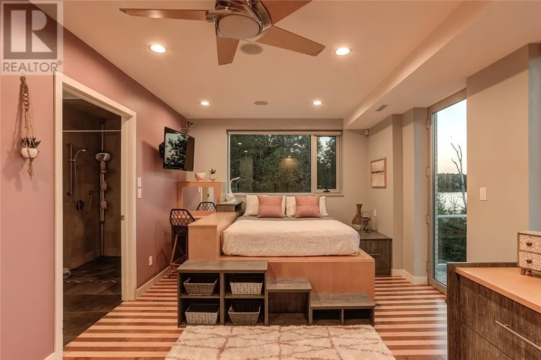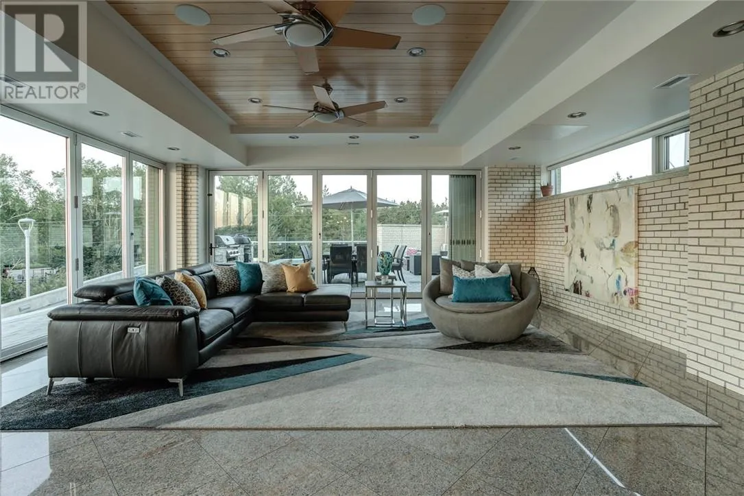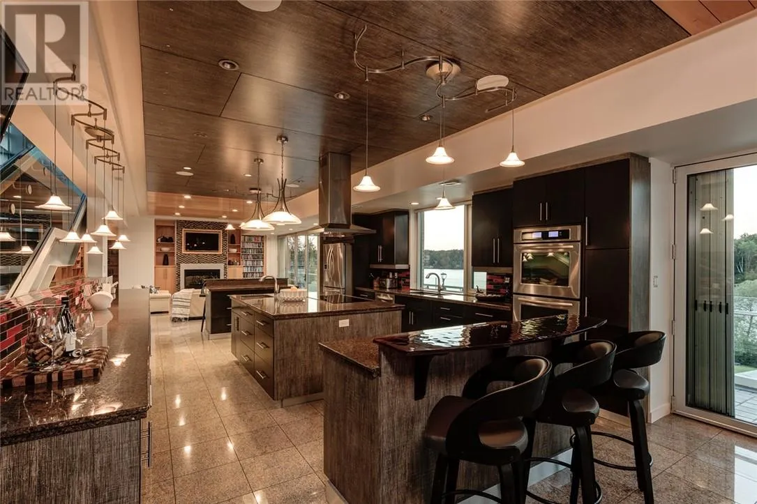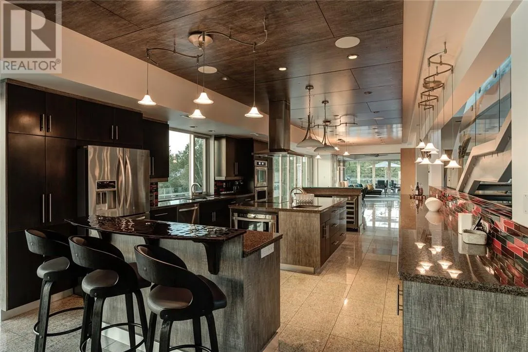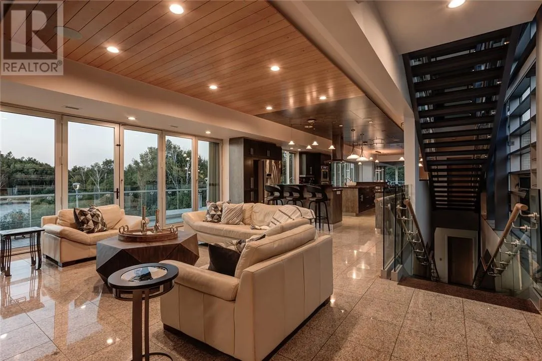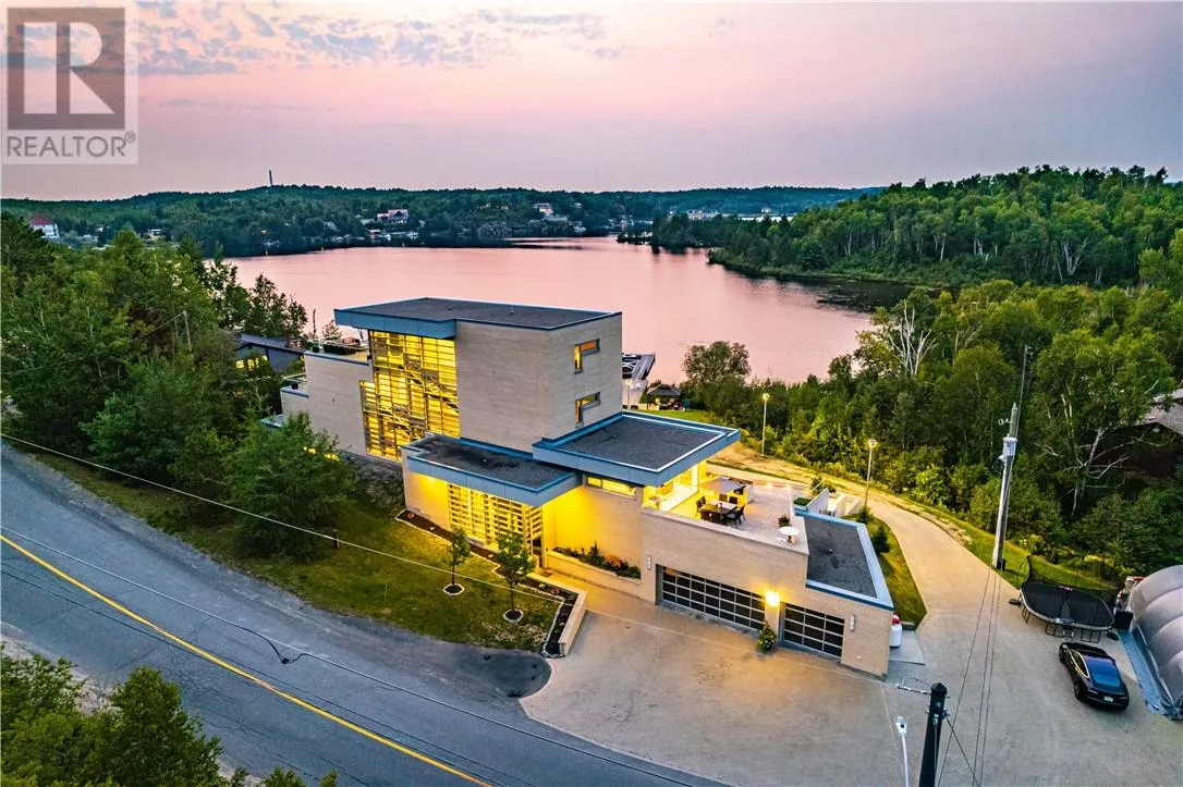 In a league of its own & located on the sought-after Ramsey Lake. In the heart of Sudbury next to HSN, biking/hiking & ski trails, Sudbury's Northern Watersports Centre and so much more. This 6,000 sq.ft.+ waterfront home incl's a beautiful mix of granite & maple hardwood floors without w stunning detail. 18' waterfall feature as you enter the home. Four levels (wheelchair accessible complete with an elevator & outdoor ramps). Glass curtain walls that let in all the gorgeous sunlight and California sliding doors that open all the way up lakeside bringing the outdoors in. Two temperature-controlled wine cellars (500 & 1500 bottle), family theatre room, vitality bar for smoothies and drinks, gym with changeroom and indoor heated pool all of which opens lakeside and leads to the outdoor shower, hot tub, relaxing sitting area, and stone fire pit which is next to a mind blowing out-door kitchen. Details to mention here are wood-burning pizza oven, grill, beverage fridge, full sink, icebox, prepping station and so so much more, plus enclosure for cool or winter months. Take the elevator or the outside ramps up to the 2nd level where you will find the heart of the home. This kitchen is incredible, with multiple islands & gorgeous granite countertops, chef-inspired built-in appliances etc. It is an open concept design on this flr. Details include a gas fireplace, custom built-in cabinets, shelves, walk-in pantry & captains dining table where you will catch the most incredible sunsets. Just off the dining area is the sunroom that opens up to the waterfront and to the 2nd outdoor kitchen. The primary suite is located on its own floor offering a private interlock terrace (sunsets), Office (incredible lake views), walk-in closet and ensuite. The home offers 6 bedrooms 6 baths. Sandy beaches, docking systems for multiple water toys & boats, a triple car garage, and a secret passageway. This is a must-see as there is so much more to experience. (id:27476)