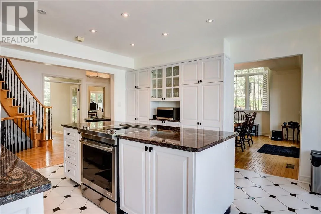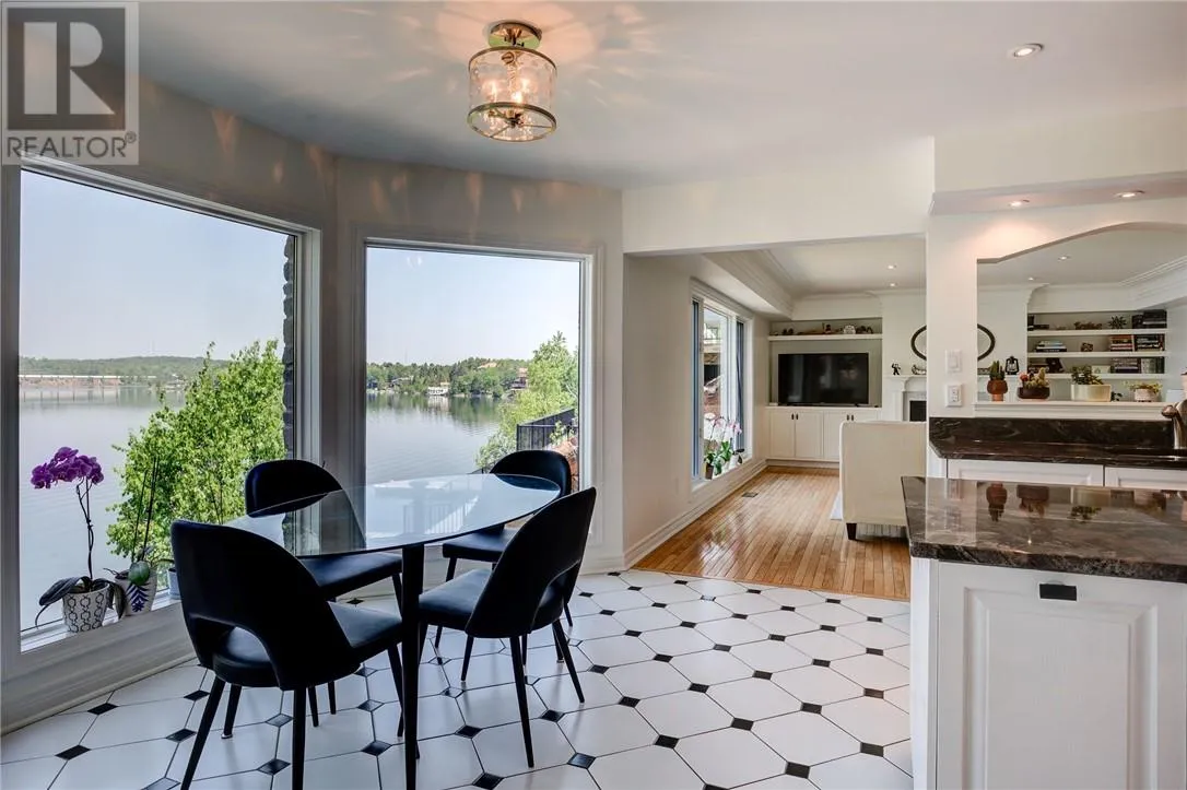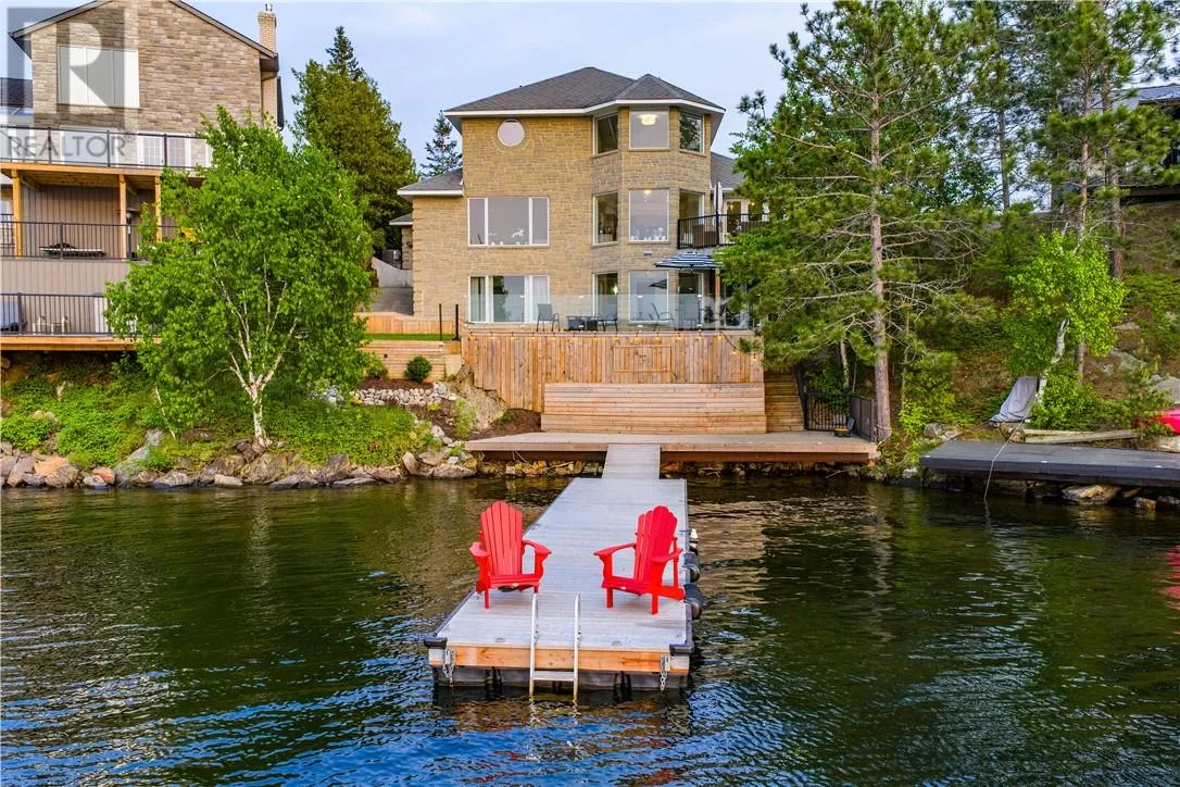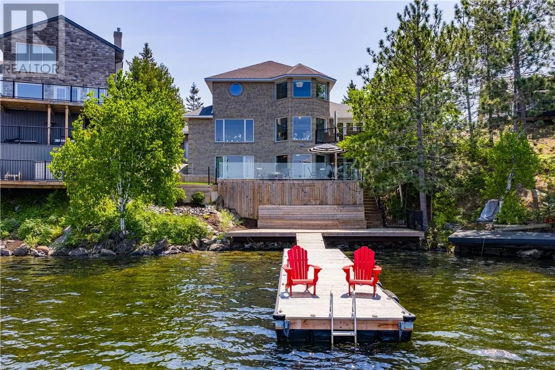 Welcome to this stunning 5-bedroom, 4-bathroom custom-built home nestled along the shores of Ramsey Lake. Perfectly situated within walking distance to Laurentian University, Health Sciences North & the Northern Ontario School of Medicine. This property combines elegance, comfort & convenience in one of Sudburyâs most desirable neighbourhoods. The moment you arrive, you're greeted by an interlocking stone driveway that leads you to a triple attached garage & beautifully landscaped grounds. Step through the front doors into a grand foyer, where a sweeping circular staircase views of the water set the tone for the homeâs refined interior. The main floor is designed for both everyday living & entertaining, featuring a formal dining room & an immaculate chefâs kitchen with granite countertops, custom white cabinetry, a large centre island & panoramic views of Ramsey Lake. The kitchen seamlessly flows into the inviting family room, anchored by a gas fireplace & flooded with natural light. Upstairs, youâll find three generously sized bedrooms, including the luxurious primary suite with an upgraded, oversized ensuite bathroom & more captivating lake views. The lower level offers excellent potential for a full in-law suite! Complete with a second kitchen, two additional bedrooms, a cozy sitting area, exercise room, sauna, and a walkout to the water. This space is perfect for multi-generational living or guests. Whether youâre enjoying a quiet evening on the deck, entertaining by the lake, or simply taking in the views, this 3,700+ sq.ft. home offers a truly exceptional waterfront lifestyle in the heart of the city. This is not just a home, it is a lifestyle & where so many life-long memories are made. Schedule your private & confidential tour & get acquainted with your new Ramsey Lake home. (id:27476)