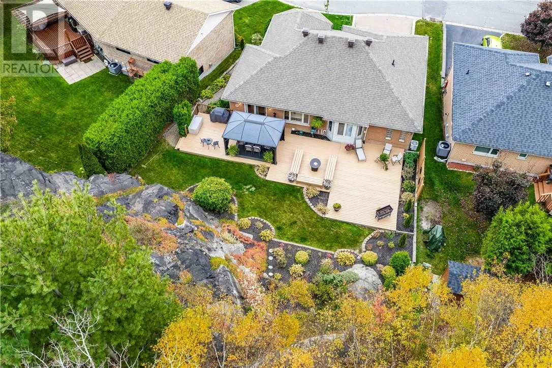 Custom-built one-owner home located on a quiet cul-de-sac in a premier south end neighborhood. Gemma Street has no through traffic and is close to schools and shopping. It is an ideal neighborhood to raise a family. This spacious raised ranch features over 2,700 sq ft of quality living space, including an eat-in kitchen, formal dining room, living room with 10 foot high ceilings, 3 generous-sized bedrooms, 3 updated full bathrooms, and a large lower-level family room with a gas fireplace and roughed-in wet bar. On both levels, you will find an abundance of window space, allowing for ample natural light throughout. The ultra-private backyard however is what sets this home apart from all others. Here you will find a large deck, ideal for entertaining or relaxing, beautifully maintained flower gardens, and a nicely treed hillside backdrop providing natural shelter and privacy. Note: the lot in this case goes back almost 300 feet, so this will never change. In the backyard, there is also an electric cable and breaker panel for a future hot tub, as well as a gas line for the barbecue. Other features include a two-car garage, an interlock driveway, a roughed-in sauna, roughed in central vac and one-year-old shingles (id:27476)