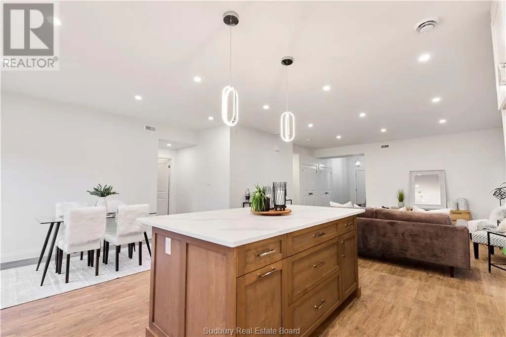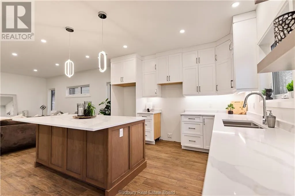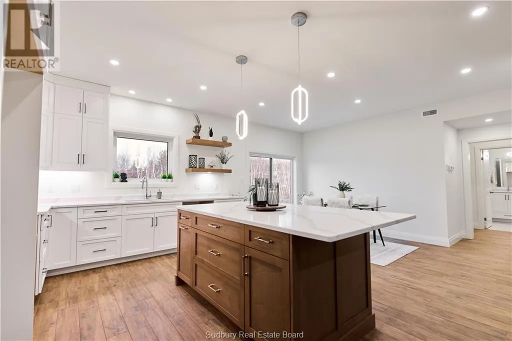 Modern Slab on Grade in Minnow Lake â Built by Zulich Homes. Downsize without compromise in this brand new 2-bed, 2-bath home in Minnow Lakeâs sought-after Zulich subdivision. Designed for comfort and style, it features in-floor heating, a sleek kitchen with white cabinetry, wood island, and quartz countertops. The bright open layout is filled with natural light from large windows, and the primary suite offers a double-sink ensuite with a glass and tile shower, plus a walk-in closet. With a stone front exterior, finished garage, and upcoming sod and paving, this home is the perfect blend of modern luxury and low-maintenance living. (id:27476)