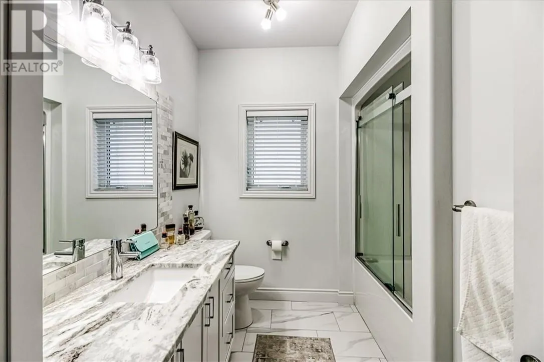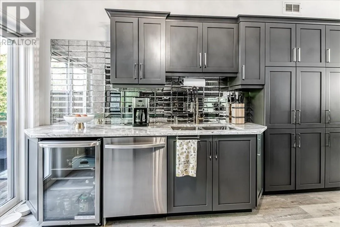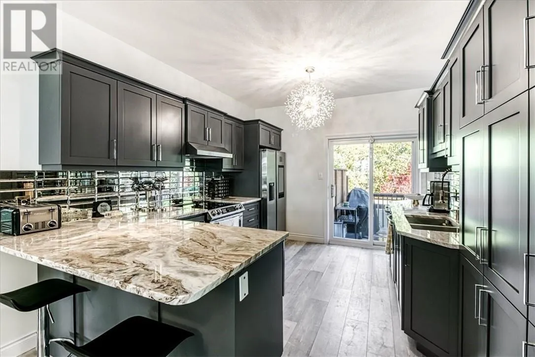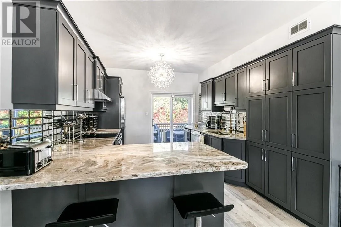 Looking for a new build that is both modern and sophisticated? This 1,651 square foot Dalron constructed home in the desirable upcoming Minnow Lake area is move in ready. Upon arrival, you'll be greeted with stunning curb appeal with a double wide interlocking driveway, landscaping with rocks, mulch and lighting and single car garage. Enter into the home to find a spacious foyer with porcelain tile flooring, large closet and access to the garage. Minimal stairs take you to the second level to the large open concept living/dining, kitchen combo, featuring gorgeous matching modern yet warm light fixtures and plenty of entertainment space. Kitchen highlights 3 Fantasy Grey granite counter tops, updated & expanded custom cabinets, gloss reflecting backsplash, ""Blanco"" double sink with touchless faucet and soap dispenser. Exceptional kitchen appliances included feature Samsung smart fridge, Samsung smart stove, Sharp built in drawer microwave, Samsung dishwasher and Frigidaire cooling fridge. Off the kitchen to the large deck featuring a gas BBQ hook-up and plenty of space for summer entertaining. Backyard offers a large shed, full patio stone coverage and flower garden. Off the kitchen, you'll find a 4 piece bathroom featuring beautiful tile flooring, updated vanity with granite countertops, stone backsplash, glass siding doors in the tub surround and plenty of storage. Primary bedroom offers 2 closets and lush carpeting. Another bedroom with closet completes the main level. Head down to the basement where you'll find a large rec room, 4 piece bathroom with updated vanity with granite countertops, stone backsplash and siding glass doors in the tub surround. Another large bedroom with a closet. Laundry room with a LG smart washer & dryer, with quartz countertops, tons of cabinet space and laundry tub. Updates valued at over $80k. This property also offers transferable Tarion warranty! Come see for yourself the quality and style this home has to offer. (id:27476)