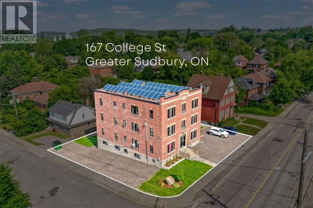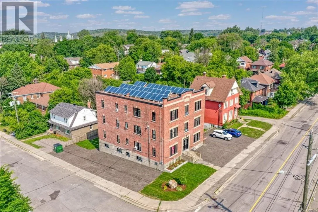 Welcome to the Haddad Building â a distinguished and exceptionally maintained 8-unit apartment building that blends timeless charm with thoughtful modern upgrades. Located in one of Sudburyâs most desirable neighbourhoods, this 1930s-era gem presents a rare opportunity for investors seeking both character and consistent performance. The building features six expansive 2-bedroom units, each over 1,000 sq. ft., showcasing grand living and dining rooms filled with natural light â a unique and highly appealing feature for tenants. Classic architectural elements like tall ceilings, hardwood floors, clawfoot tubs, and generous layouts are complemented by updated kitchens and bathrooms in most suites. Two bright 1-bedroom garden-level units offer excellent versatility and retain their vintage charm. Notable capital improvements & features include: ·Full brick façade rebuild (2024â2025) ·Black-framed windows and doors ·New exterior landscaping and curb appeal upgrades ·Double boiler heating system (2021) ·Coin-operated laundry and 9 hydro meters ·Recent interior renovations: kitchens, bathrooms, appliances, and finishes The rooftop solar microFIT contract generates approximately $6,600 annually, adding another stream of income. The Haddad Building experiences minimal vacancy, with suites in high demand â particularly among professionals affiliated with the nearby McEwan School of Architecture. With strong income, low maintenance requirements, and exceptional tenant appeal, this is a turn-key asset and a rare investment opportunity in the heart of Sudbury. (id:27476)