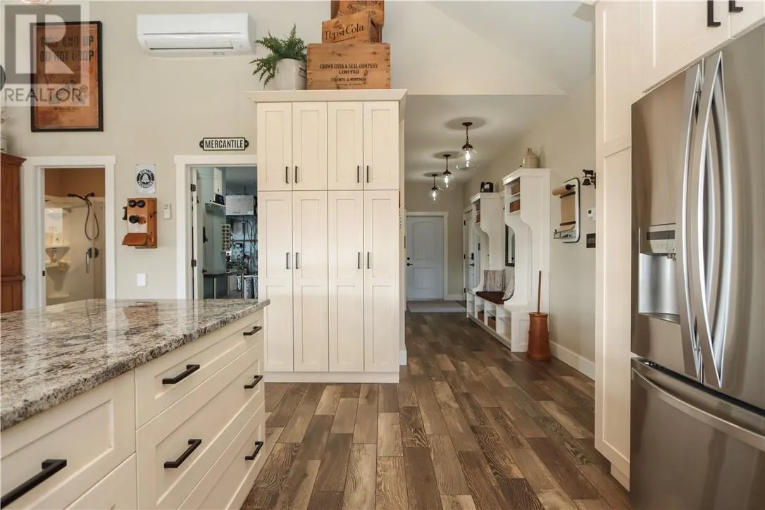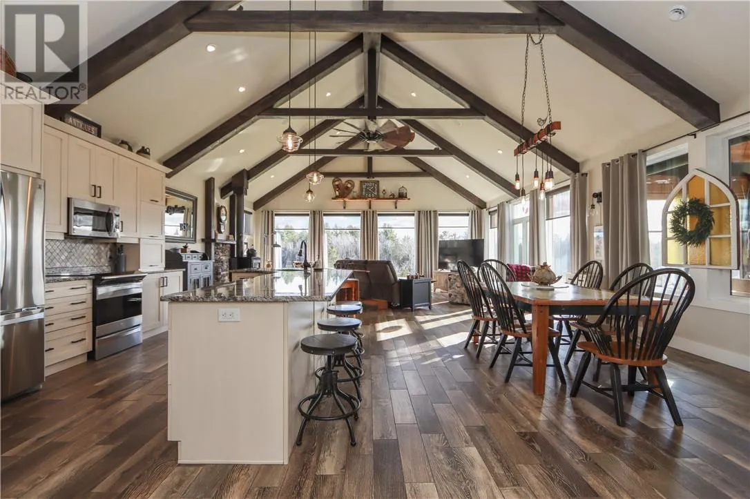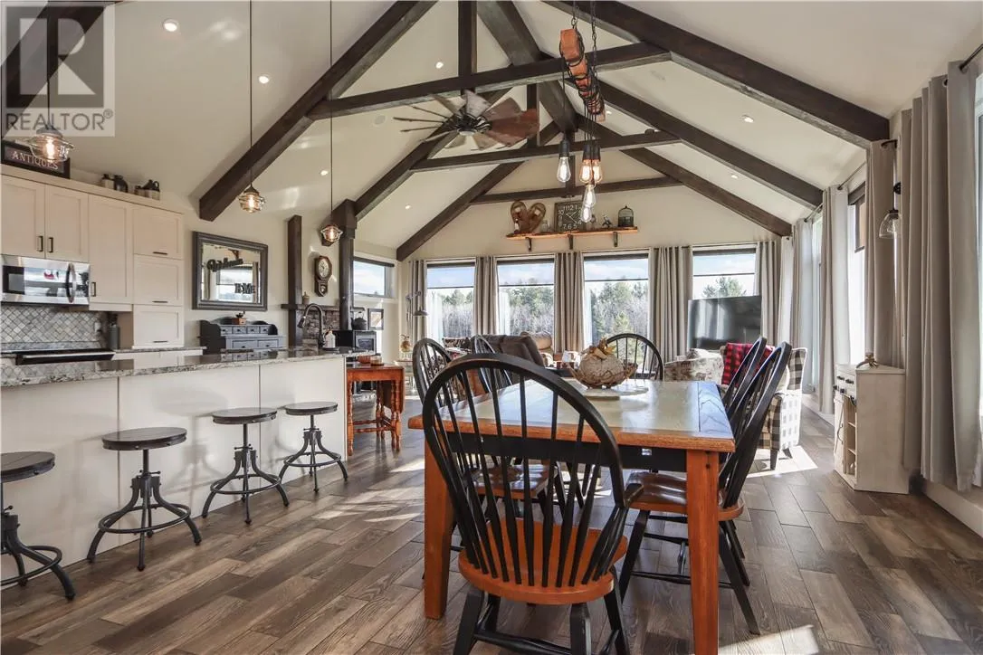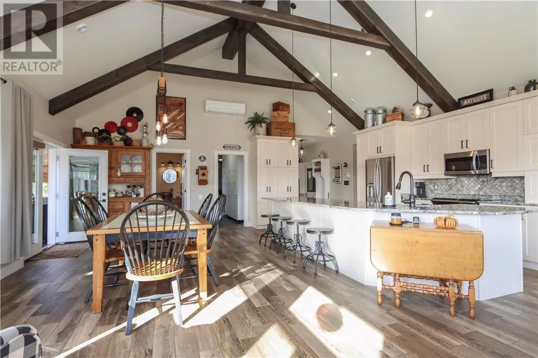 Fabulous is the only way to describe this slab-on-grade bungalow on a fantastic 50+ acre tract of land, with a possible two-parcel split. Welcome home! Are you looking for that modern farmhouse feel? This home delivers, starting with a huge functional foyer with loads of storage. Youâll be greeted by a large open-concept kitchen, dining, and great room with soaring 16' ceilings and beam construction. Enjoy million-dollar views from every angle with windows that flood warm light and showcase the peaceful natural landscape. Sit by the wood-burning fireplace with a coffee and watch the deer, cranes, and birds. The modern kitchen is designed for gatherings with its large island and adjacent dining area, featuring custom stone countertops and stainless appliances. Down the hall are three bedrooms. The primary suite faces southwest and offers beautiful views. The stunning spa-like main bath includes a deep soaker tub and a glass-and-tile shower for two. There is also a great second bath off the main area. The bonus room off the dining space provides a flexible area for a hot tub or games room. From there, walk out to a deck perfect for family BBQs. This home is heated three ways: in-floor hot water under the tile, a new ductless A/C and heat pump installed in 2025, and the wood-burning fireplace. The attached garage also has in-floor heat. Storage is abundant, including in the utility/laundry area. The 40' x 25' outdoor shop is fully wired, including a Generac setup, with space for all your toys. The land is meticulously maintained with a large cleared area, perennial gardens, and a wildlife feeding spot. There are too many upgrades to listâplease see the documents. Opportunities like this rarely come up, and itâs just 30 minutes to town. Donât miss this one! (id:27476)