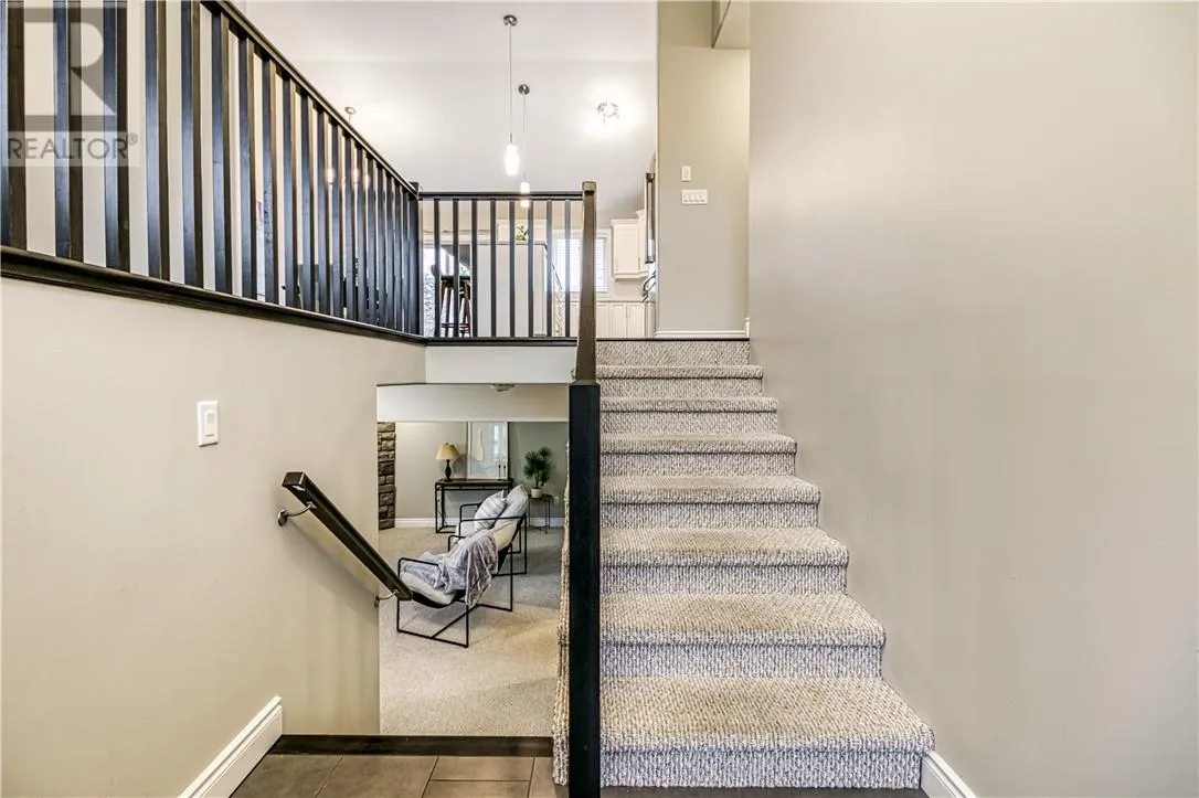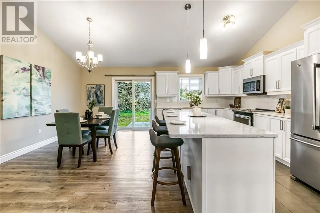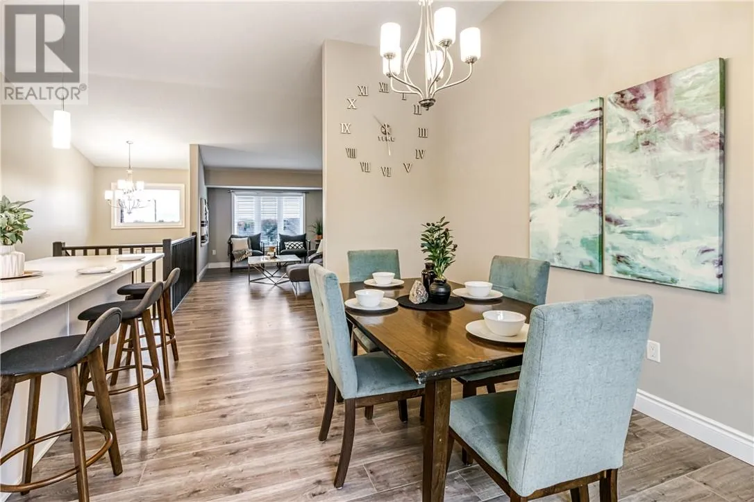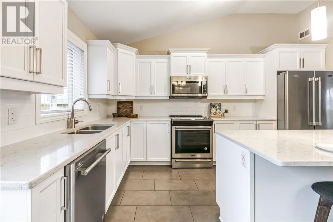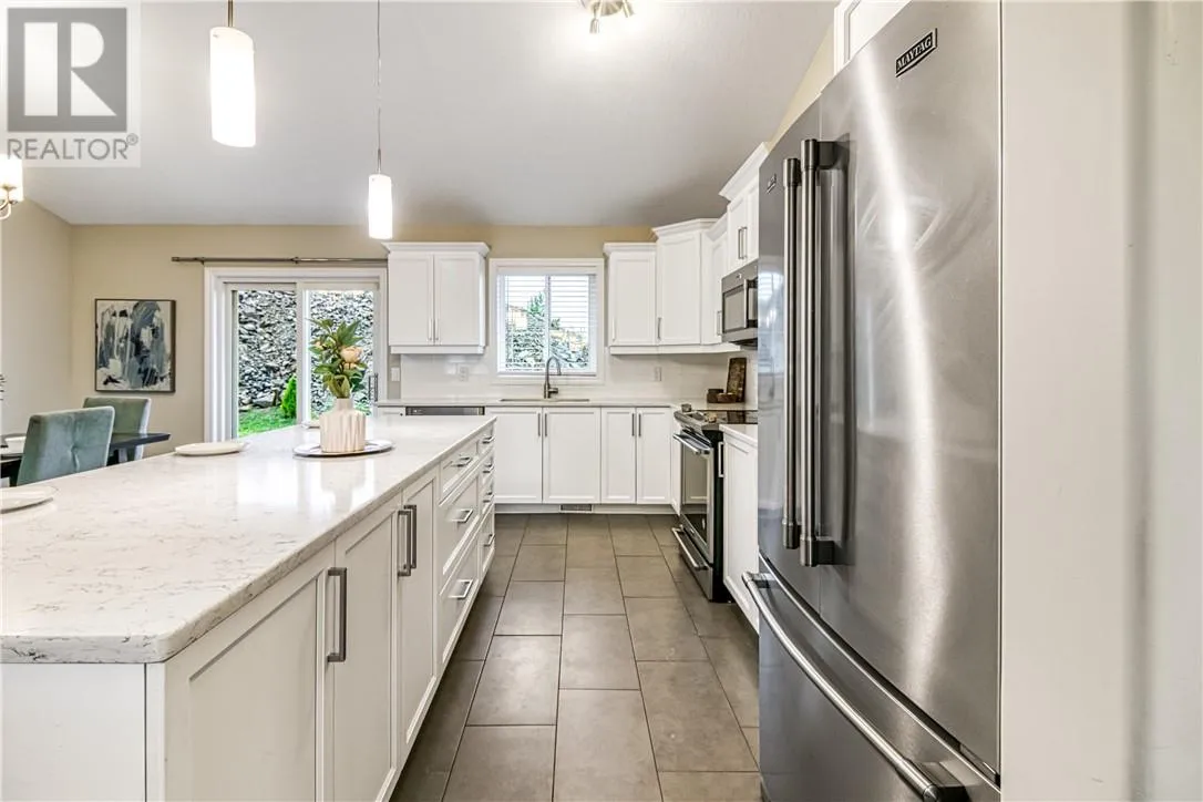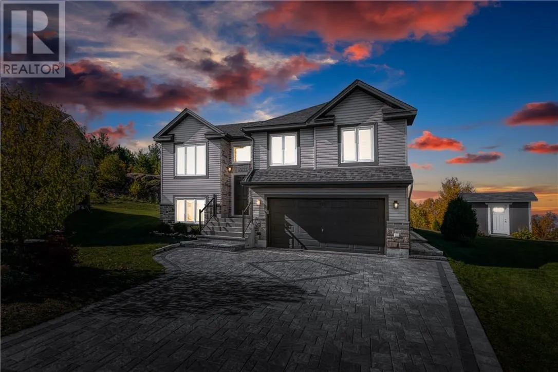Welcome to 2255 Mallards Landing â an eight-year-young Clover model built in 2017, perfectly situated at the end of a quiet cul-de-sac in Sudbury's sought-after Algonquin neighbourhood. From the moment you arrive, youâll notice the brand-new lock-stone driveway and walkway leading to the backyard, enhancing the homeâs already impressive curb appeal with its modern siding and stone exterior. The cul-de-sac setting offers a true sense of community â a safe, family-friendly spot where kids can play road hockey or ride their bikes without worry. Inside, a bright and spacious entryway welcomes you with vaulted ceilings that create an open, airy atmosphere. The main floorâs open-concept design features a gorgeous kitchen with quartz countertops, classic shaker-style cabinetry, a large island perfect for entertaining, and stainless-steel appliances. The dining area easily accommodates a harvest table and opens to the back deck, BBQ station, and private yard, ideal for hosting family and friends. The living room is framed by oversized windows and soaring 11-foot ceilings, making it the perfect space to relax or connect. Down the hall are two generous bedrooms and a full kidsâ bathroom, while the primary suite offers 2 closets (1 a walk-in) and a private ensuite for added comfort. The lower level features a cozy rec room with a gas fireplace and modern stone surround, an ideal space for family movie nights or watching the game. Youâll also find a home office or fourth bedroom, a third full bathroom, and a convenient mudroom with access to the oversized double garage â perfect for keeping things tidy through Sudburyâs changing seasons. Set on a massive pie-shaped lot nearly 200 feet deep, the backyard includes a private bonfire area perched above the yard with beautiful South End views. Surrounded by excellent schools, nearby walking trails, and quiet streets, this home truly offers the best of family living â modern comfort, privacy, and a highly sought-after location. (id:27476)