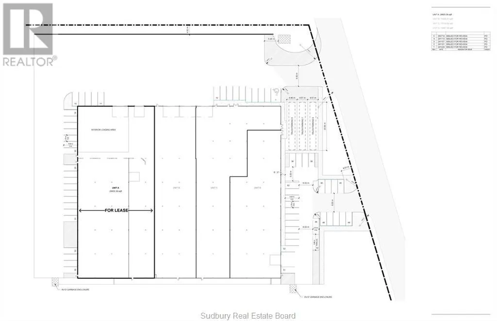 Recently updated with new exterior. Large warehouse/office/shop space in preferred New Sudbury industrial park (26,603 sq ft). Unit A can be divided into separate spaces with roughly 17,000+ sq ft in one area; as well as another 9,000+ sq ft space. 22 foot ceiling heights below the roof deck, grade and dock level loading, 2 large overhead doors. Present use is warehousing but can accommodate variety of uses. Yard space available. CAM estimated at $4.75 for 2025. (id:27476)