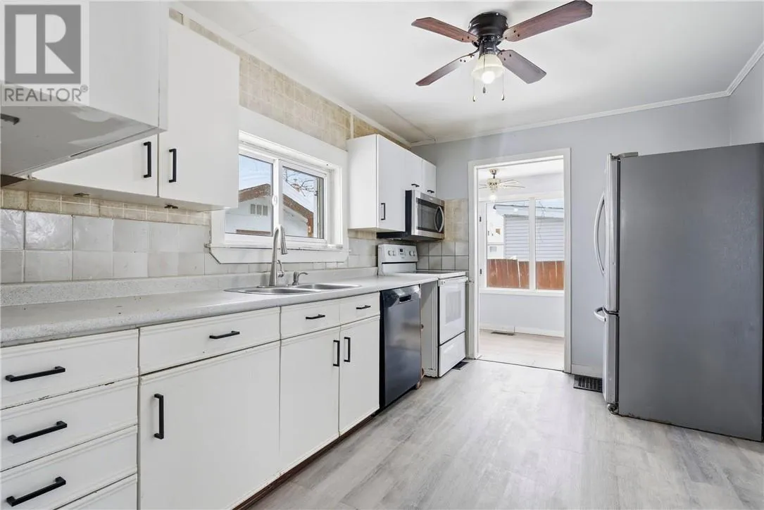 Welcome to 620 Laforest Avenue, an affordable 3 bedroom home located in a central Sudbury neighbourhood with immediate possession available. This 1¾-storey detached home features a functional layout with hardwood and vinyl flooring, a bright living space and a full basement with rough-ins for a second bathroom. The home is heated with natural gas forced air and includes central air conditioning for year-round comfort. Situated on a manageable, fenced lot with paved parking, a storage shed, and a fenced dog run, this property is ideal for first-time buyers, downsizers, or investors. Conveniently close to amenities, schools, and transit. This vacant home is move-in ready! Call to book your showing today! (id:27476)