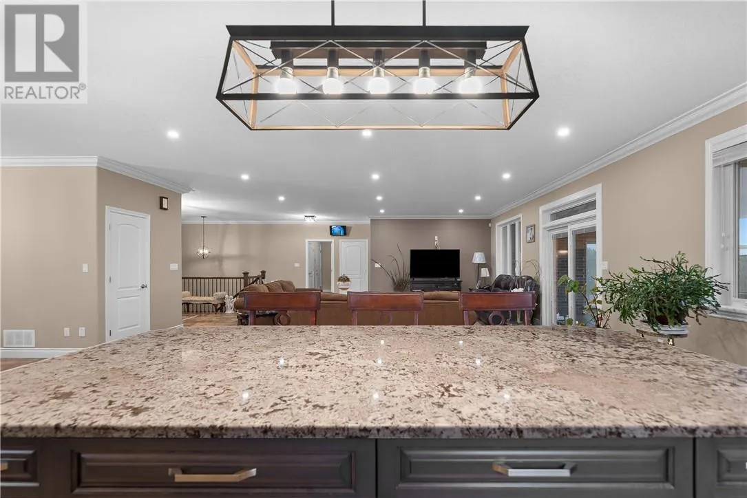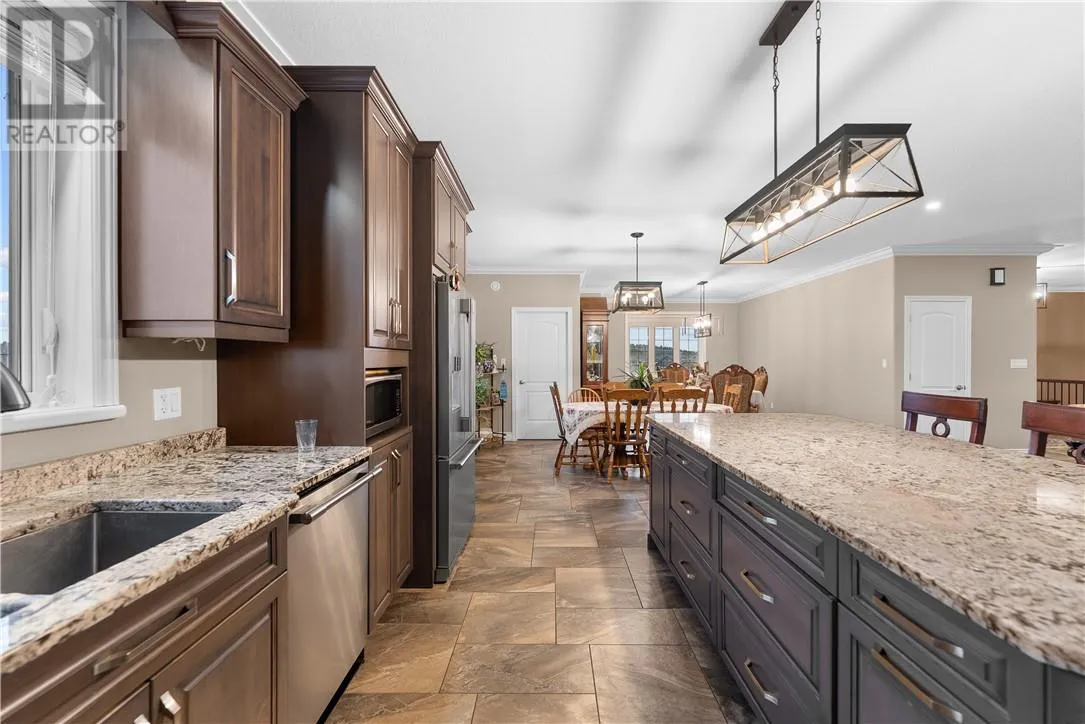 Welcome to 3 Columba Terrace, an exceptional 8-year-old executive bungalow offering an impressive blend of luxury, space, and functionality on a quiet, cul-de-sac with stunning views of St. Charles Lake. This expansive home features nearly 2,500 sq. ft. on the main level and an additional 2,650 sq. ft. on the lower levelâincluding the bonus space beneath the garageâall enhanced by soaring 9-foot ceilings on both levels. The heart of the home is the great room, showcasing a gourmet kitchen with granite countertops, a massive island perfect for gathering, and a walk-in pantry. The adjoining living area flows seamlessly to a covered, enclosed porchâideal for enjoying peaceful mornings or hosting summer gatherings. The main floor offers a luxurious primary suite complete with a walk-in closet and spa-inspired ensuite. A second bedroom includes its own private bathroom. Additional conveniences include a mudroom off the garage and a powder room at the main entrance. A covered front porch creates a warm and welcoming first impression. The lower level is truly a standout feature, offering a walkout to a massive, private backyardâready to be transformed into your dream outdoor oasis. This level also includes a full second kitchen, ideal for an in-law suite or entertaining, along with two additional bedrooms and a spacious bathroom featuring both a shower and soaker tub. A third kitchen (cantina) provides the perfect space for preparing and storing homemade goods. Storage is abundant throughout the home, including the large room beneath the garage, ensuring space for everything. The exterior is equally impressive, with landscaping to be completedâfeaturing an interlocked driveway, retaining wall, and a finished backyard sitting area. Homes like this rarely come to market. The combination of expansive square footage, 9-foot ceilings on both levels, premium finishes, quiet cul-de-sac location, lake views, and a massive private yard makes this a truly one-of-a-kind opportunity. (id:27476)