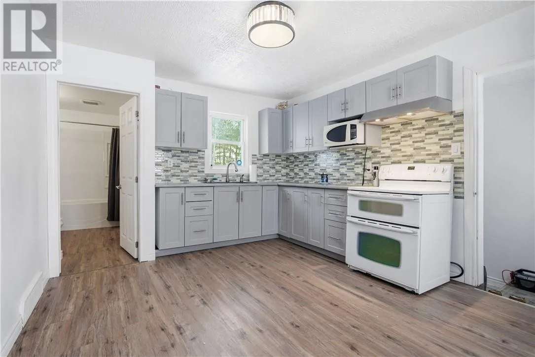 Cozy one-bedroom bungalow at 440 Percy Avenue in Sudbury. This home features a bright open-concept layout with updated kitchen cabinetry, a stylish tiled backsplash, and modern appliances. The spacious bedroom and refreshed full bathroom provide comfortable living space. Laundry is located downstairs in the unfinished basement, and the home includes central air conditioning for year-round comfort. With fresh flooring throughout and a charming exterior, this property offers low-maintenance living in a convenient neighbourhood. Ideal for first-time buyers or downsizers. Move-in readyâbook your showing today! (id:27476)
