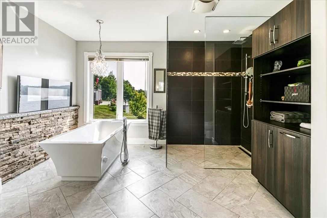 Imagine waking up to breathtaking views on the shores of Ramsey Lake, at 2507 Navanod Road, where every day feels like a getaway. With 297 feet of private waterfront, a sandy shoreline, and unforgettable sunsets, this property offers the ultimate lakeside lifestyle. Spend your summers entertaining on expansive decks, relaxing by the heated pool, or unwinding in the hot tub as the sun sets over the water. Inside, the home is designed to bring the outdoors in, with panoramic lake views from the moment you step through the door. A full interlocked driveway and walkways lead to the lake and an expansive fire pit area with stunning 270-degree lake views. Located just minutes from major shopping, dining, and Sudburyâs new entertainment centre, this extraordinary home offers the perfect combination of convenience and luxury waterfront living. The primary suite is a true retreat, complete with a walk-in closet and a full ensuite featuring a relaxing soaker tub. The fully finished lower level impresses with 10-foot ceilings, two additional bedrooms, a 4-piece bathroom, a generous games room with a cozy gas fireplace, and a large storage area. The spacious layout is perfect for family living and hosting, featuring a bright open-concept main floor and a fully finished walkout lower level for added space and comfort. Whether itâs cozy evenings by the fire, afternoons on the water, or gathering around the lakeside fire pit under the stars, this home is more than a propertyâitâs a lifestyle. (id:27476)