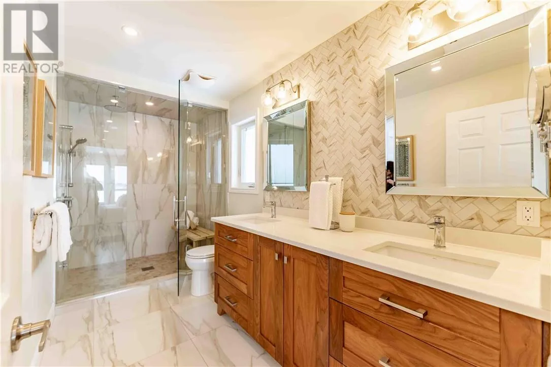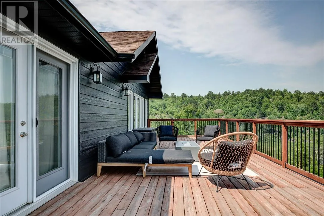 Welcome to Raft Lake, where privacy, tranquility & natural beauty come together. Tucked away in the highly sought after Broader South End, this exceptional custom built lakefront residence is set on over 5 acres of pristine land with more than 500 ft. of shoreline. Offering a rare balance of country living & convenience, this property is an ideal family home designed for effortless entertaining. The exterior impresses immediately with not 1, but 2 heated double garages, 1 attached & 1 detached, providing ample space for vehicles, all the toys that come with lakeside living. Located just minutes from the cityâs south end amenities & only steps from Kivi Park, Crowley Lake & their expansive trail systems, this estate offers unmatched access to nature & proximity to town. The main level welcomes you with a stunning kitchen featuring floor to ceiling custom cabinetry, built in stainless steel appliances, & granite surfaces. This space flows to a sprawling observation deck that overlooks lush greenery & lake views. The main floor also features a family mudroom conveniently located off the attached garage, along with 3 generously sized bedrooms. 1 bedroom offers direct access to the upper deck, while the primary suite serves as a sanctuary, complete with a spa inspired ensuite, walk in closet & lake facing windows. The lower level continues to impress with its versatility & comfort. This level includes 2 additional bedrooms, a full bathroom & a flexible bonus room ideal for a home gym, office, or guest suite with walk out access to the patio. The expansive family room is designed for relaxation & entertaining alike, featuring a custom granite topped wet bar & access to the lower patio. Waterfront properties offering this level of privacy, space & setting are exceptionally rare. Do not miss your familyâs chance to own this remarkable slice of paradise. Schedule your private & confidential showing today. (id:27476)