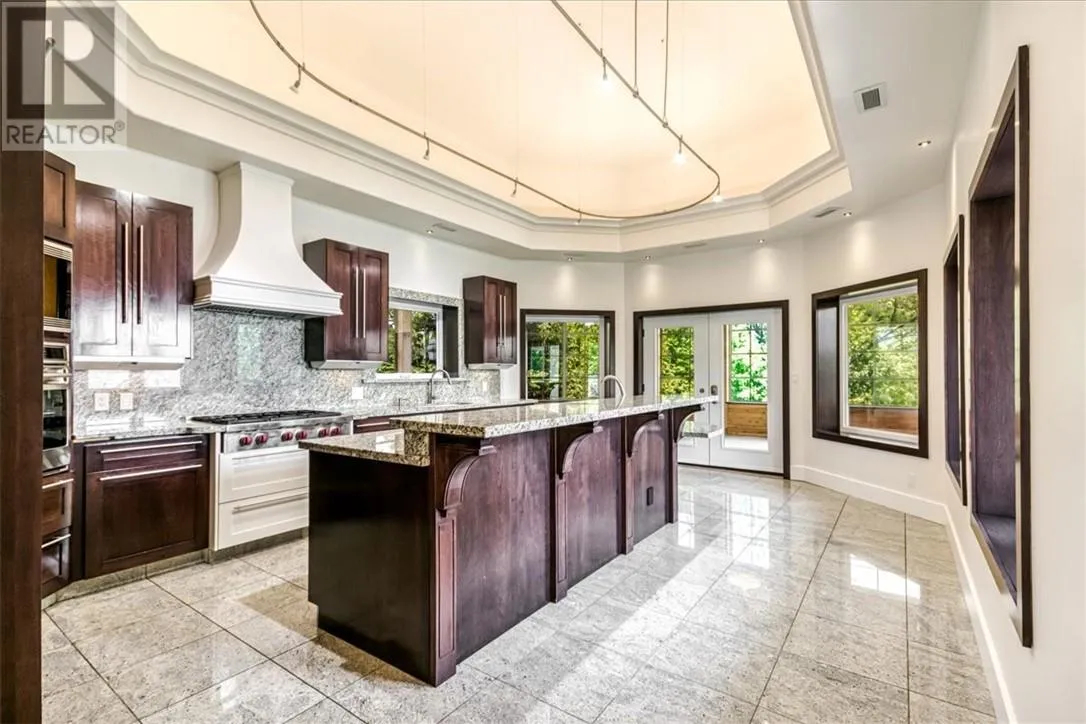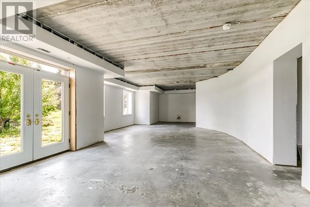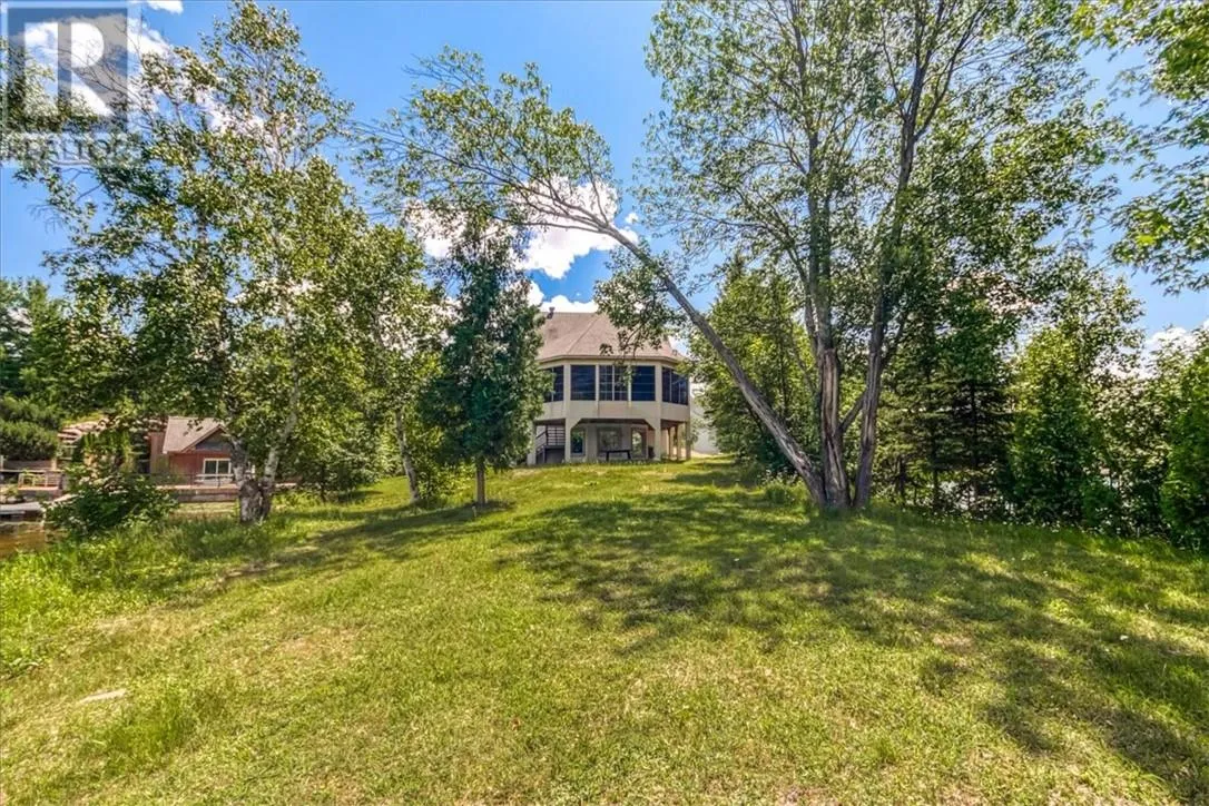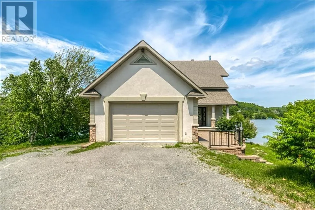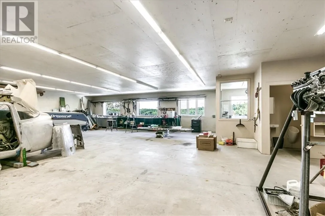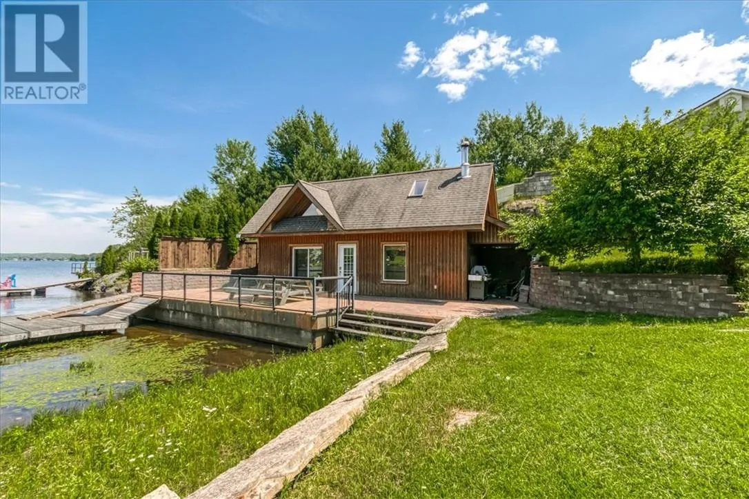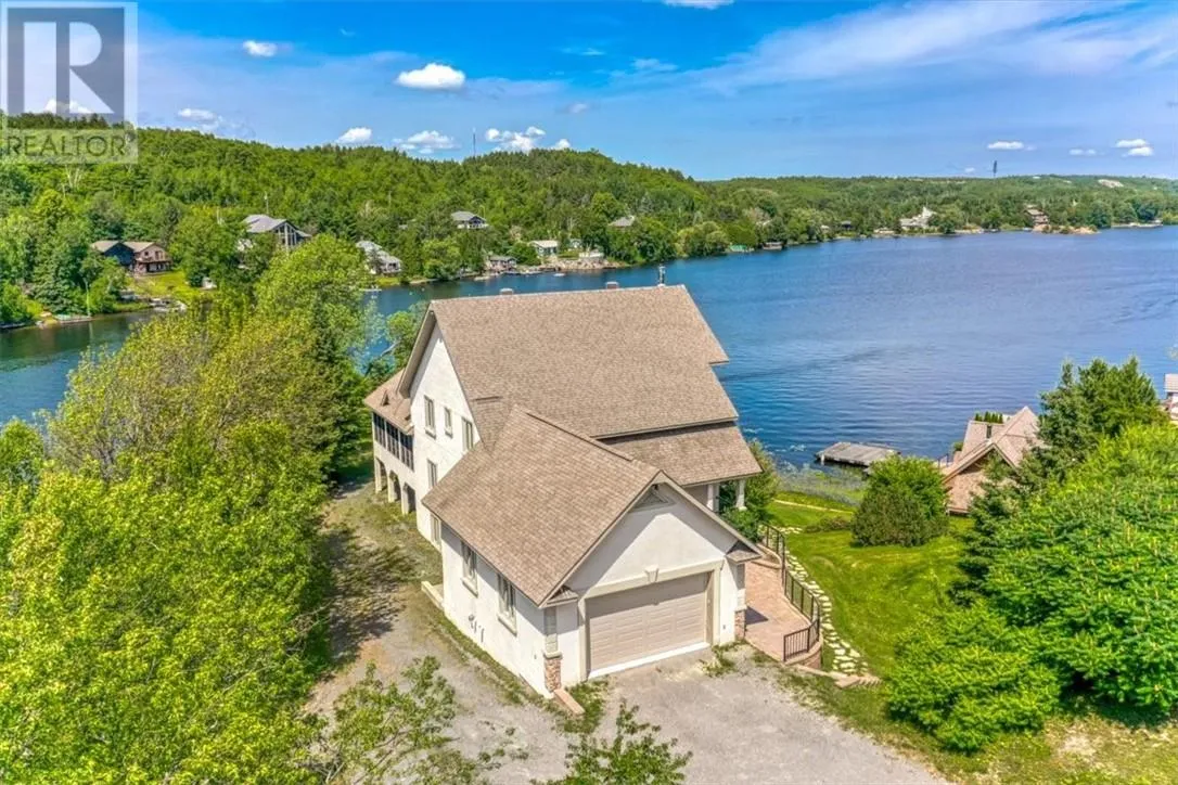 This is truly a unique property. Over 700 feet of water frontage on Sudbury's beautiful sought after Long Lake with views both east and west. From the wrap around deck off the kitchen you can watch the sun come up in the morning and watch it set at night. This 3 bedroom family home is quite spectacular with 24 foot vaulted ceilings in the great room and it showcases a fireplace stretching floor to ceiling. On the east side of the home, at the water's edge, is a sauna party zone that comes complete with a loft bedroom, heated floors, and a 2 pc washroom. In front of the sauna building there is a spacious stamped concrete patio area to sit and watch the lake go by. On the west side of the point, there is a 50 x 50' aircraft hangar built into solid rock with 19' ceilings. This is currently used as a hangar but can be used for an amazing basketball court or any other game where an unobstructed high ceiling 2500 sq. ft. area can be played. On top of the hangar there is a 50 x 50 garage that faces the road. Both floors of this building have 3 pc washrooms. All of the buildings are built with ICF foam blocks filled with rebar and concrete. The concrete extends all the way to the roof deck. All floors in the 3 buildings are heated and of course the main house and sauna party zone has central A/C. The lower walk out level of the home is an empty canvas. This lower area (approximately 1800 sq. ft.) would make a perfect in-law suite for generational living. There are large windows looking east and west down the lake and the drywall is done and primed. There are 2 bathrooms roughed in on this level, the floor and ceiling finishes would be up to you. Call now to arrange your private viewing of this incredible package. (id:27476)