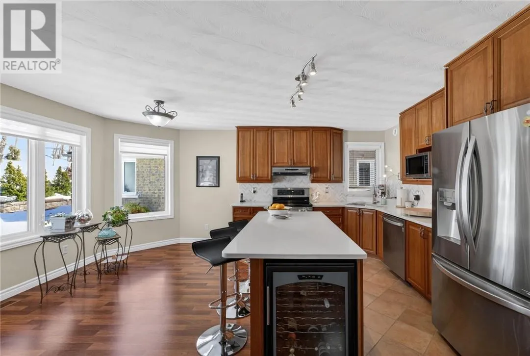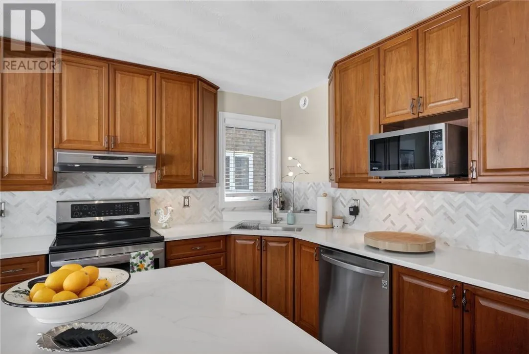 Welcome to this spacious executive raised ranch located in the desirable Corsi Hill area. This well-appointed home features a bright, open-concept kitchen with a white stone island, stainless steel appliances, and a walkout to a private rear yard. The adjoining dining area is ideal for everyday living and entertaining. The primary bedroom includes a walk-in closet and a 4-piece ensuite bath. The fully finished lower level offers an oversized family room with a gas fireplace, along with ample storage and flexible space suitable for a home office, gym, or hobby room. Additional features include a double car garage, interlock driveway, and a quiet cul-de-sac location. A great opportunity to own a one owner well-maintained home in a sought-after neighbourhood. (id:27476)