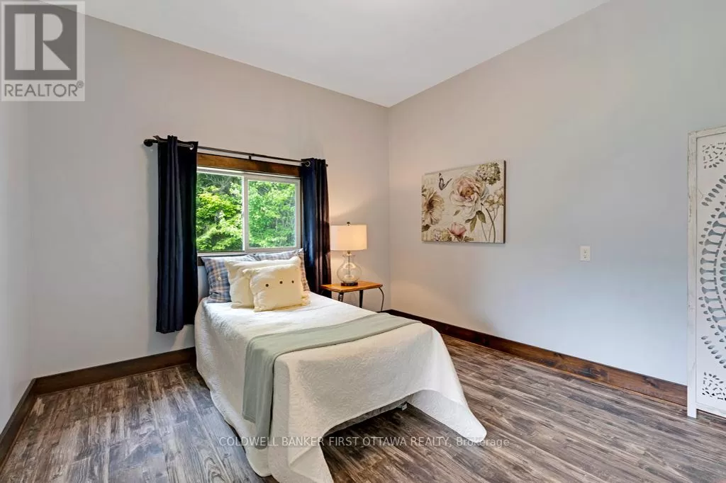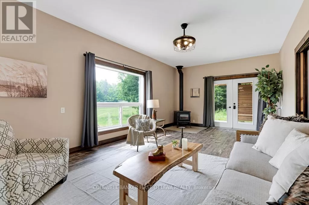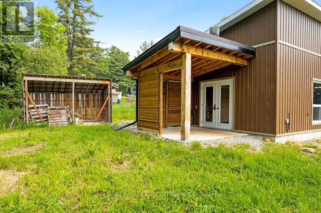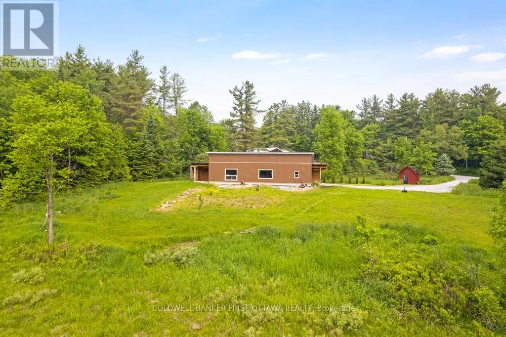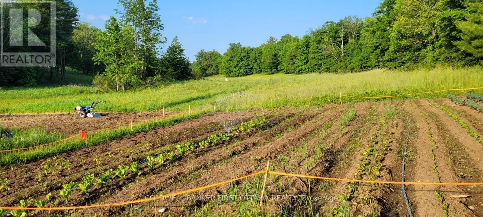 Cross Streets: Bolingbroke Road. ** Directions: Hwy 7 to Maberly. South on Bolingbroke Road. Left on Maberly Station Road to Pin 301. New 2022, certified energy-efficient, bungalow tucked away on 7.9 acres with space for possible hobby farm. This custom home is thoughtfully designed for wheelchair access, while still accommodating everyone's comfort. Spacious home has attractive exterior vinyl siding installed with a charming board and batten pattern. Covered front patio have garden doors leading inside. Sun-soaked open floor plan offers 9 ft high ceilings and radiant floor heating with durable quality luxury plank floor flowing through living spaces and bedrooms. Living room Pacific Energy woodstove and large windows with panoramic views of the green countryside. The home faces south so you also have magnificent views of sunsets and sunrises. Eat-In kitchen has attractive wainscotting, 2023 appliances, deep porcelain farmer sink and convenient walk-in pantry with pot rack and shelving for extra storage. Primary bedroom includes cheater door to 4-piece bathroom with deep stone sink, walk-in shower of subway tiles and honeycomb ceramic floor. Comfortable, relaxing second bedroom. Combined laundry room and utility room with polished concrete floor. Outside, covered patio for lounging and BBQ gatherings. Patio is prewired for addition of a hot tub. You also have big 1/4 acre vegetable garden and sugar maples that can be tapped for syrup. Hydrant on drilled well for watering garden or, if barn is built could be connected for watering animals. Electrical outlet in eaves for season lights. Garden shed. Cedar rail fencing along side road and page wire fencing at front of property. Internet and cell service. House Inspection 2023 Report available. Located on township maintained road with school bus pickup for the Perth elementary and high schools Just 1 km to K&P trail for ATVing or hiking. 10 mins to Sharbot Lake or 20 mins to Perth. (id:27476)